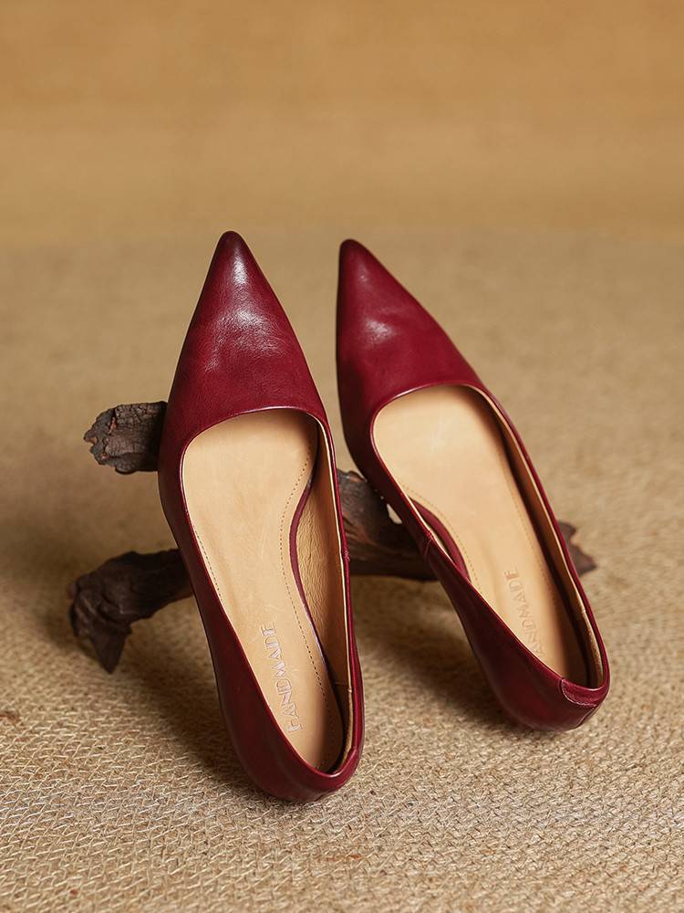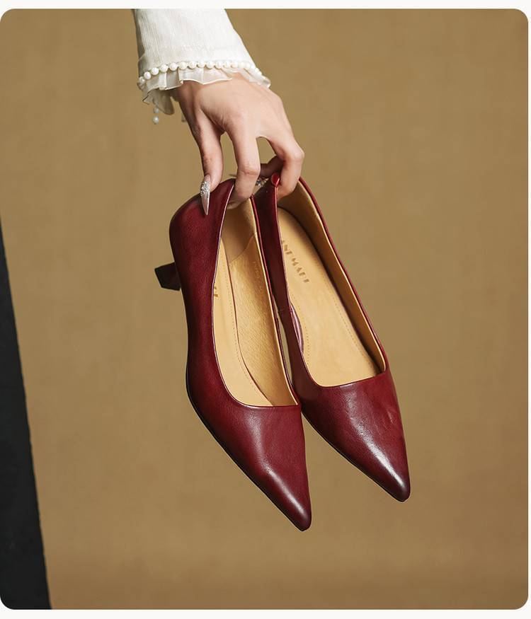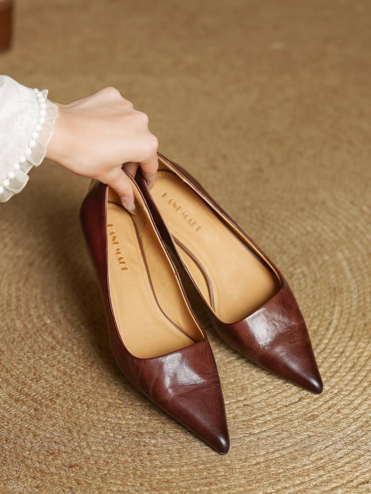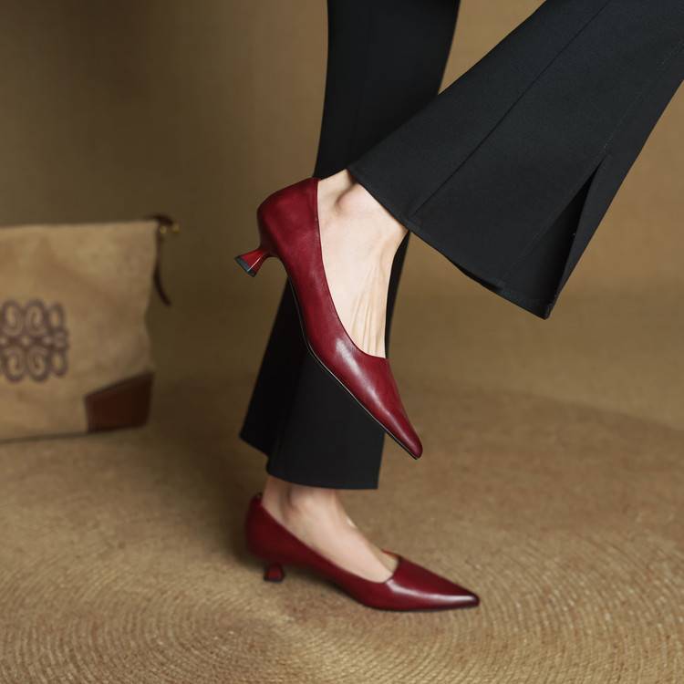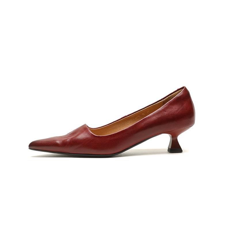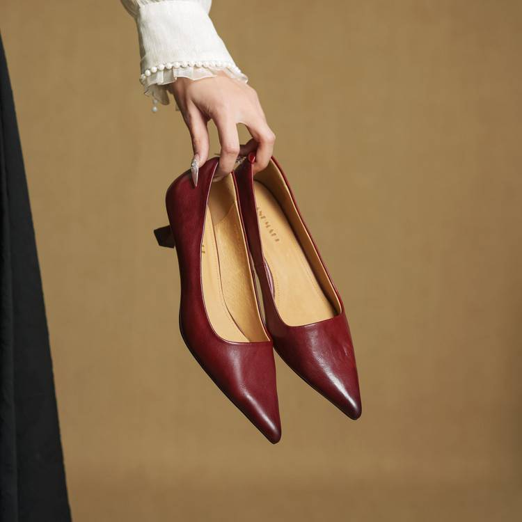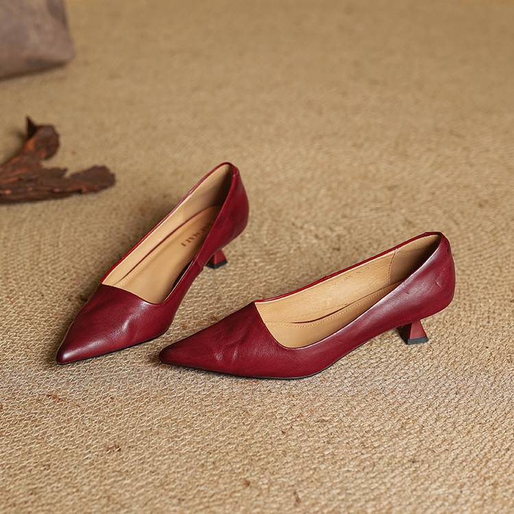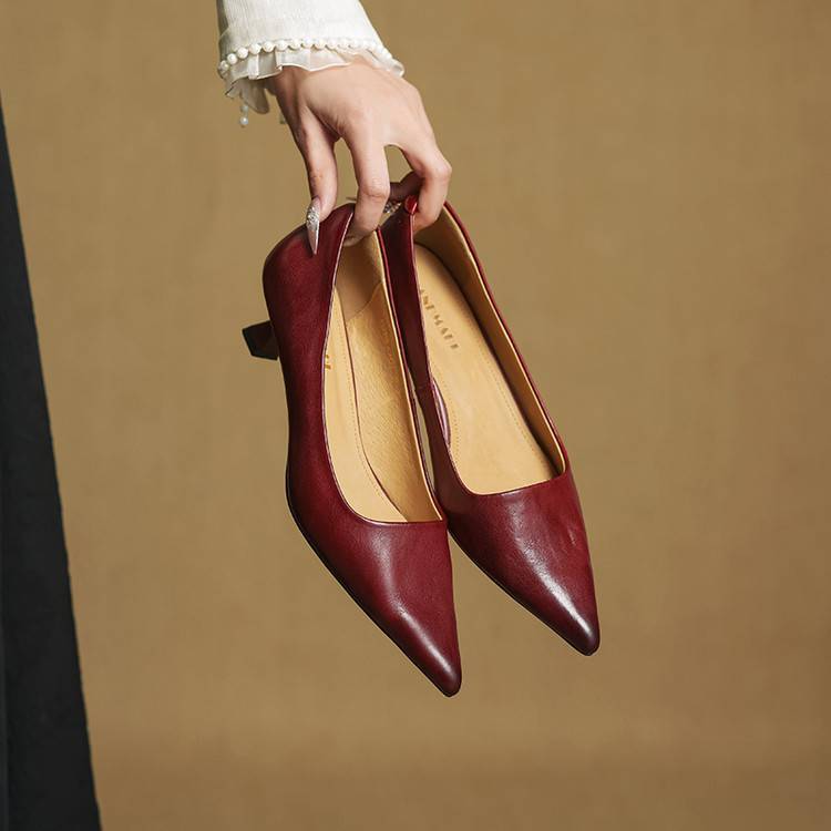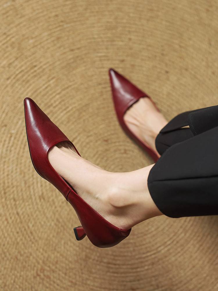 프랑스 뾰족한 스틸레토 힐은 피곤하지 않은 빨간 얕은 미드 힐 레트로 얕은 신발 여성용 통근 작업 신발스토어 가기