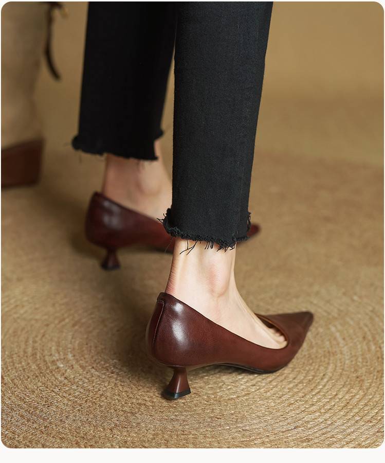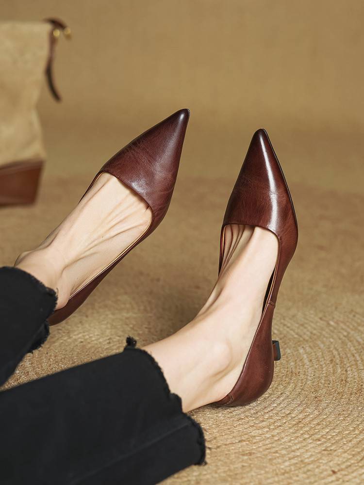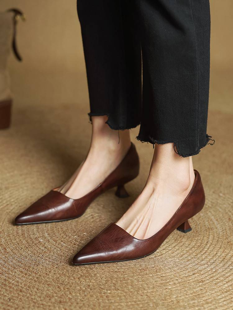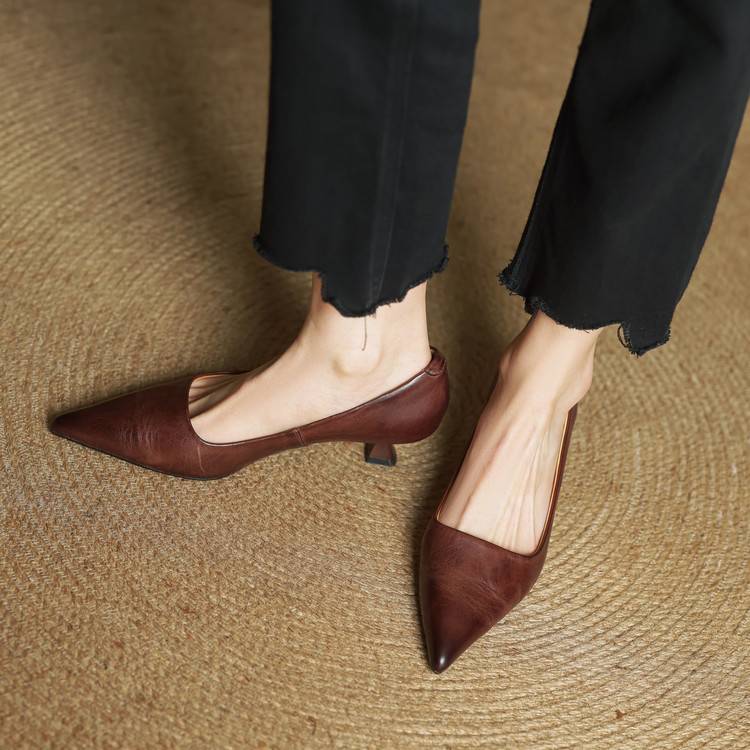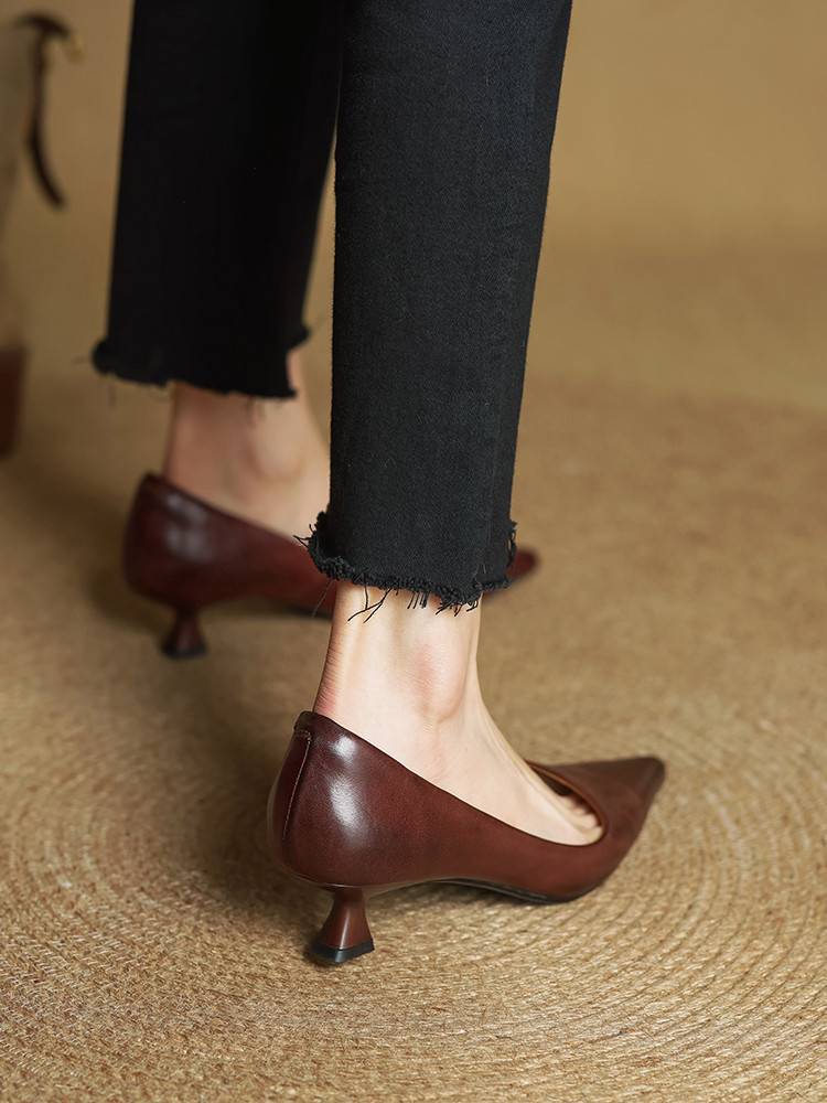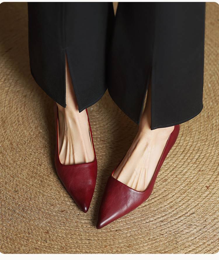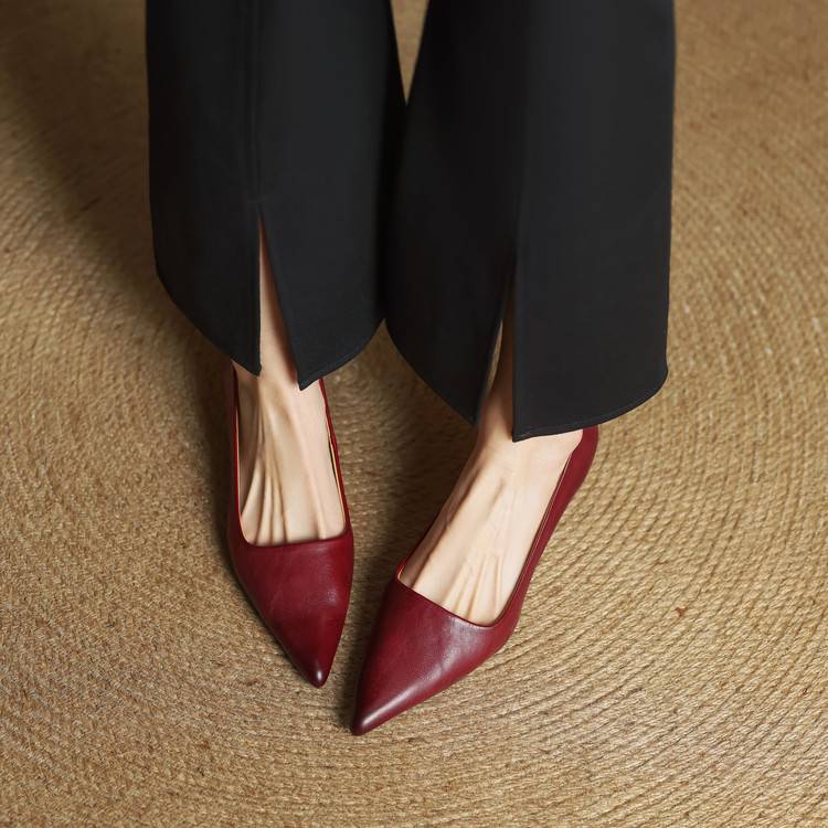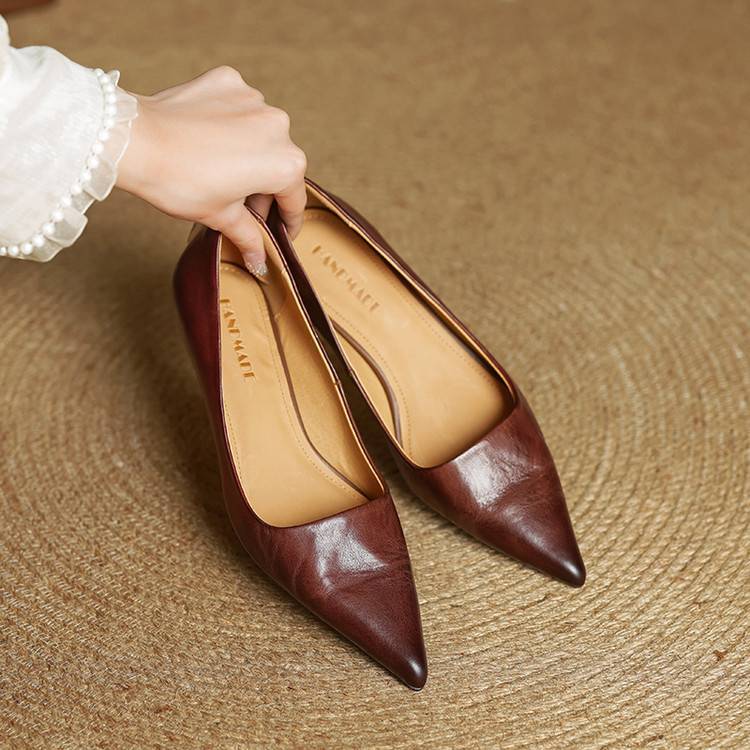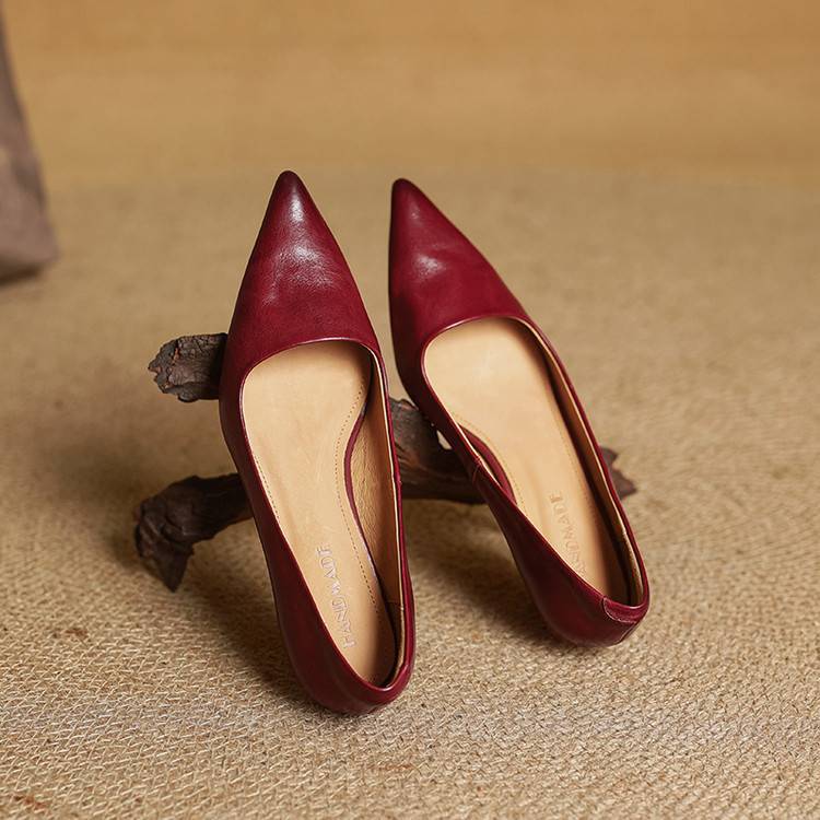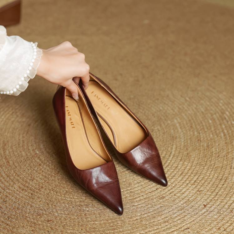 프랑스 뾰족한 스틸레토 힐은 피곤하지 않은 빨간 얕은 미드 힐 레트로 얕은 신발 여성용 통근 작업 신발스토어 가기
