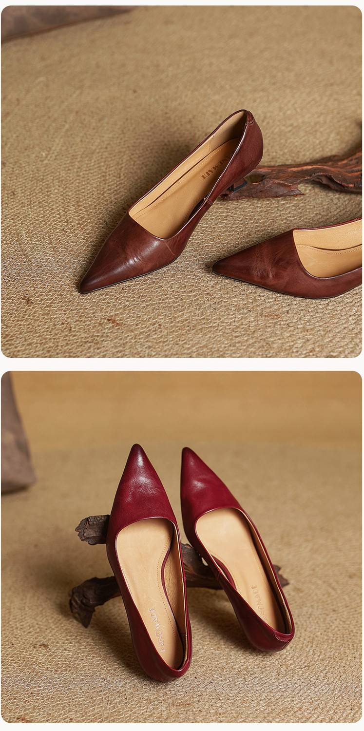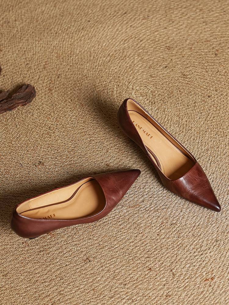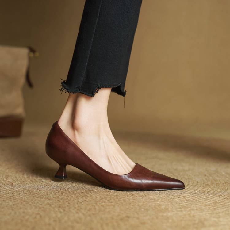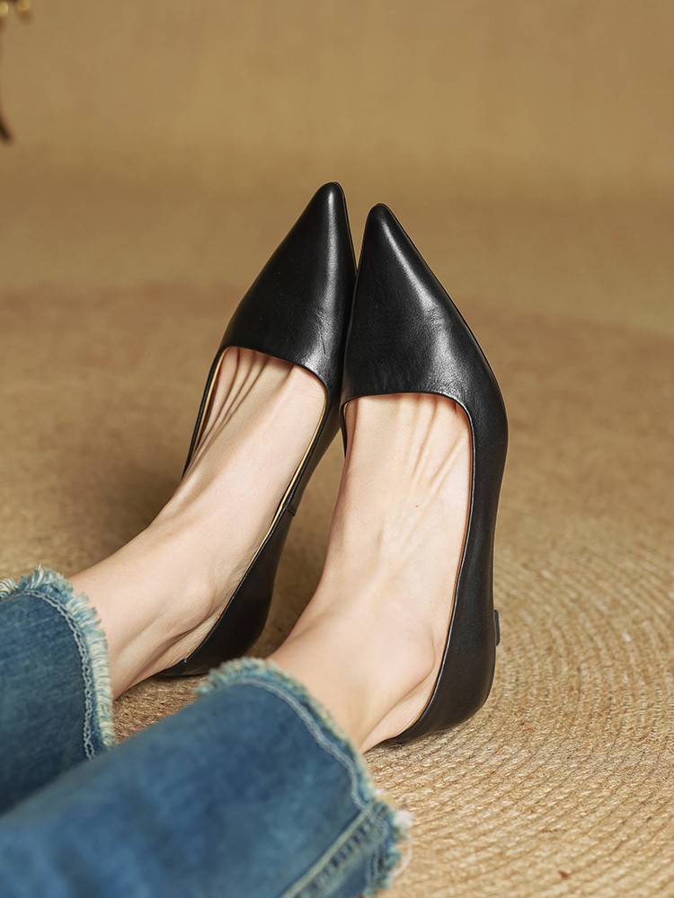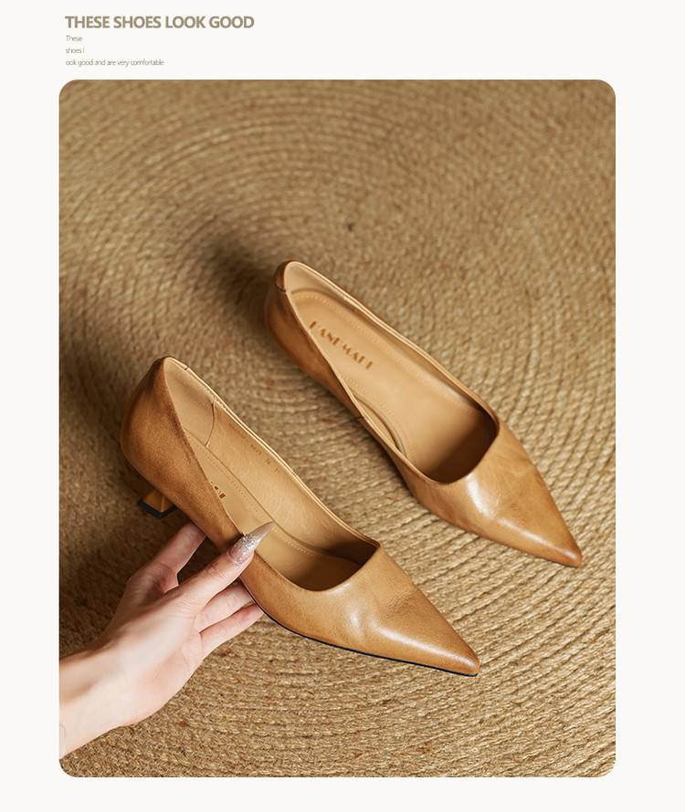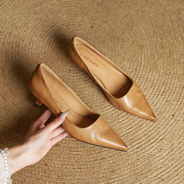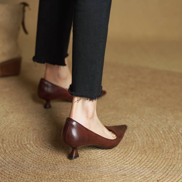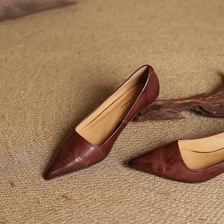 프랑스 뾰족한 스틸레토 힐은 피곤하지 않은 빨간 얕은 미드 힐 레트로 얕은 신발 여성용 통근 작업 신발스토어 가기