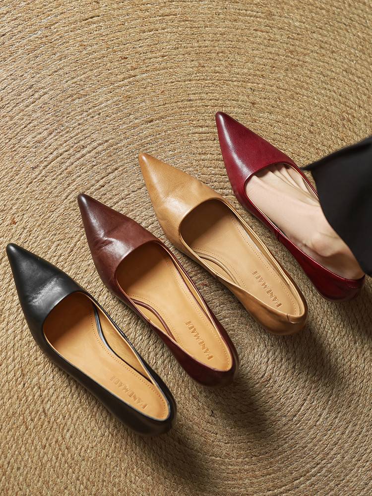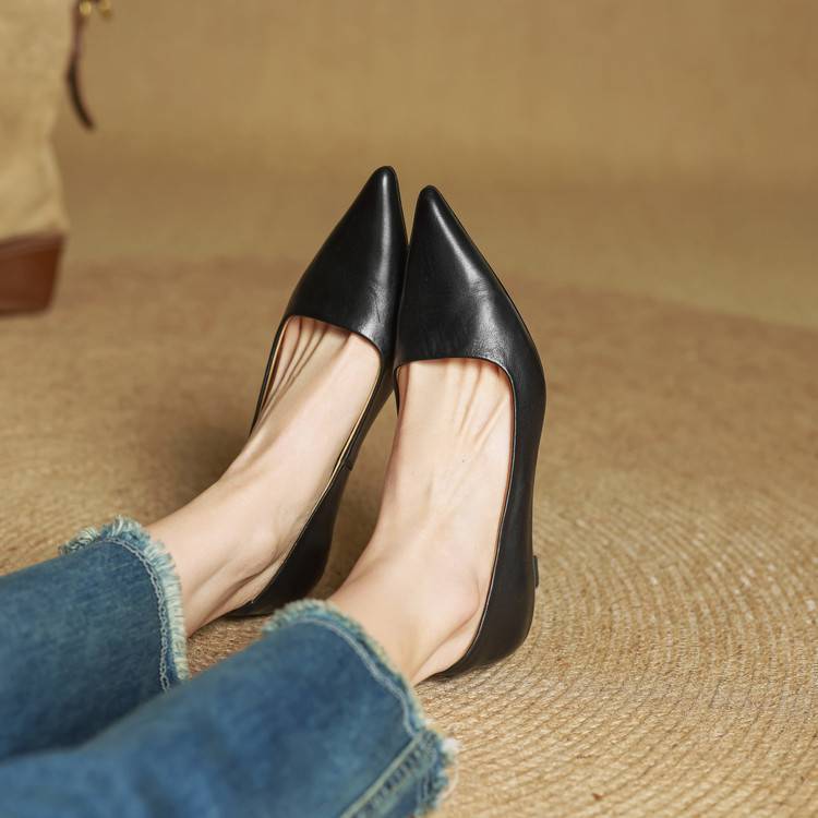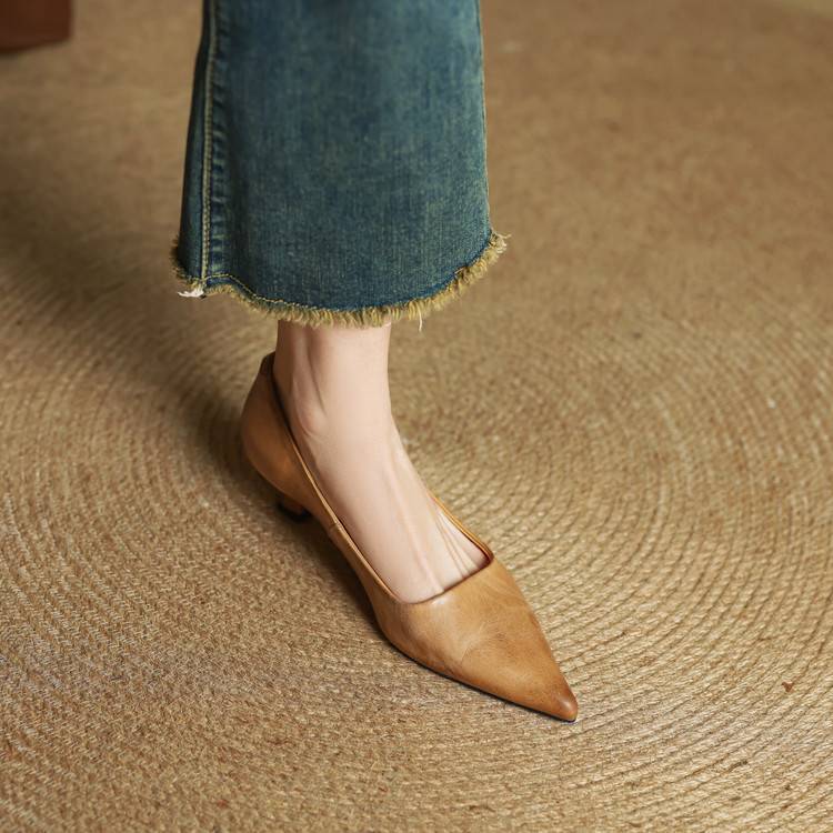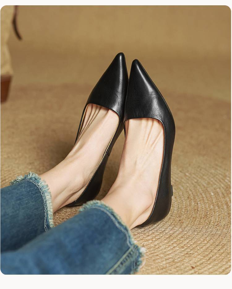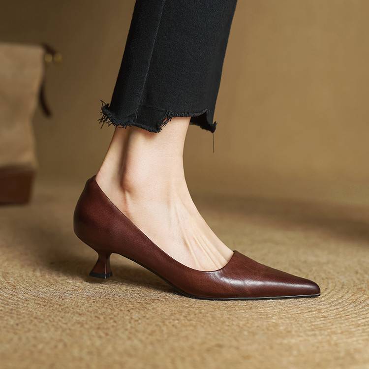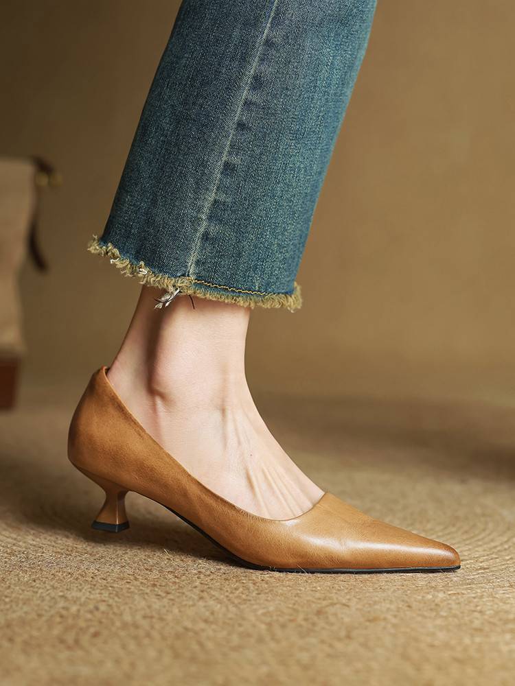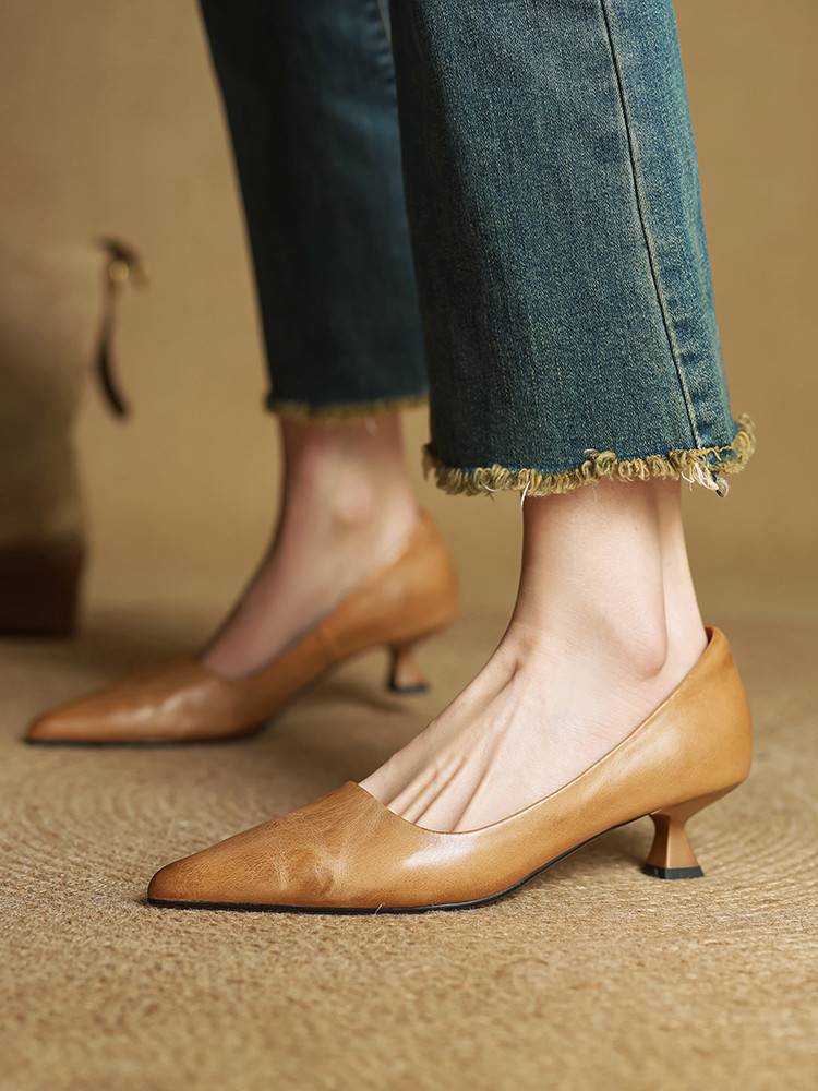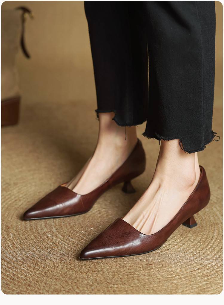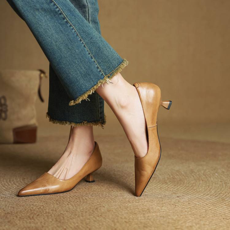 프랑스 뾰족한 스틸레토 힐은 피곤하지 않은 빨간 얕은 미드 힐 레트로 얕은 신발 여성용 통근 작업 신발스토어 가기