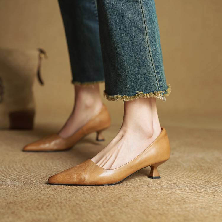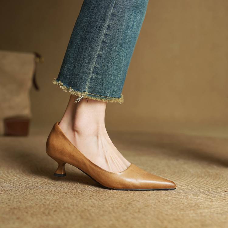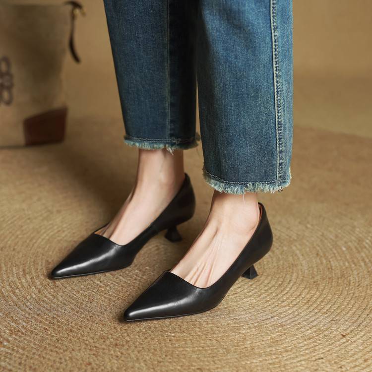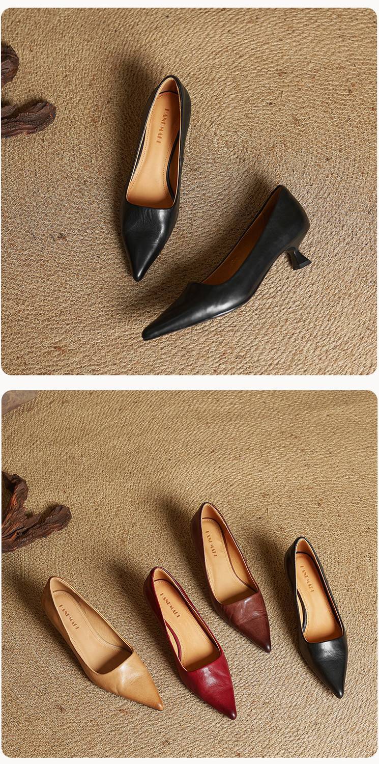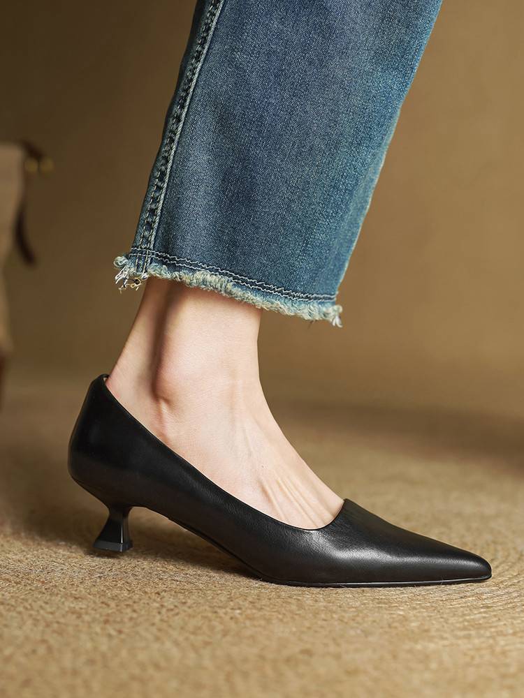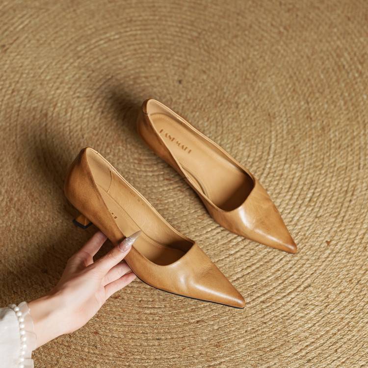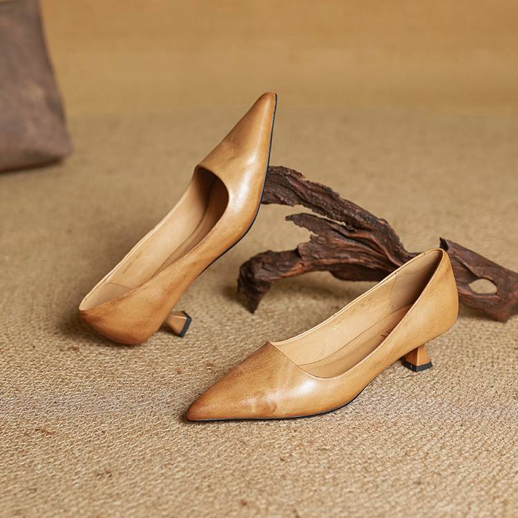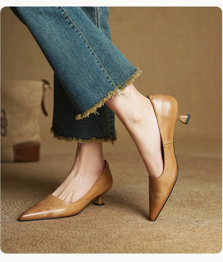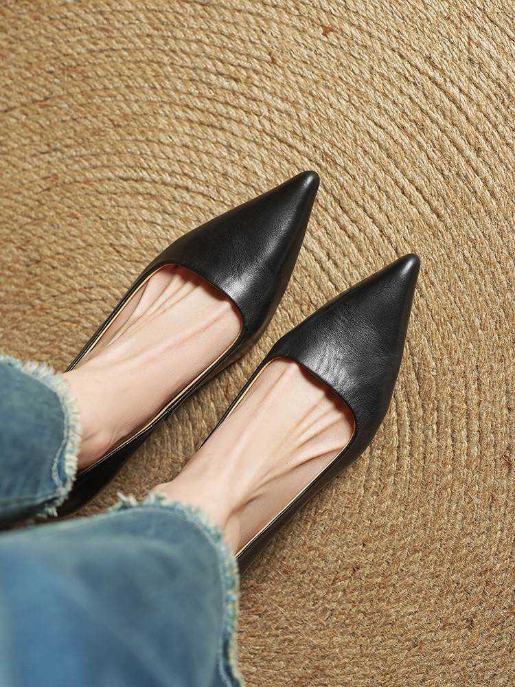 프랑스 뾰족한 스틸레토 힐은 피곤하지 않은 빨간 얕은 미드 힐 레트로 얕은 신발 여성용 통근 작업 신발스토어 가기