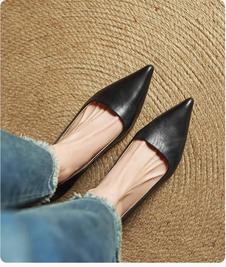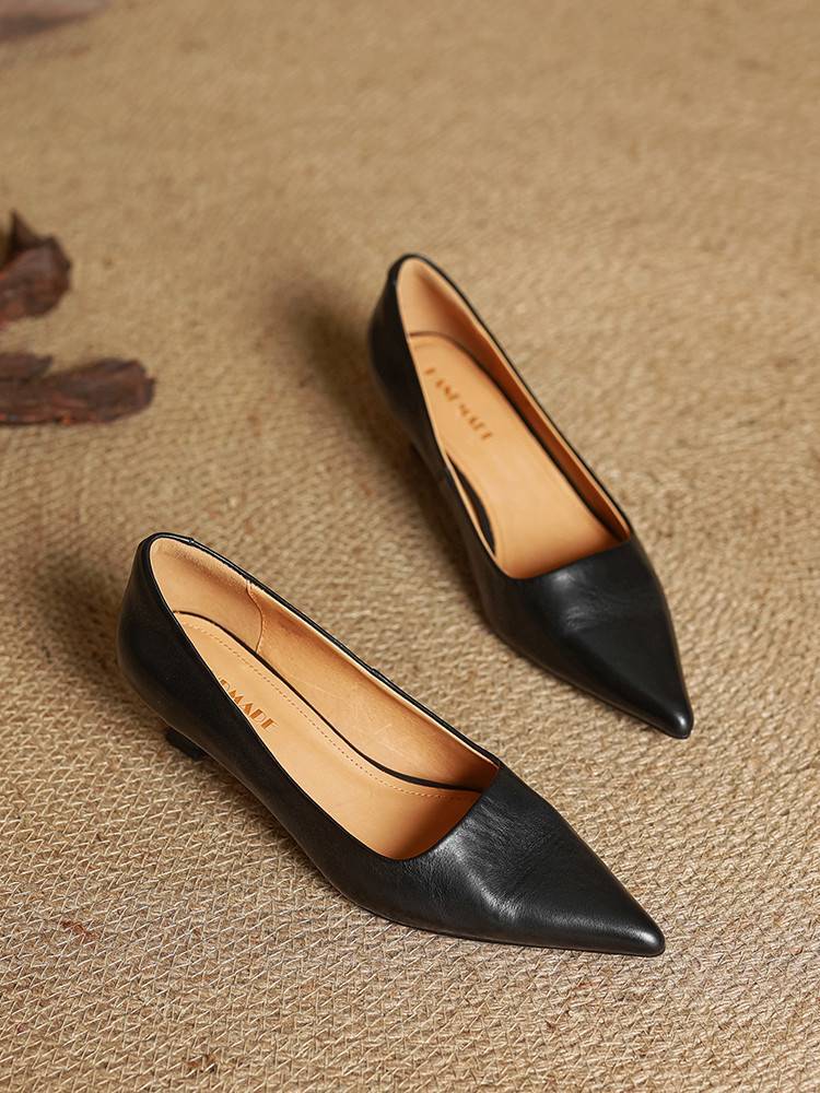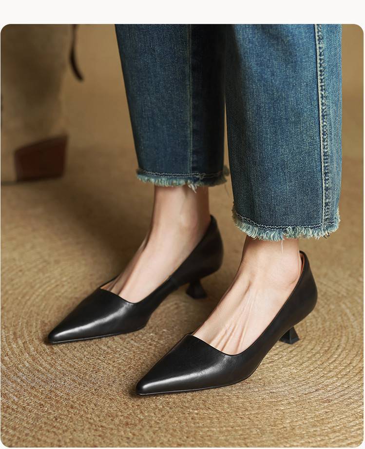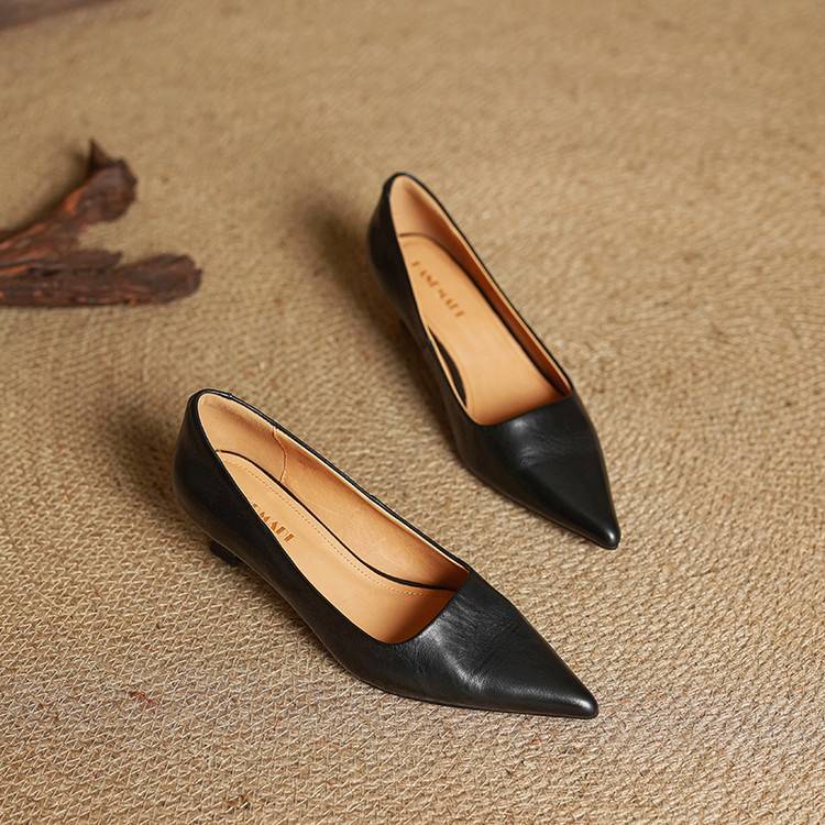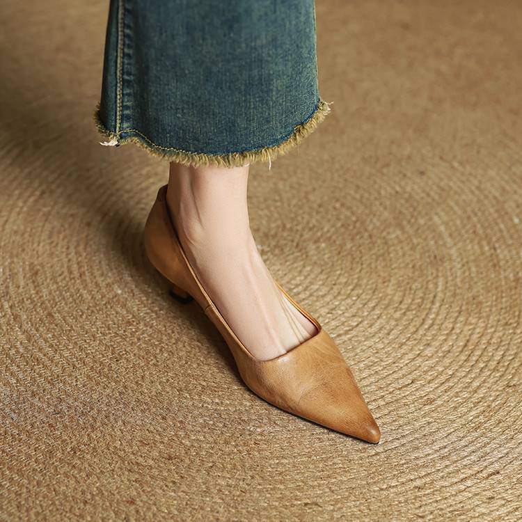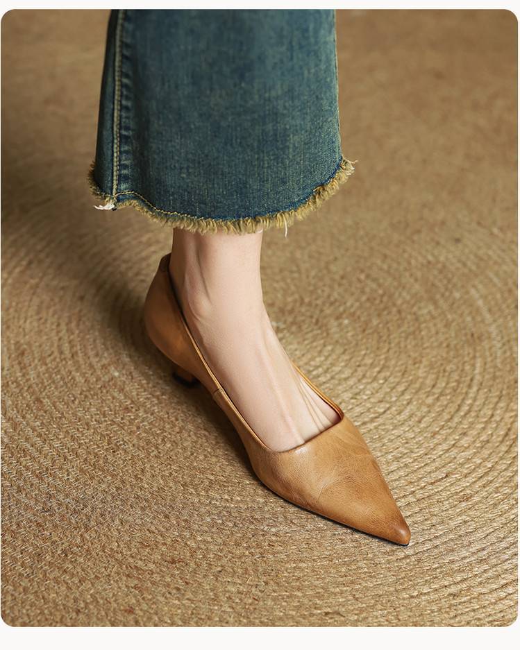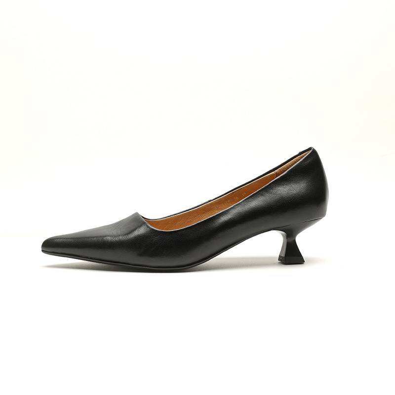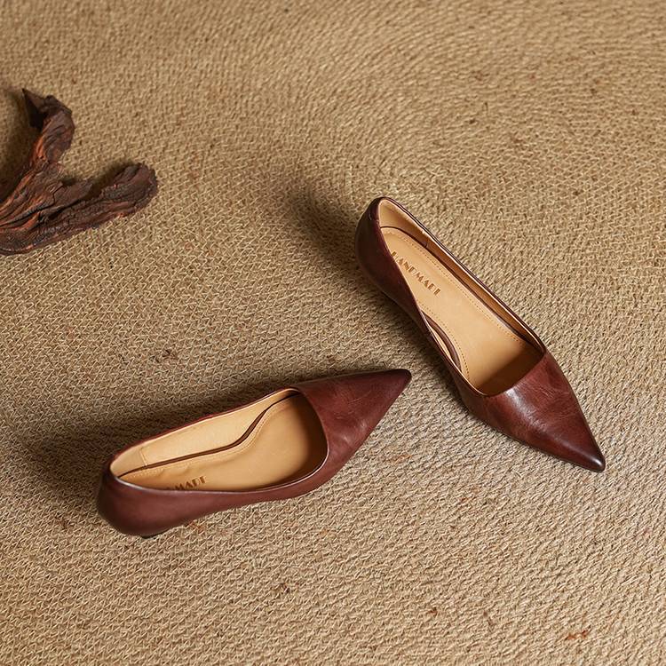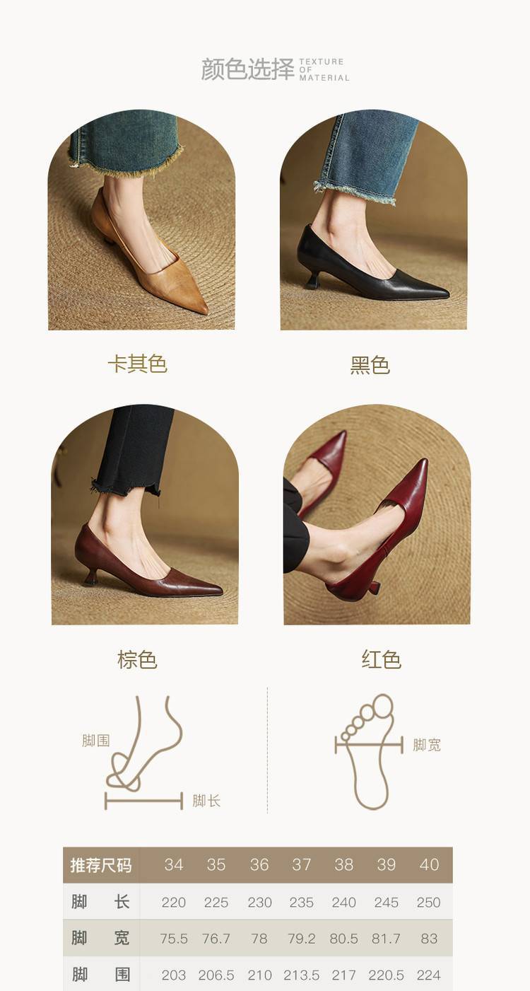 프랑스 뾰족한 스틸레토 힐은 피곤하지 않은 빨간 얕은 미드 힐 레트로 얕은 신발 여성용 통근 작업 신발스토어 가기