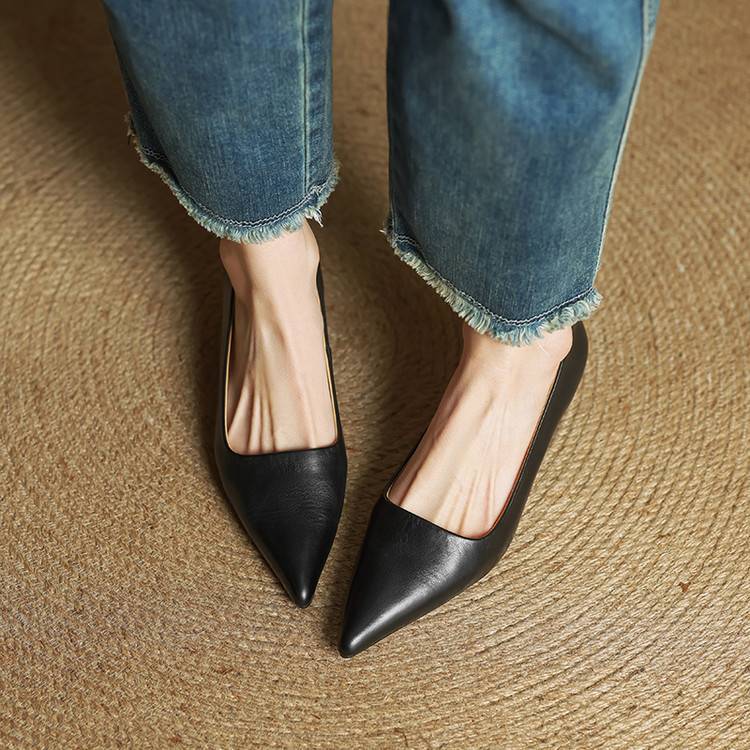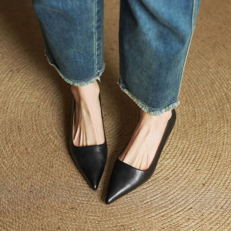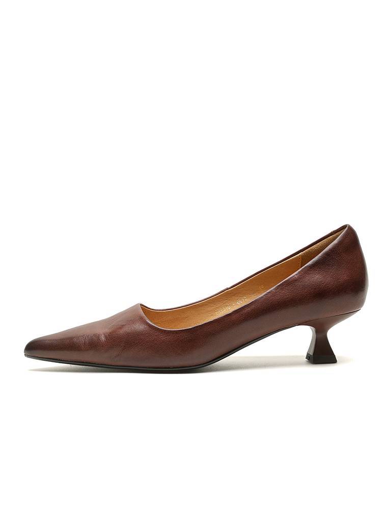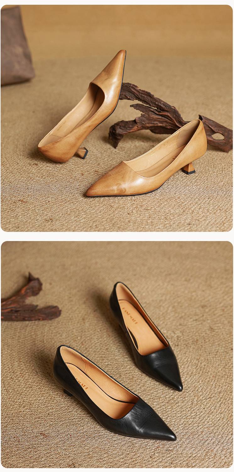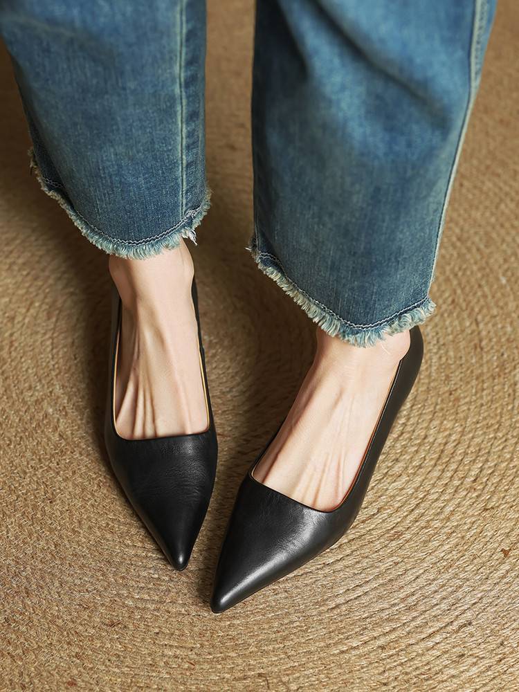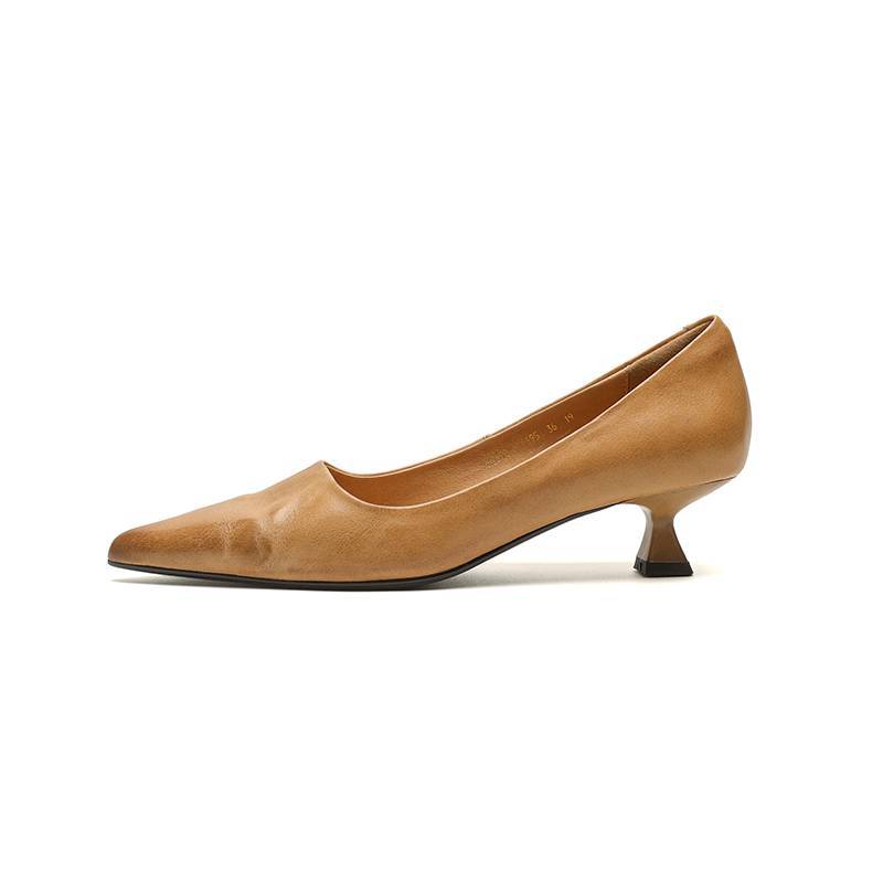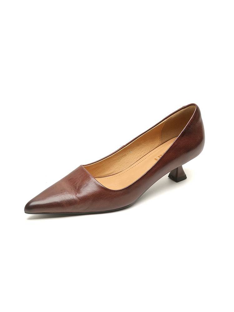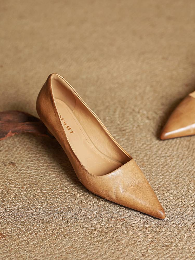 프랑스 뾰족한 스틸레토 힐은 피곤하지 않은 빨간 얕은 미드 힐 레트로 얕은 신발 여성용 통근 작업 신발스토어 가기