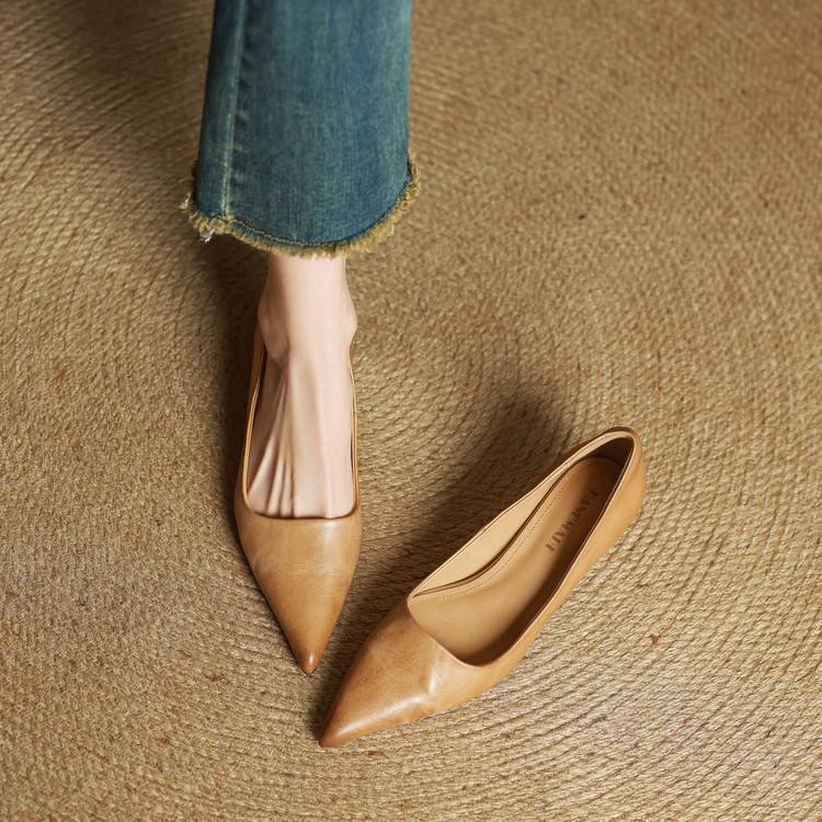 프랑스 뾰족한 스틸레토 힐은 피곤하지 않은 빨간 얕은 미드 힐 레트로 얕은 신발 여성용 통근 작업 신발