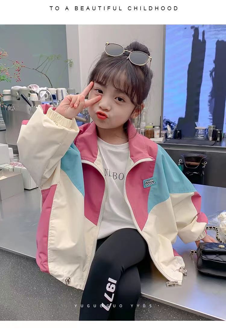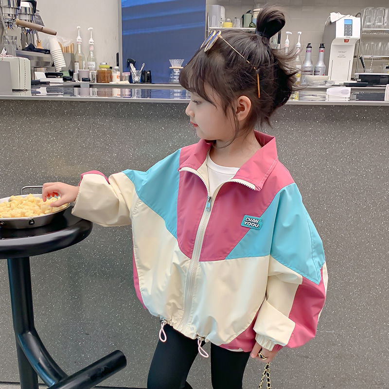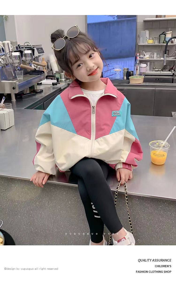 어린이 코트 걸스 재킷 봄과 가을 2025 봄 새 소녀의 세련된 바느질 스포츠 탑스토어 가기