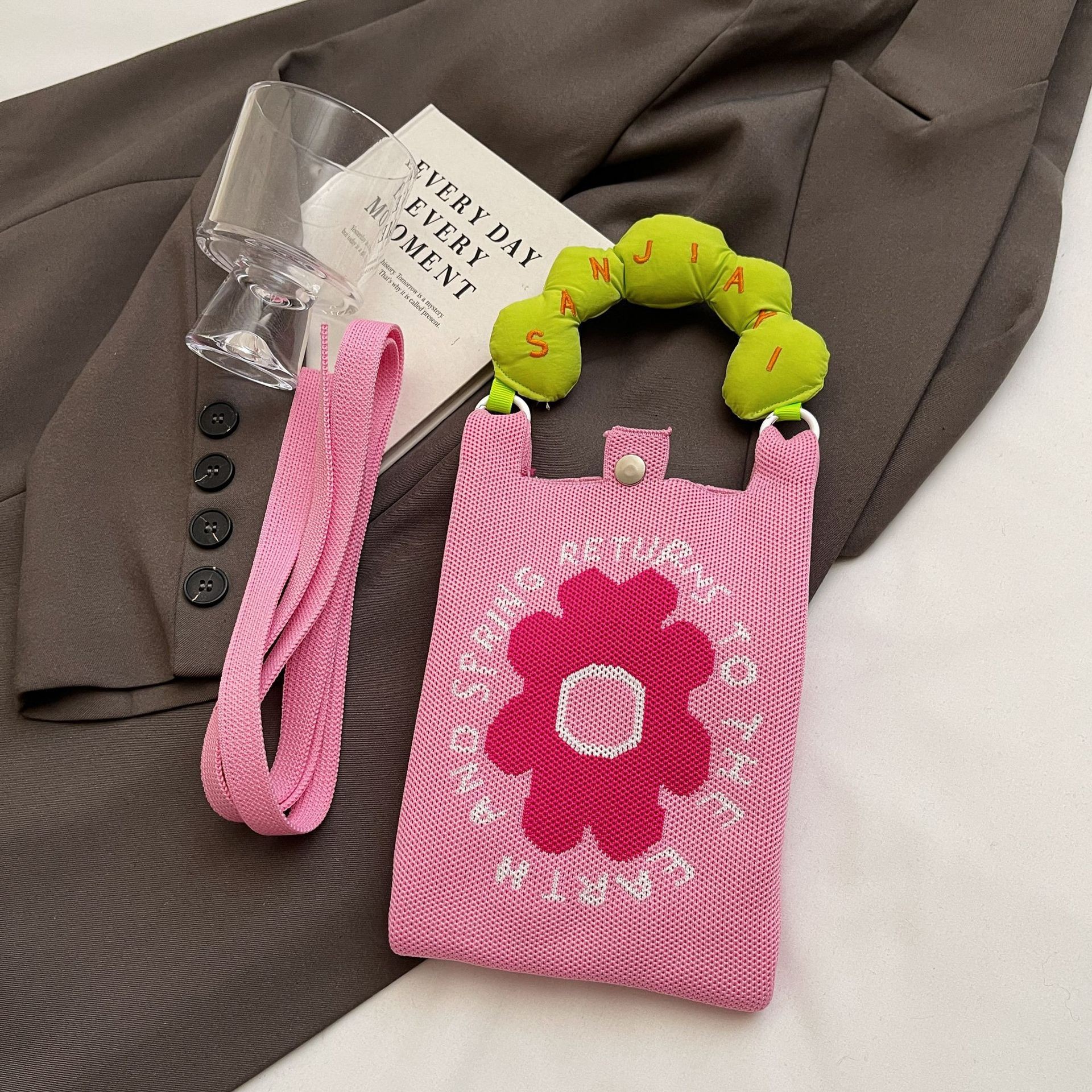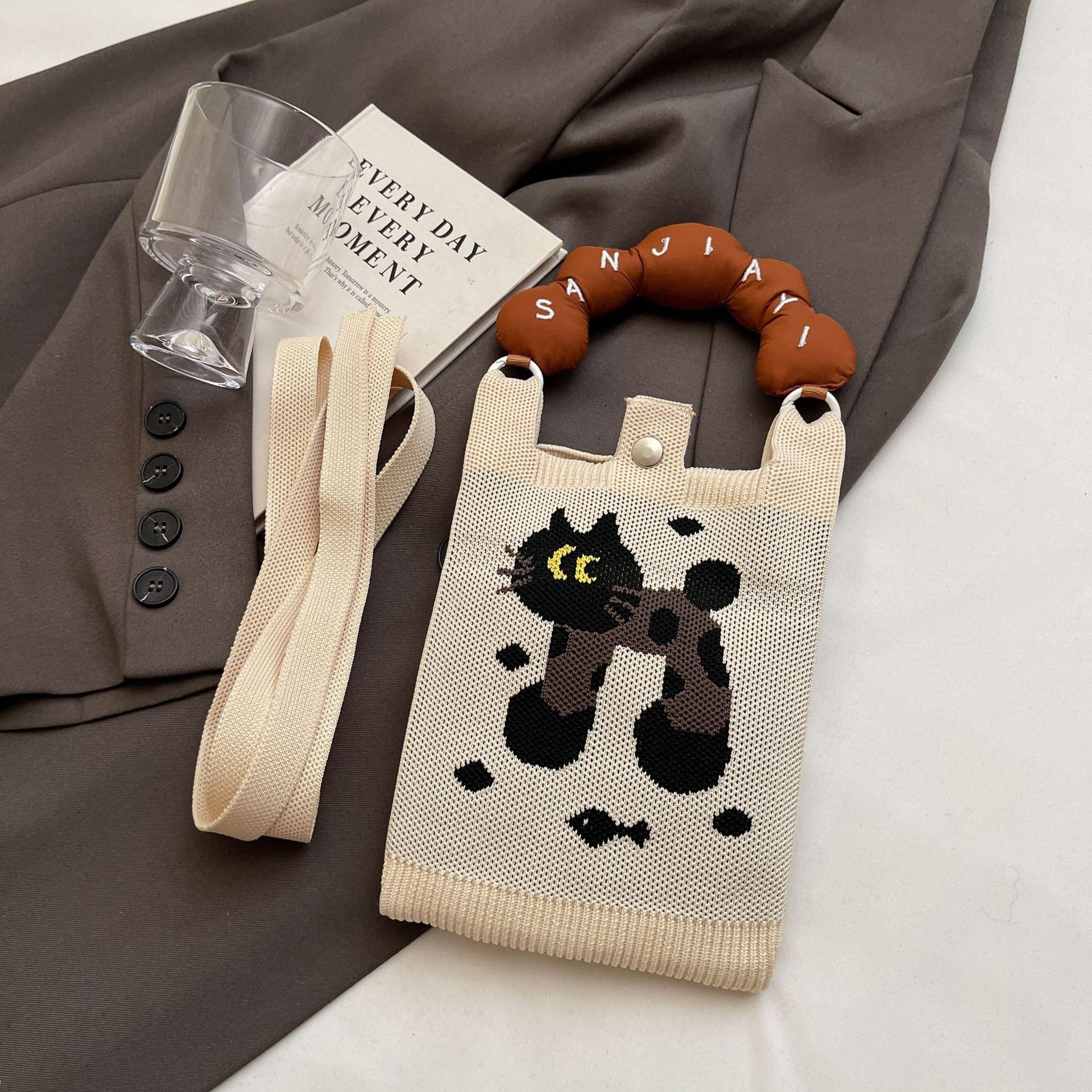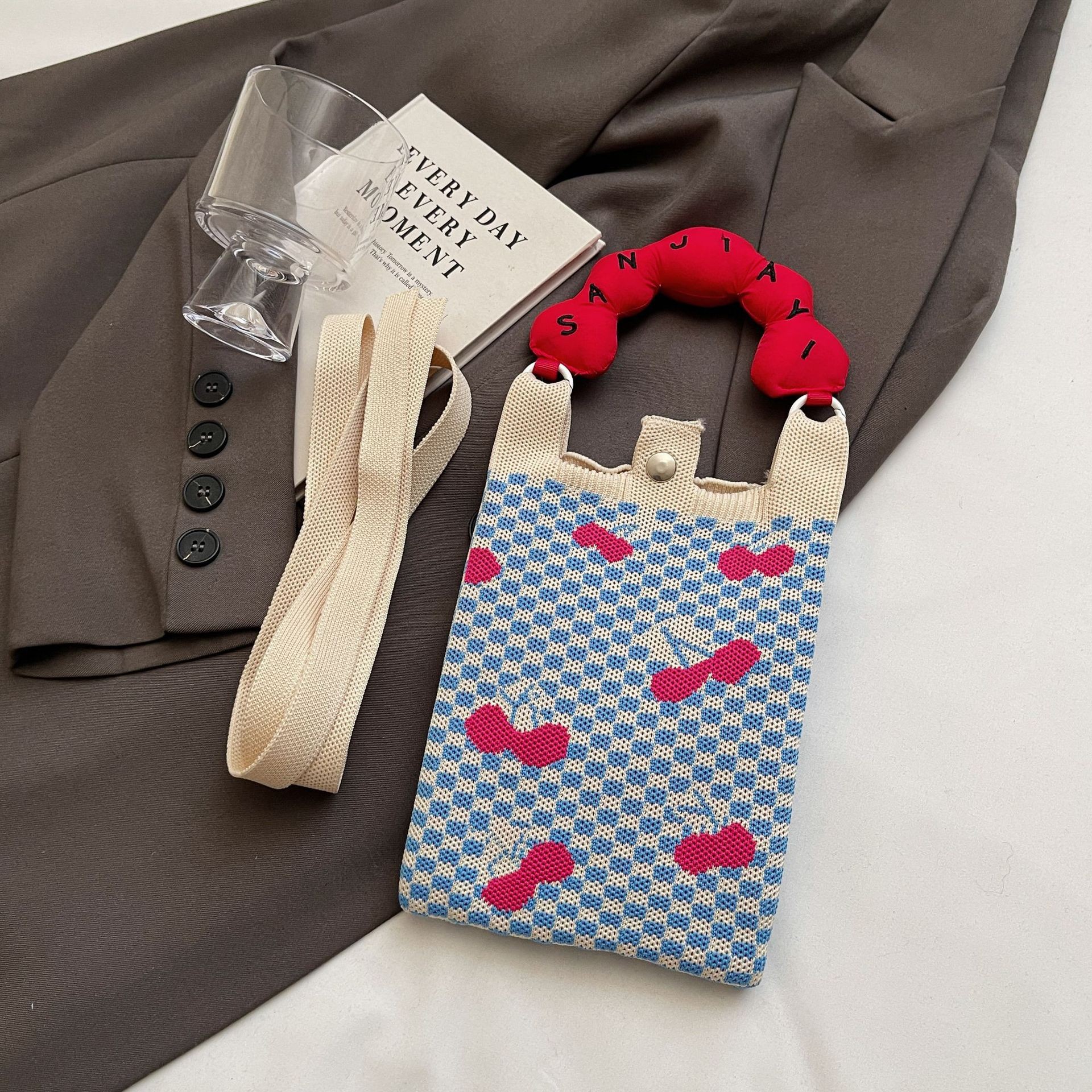 새로운 틈새 디자인 귀여운 만화 미니 니트 휴대 전화 가방 모든 경기 작은 휴대용 통근 크로스 바디 작은 광장 가방스토어 가기