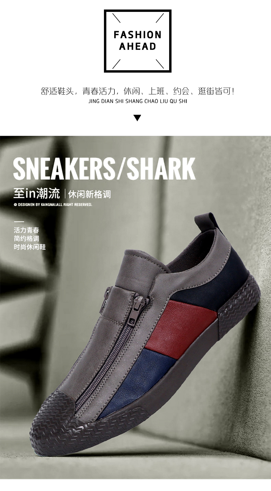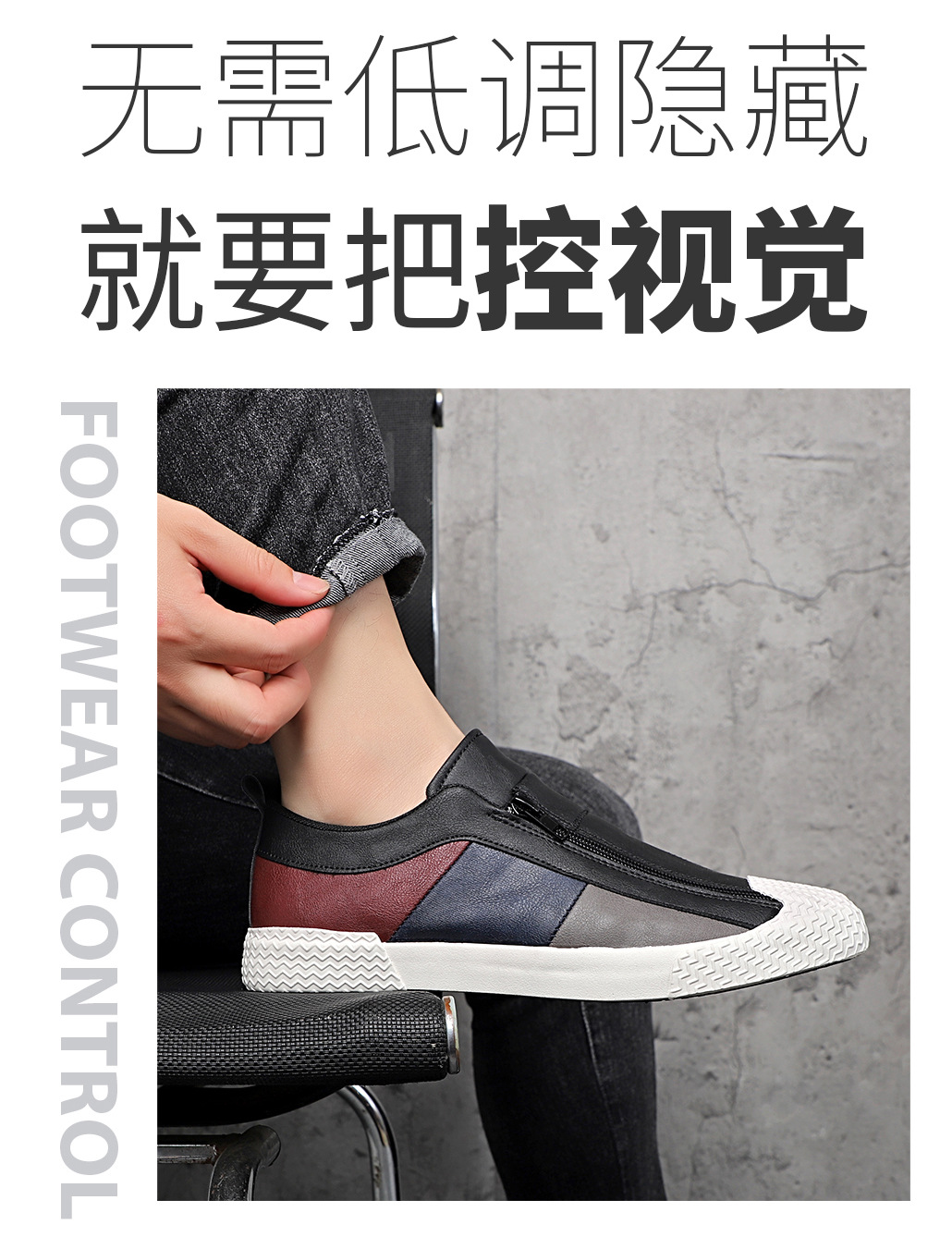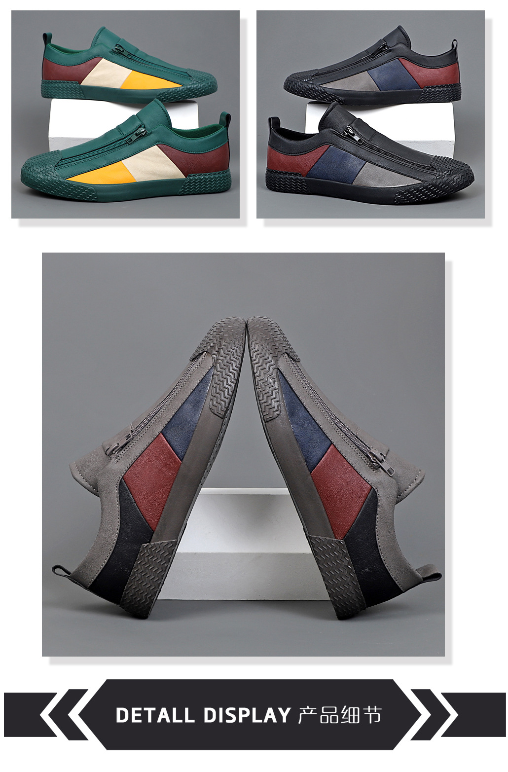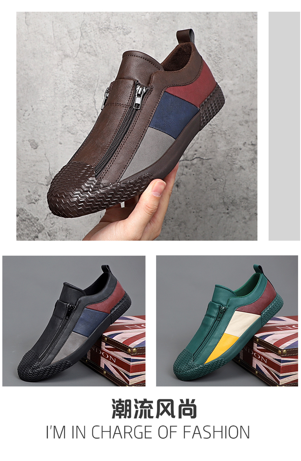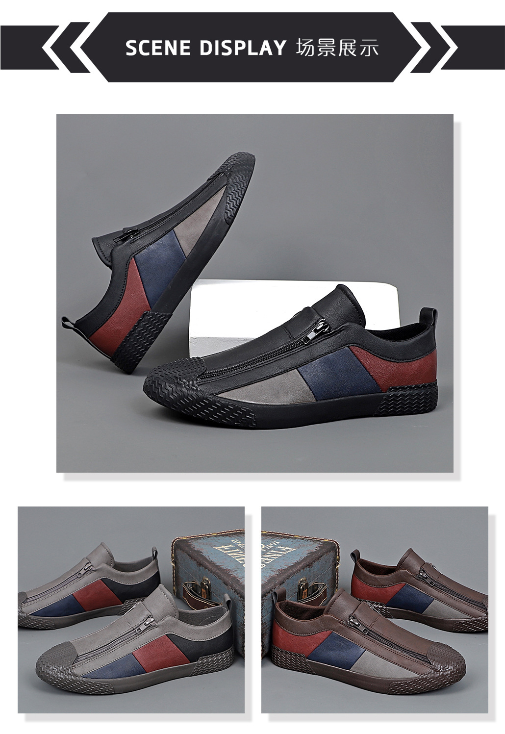2025 남성용 캐주얼 가죽 신발, 지퍼 로우탑, 다용도 운동화, 트렌디한 컬러 매칭, 크로스보더 베스트셀러, 대형 가죽 신발스토어 가기