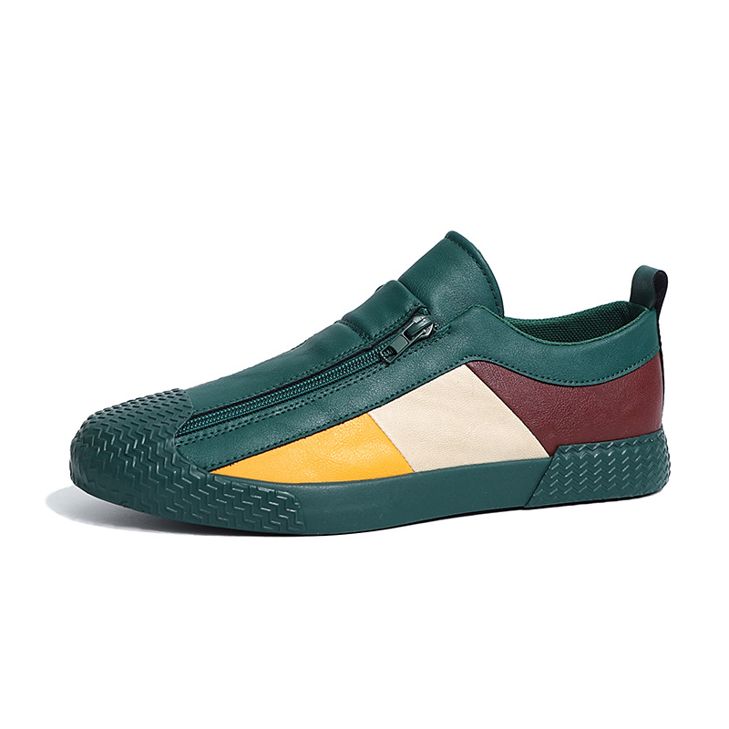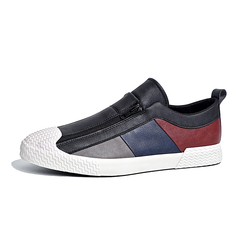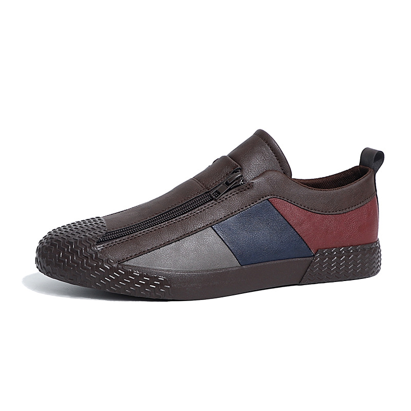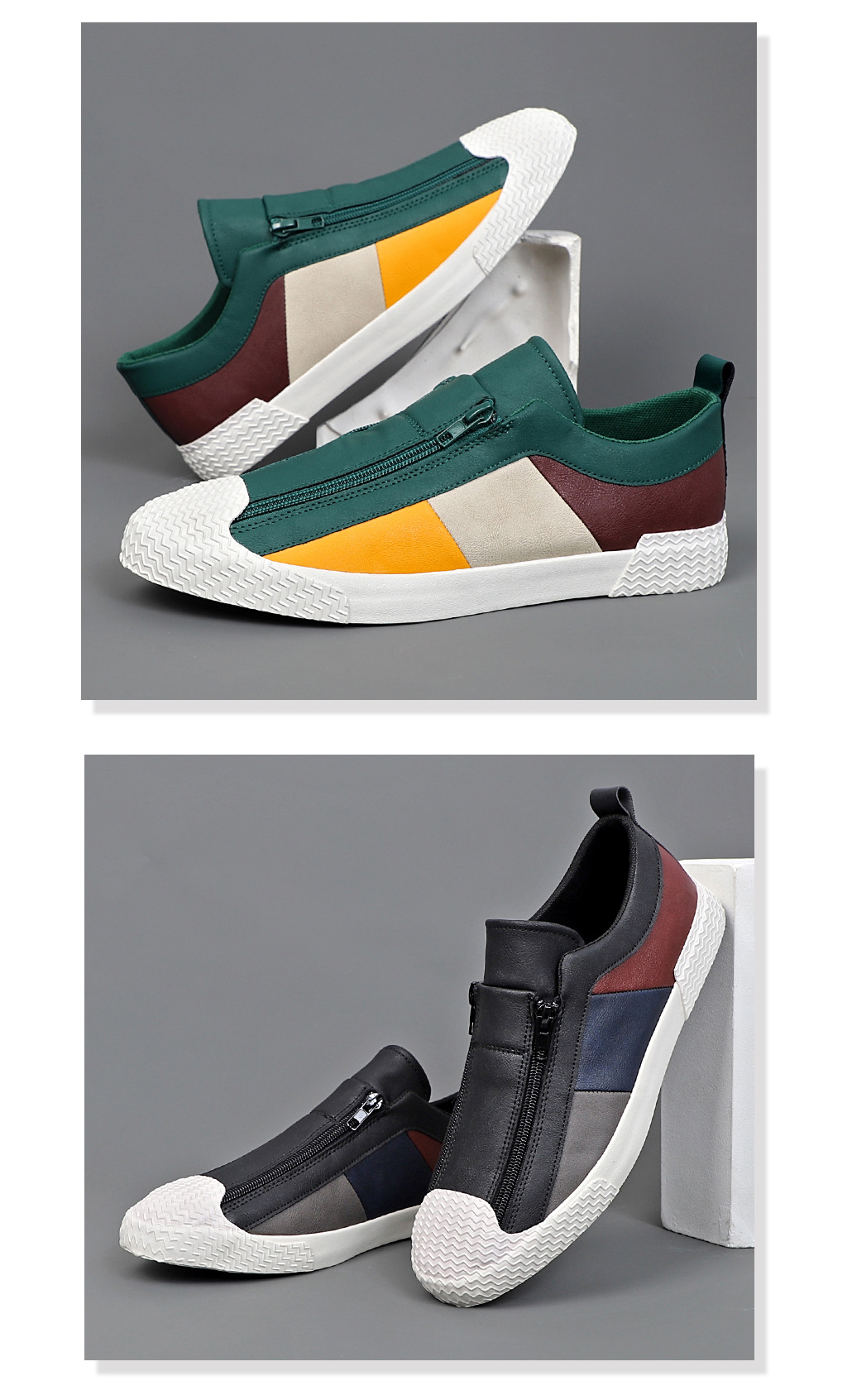 2025 남성용 캐주얼 가죽 신발, 지퍼 로우탑, 다용도 운동화, 트렌디한 컬러 매칭, 크로스보더 베스트셀러, 대형 가죽 신발