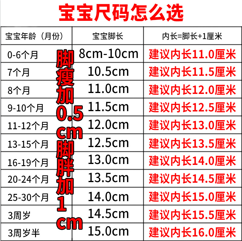 • 발 길이에 0.5cm을 더한 후 한쪽 발에 1cm을 더해 주세요.