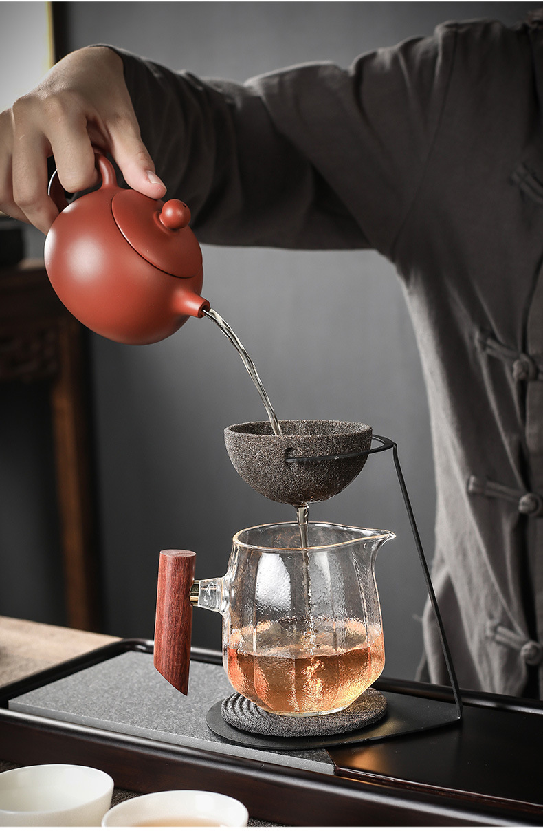 비 다공성 차 누설 가정용 차 필터 차 물 분리 창조적 인 브래킷 일본식 작은 녹색 오렌지 차 냄비
