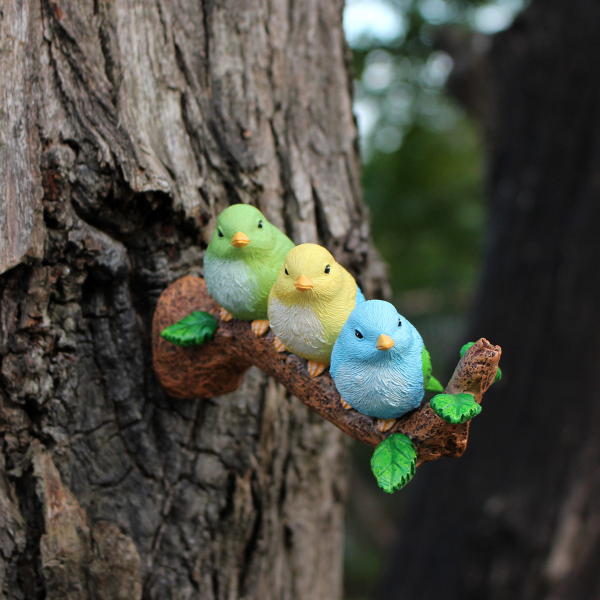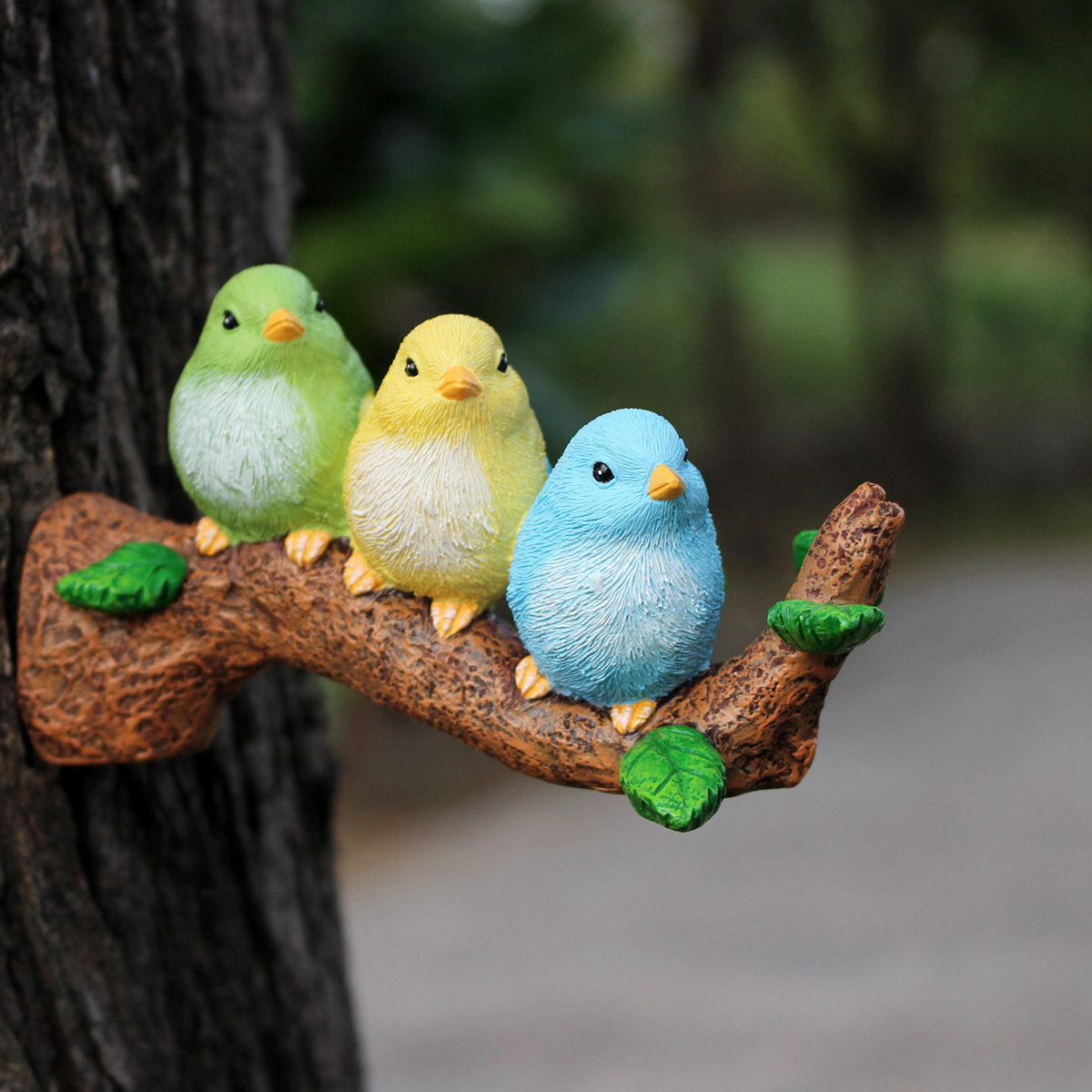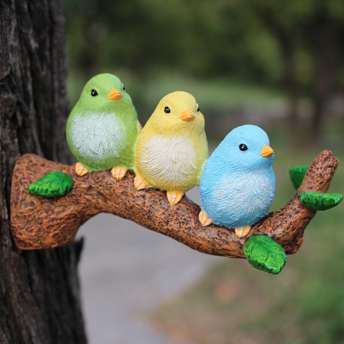 국경 간 창조적 인 세 새 나무 매달려 수지 공예 야외 귀여운 동물 안뜰 나무 벽 장식