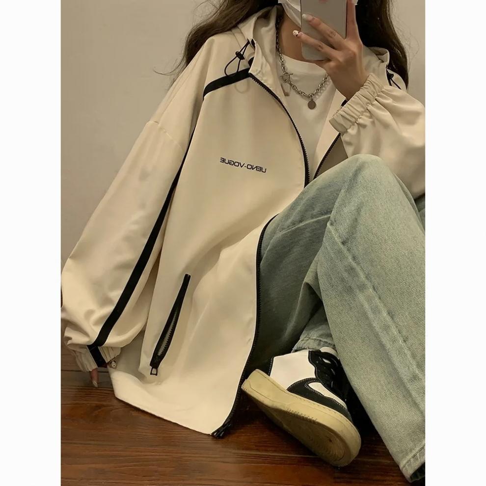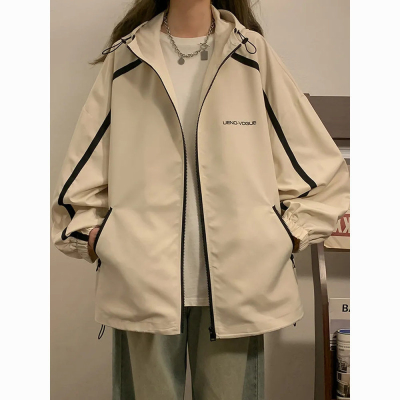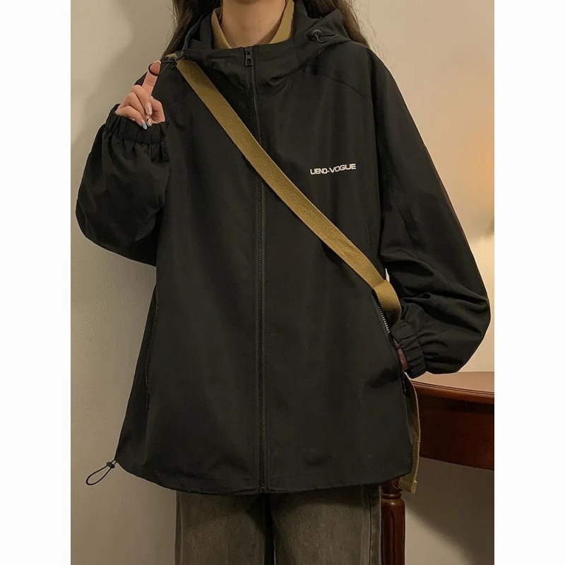 충전 옷 2024 새로운 빈티지 재킷 후드 봄 가을 미국 한국 스타일 재킷 느슨한 방풍 여학생스토어 가기