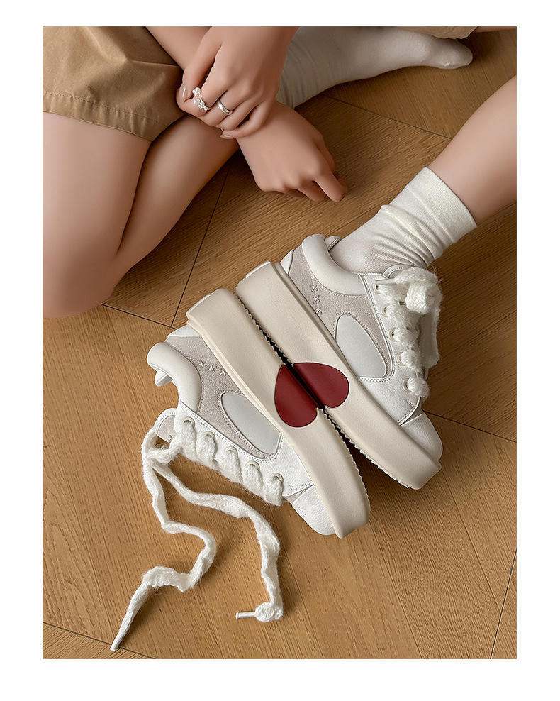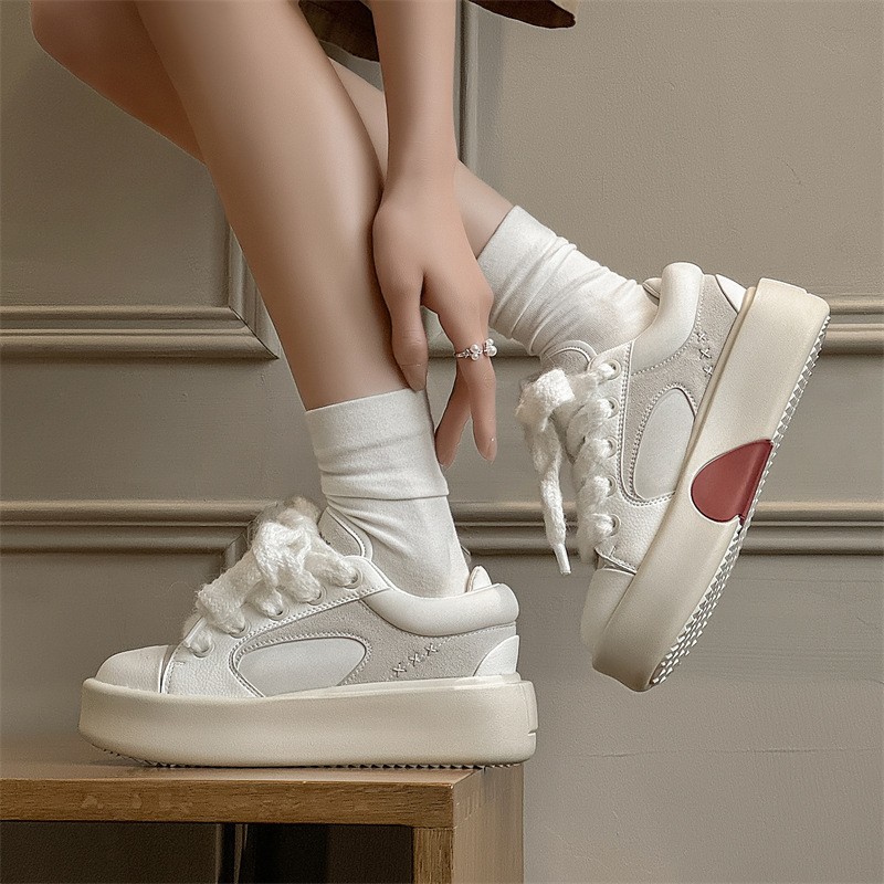 틈새 디자인 남성과 여성 신발 봄 올 매치 높이 증가 사랑 신발 캐주얼 애호가 트렌디 한 단색 흰색 신발스토어 가기
