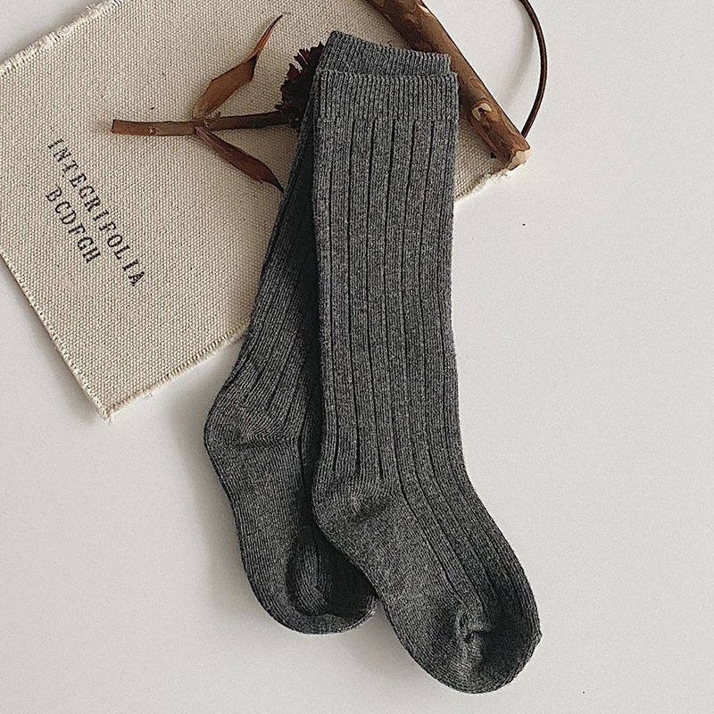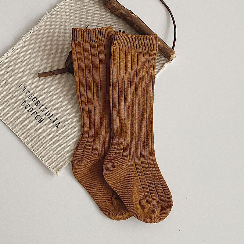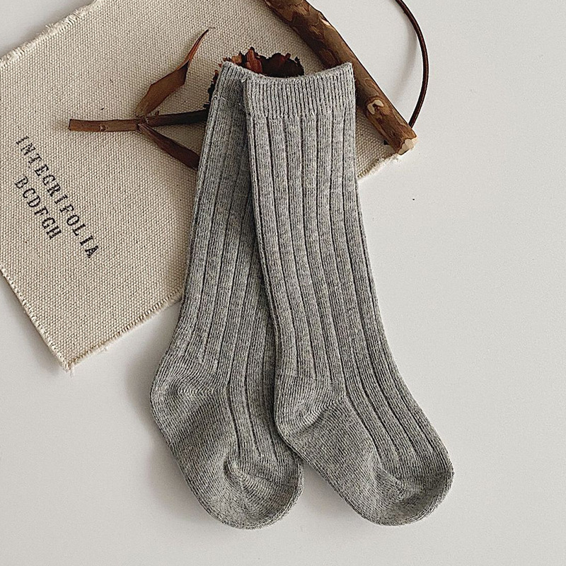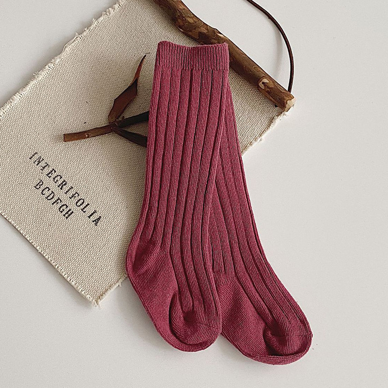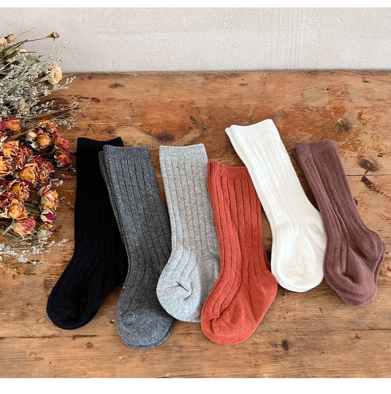 어린이 양말 봄과 가을 순면 양말 한국식 Ins 트렌디 한 단색 복고풍 아기 겨울 올 매치 미드 튜브 양말