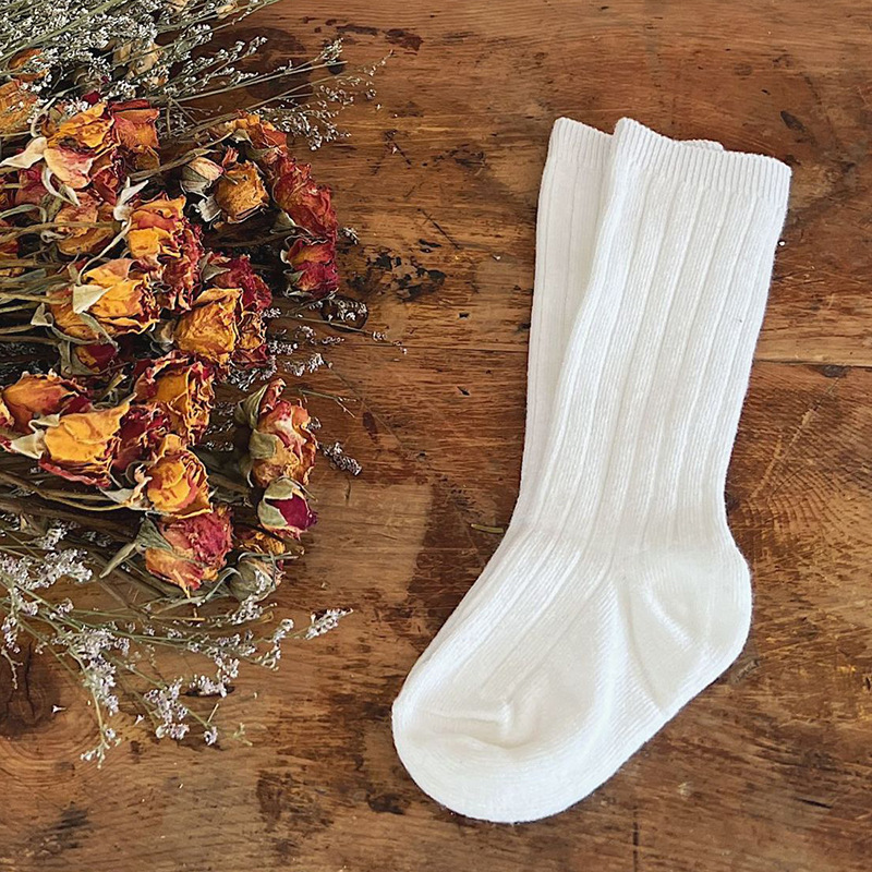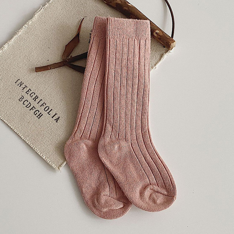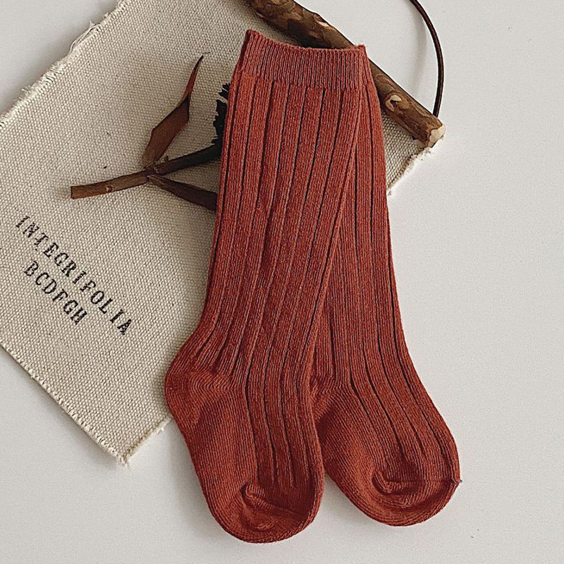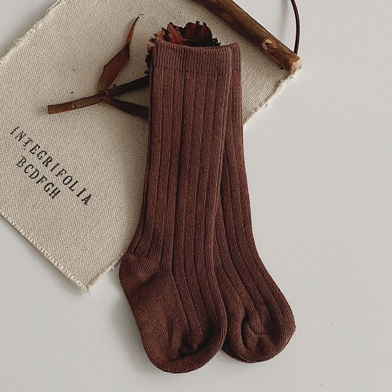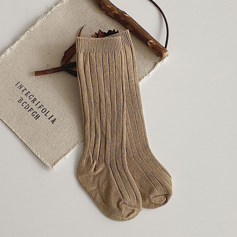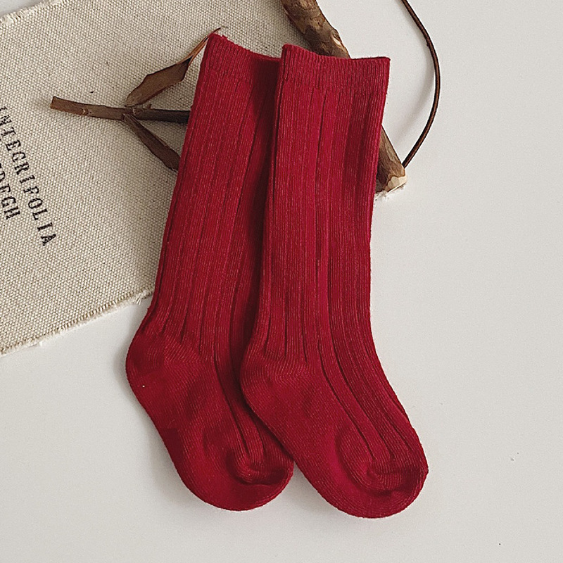 어린이 양말 봄과 가을 순면 양말 한국식 Ins 트렌디 한 단색 복고풍 아기 겨울 올 매치 미드 튜브 양말