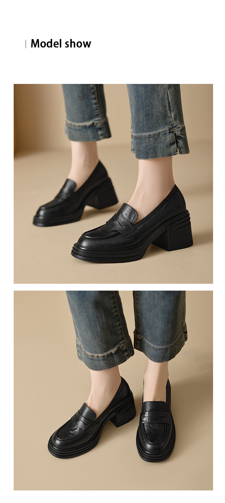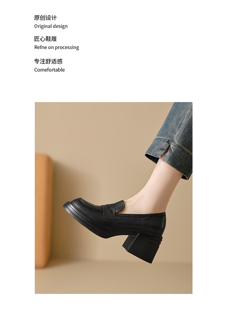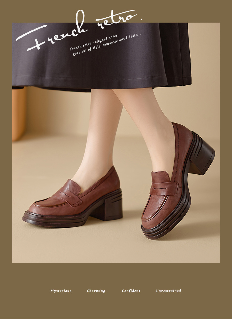 깊은 입 하이힐 2025 로퍼 여성 가을 작은 새 싱글 신발 두꺼운 발 뒤꿈치 년 둥근 발가락 두꺼운 단독 빈티지 싱글 신발스토어 가기