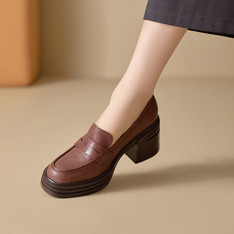 깊은 입 하이힐 2025 로퍼 여성 가을 작은 새 싱글 신발 두꺼운 발 뒤꿈치 년 둥근 발가락 두꺼운 단독 빈티지 싱글 신발