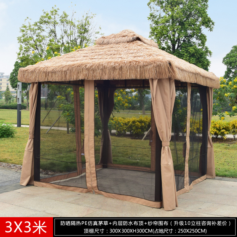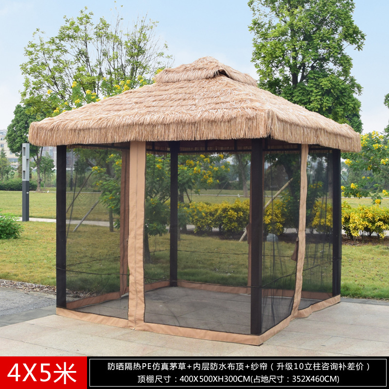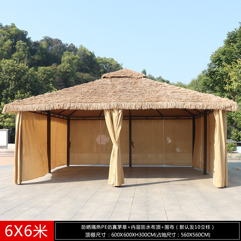 유유 야외 차양 캐노피 안뜰 야외 네발 파빌리온 농가 초가 창고 우산 밀짚 텐트