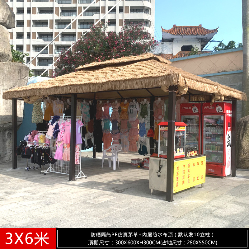 유유 야외 차양 캐노피 안뜰 야외 네발 파빌리온 농가 초가 창고 우산 밀짚 텐트스토어 가기