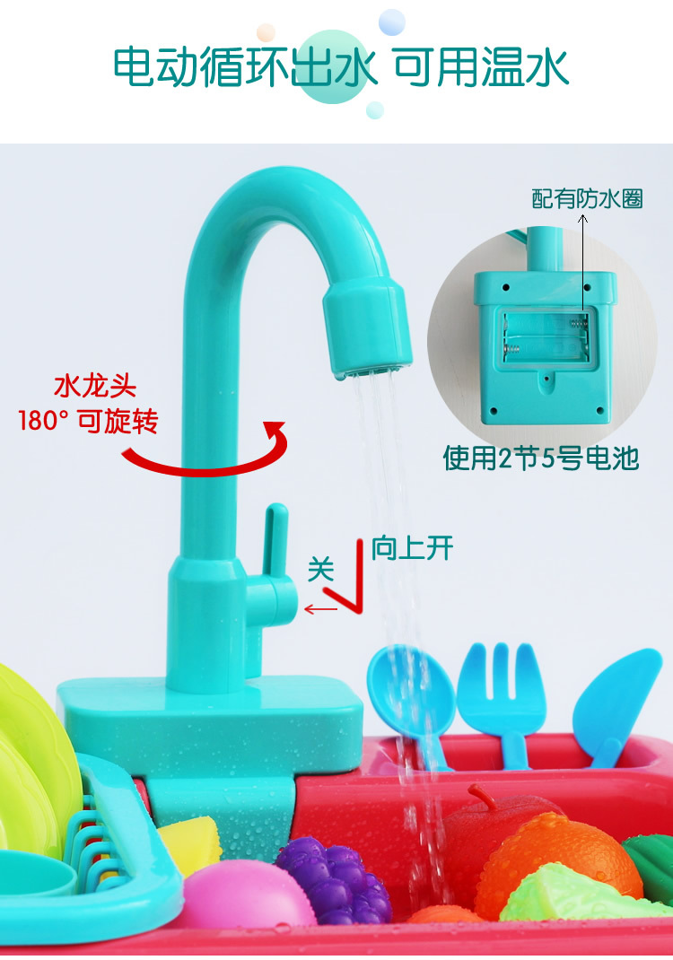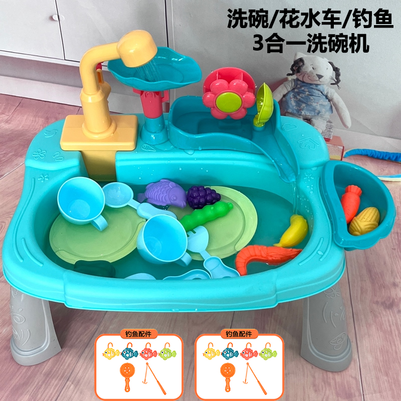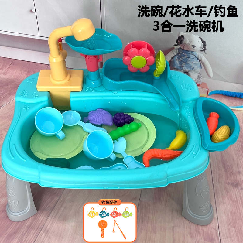 새로운 어린이 전기 식기 세척기 꽃 물 카트 세척 수영장 자동 순환 수도꼭지 아기 낚시 놀이 물