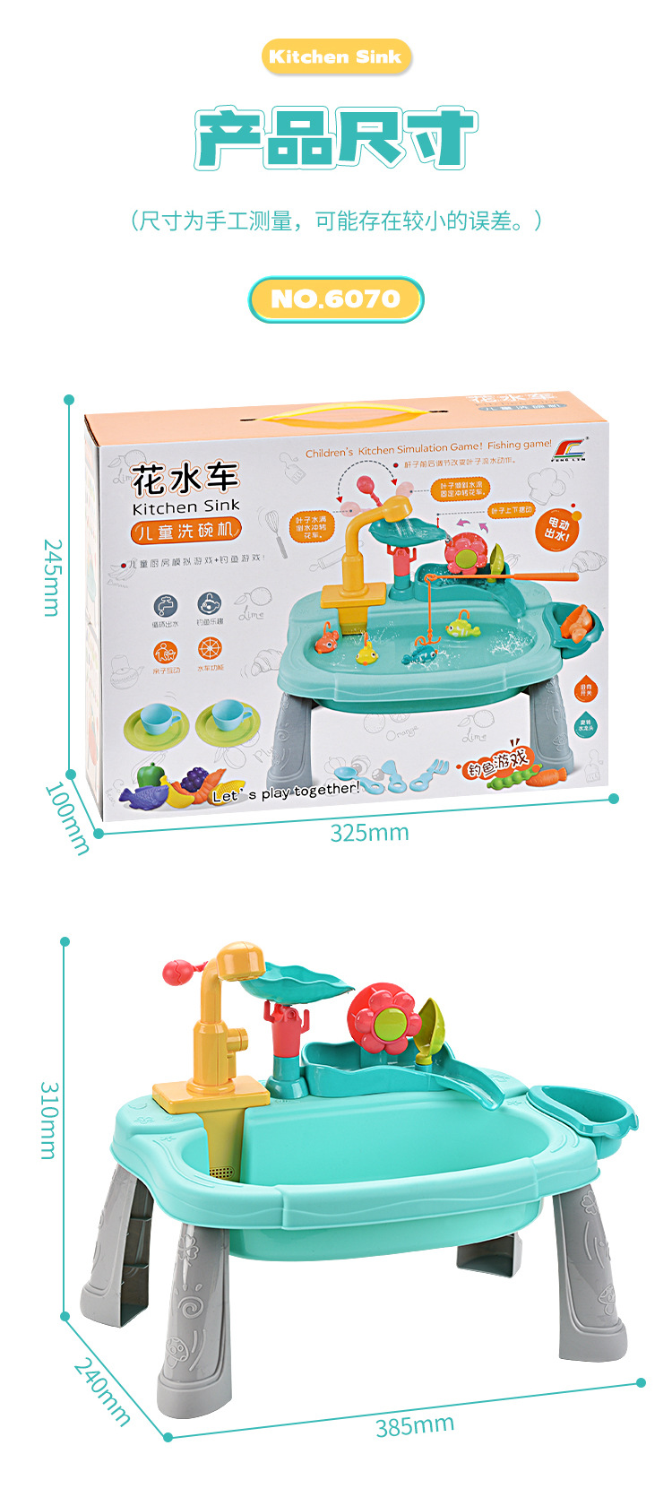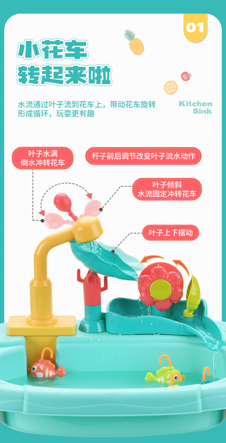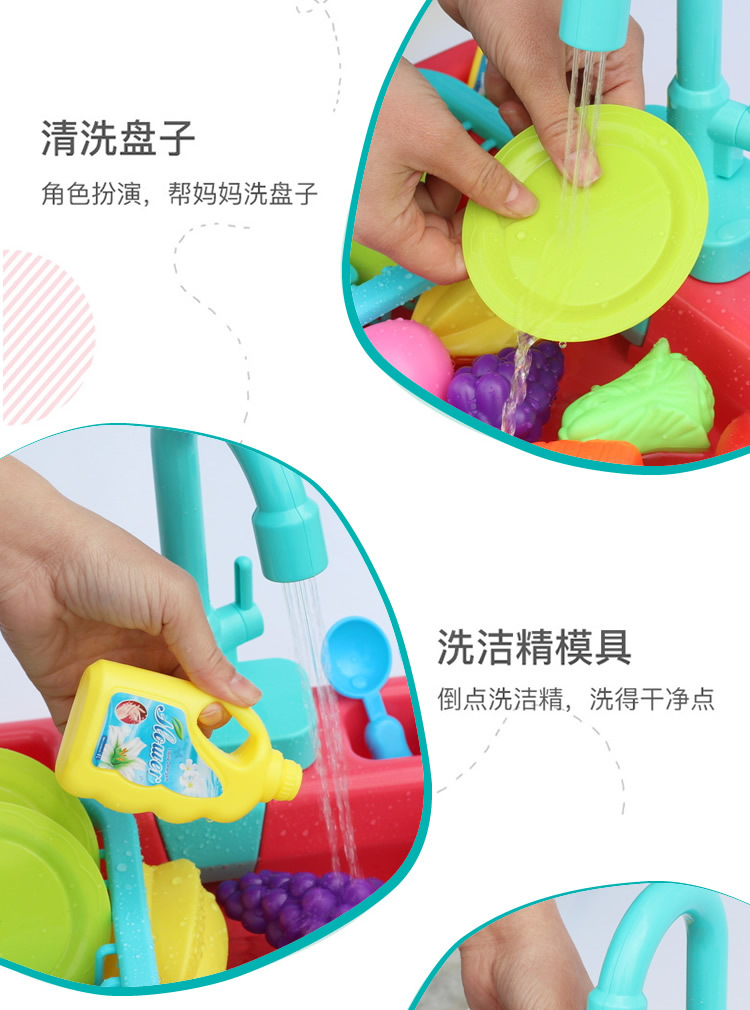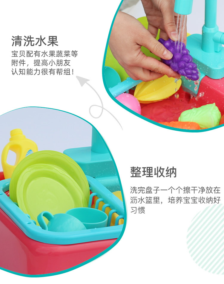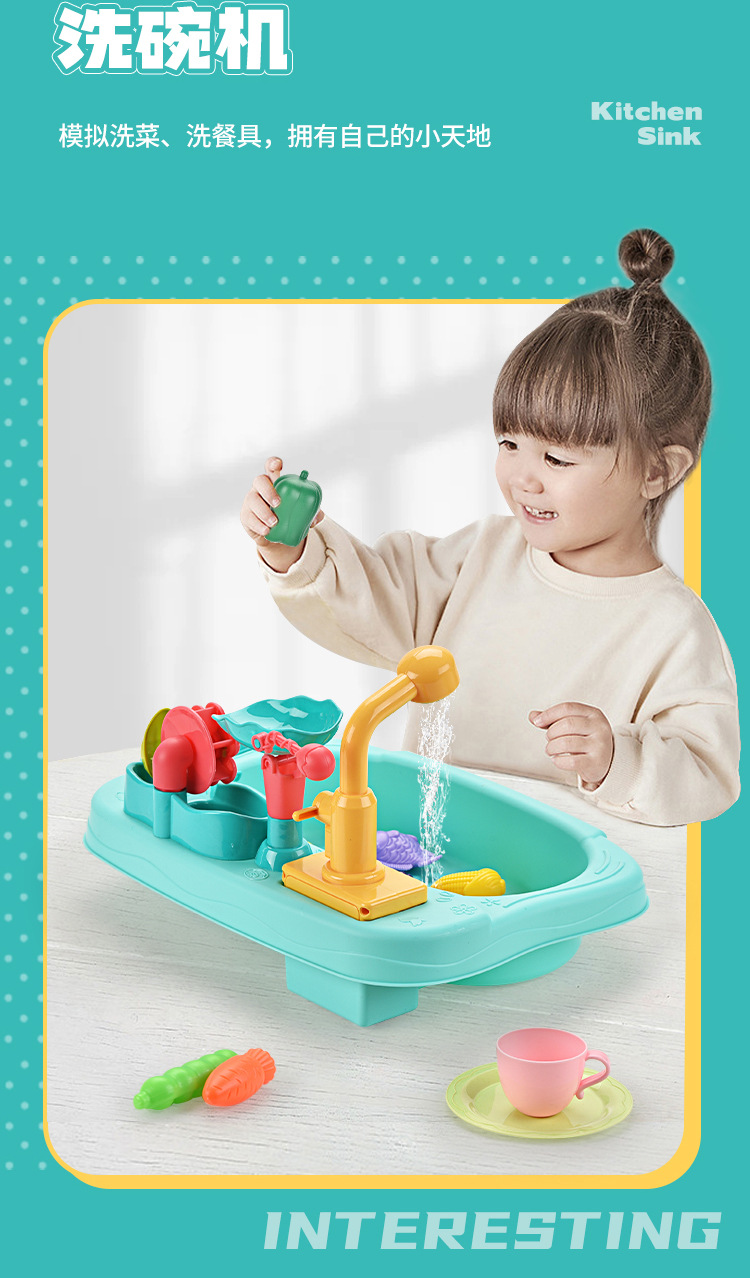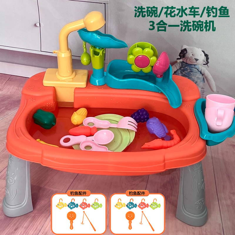 새로운 어린이 전기 식기 세척기 꽃 물 카트 세척 수영장 자동 순환 수도꼭지 아기 낚시 놀이 물스토어 가기