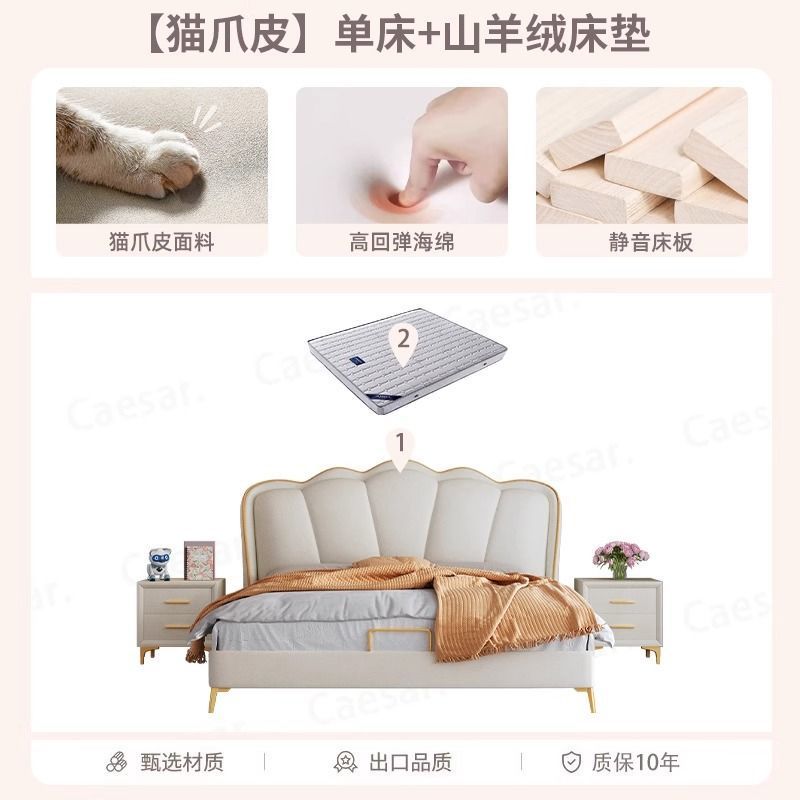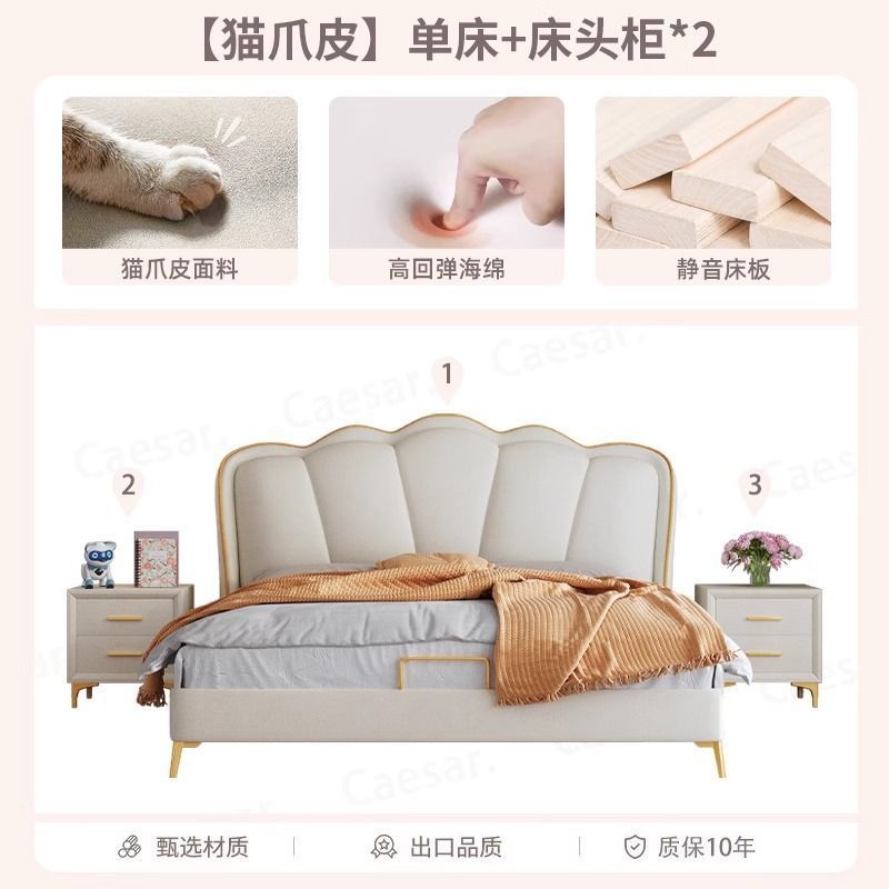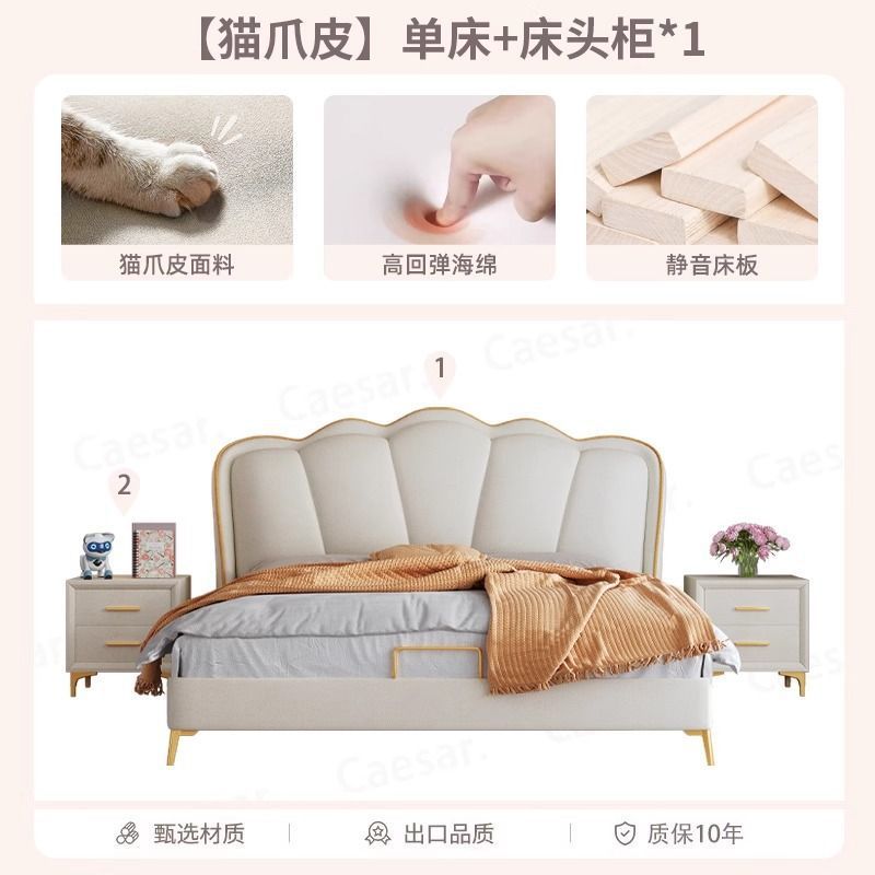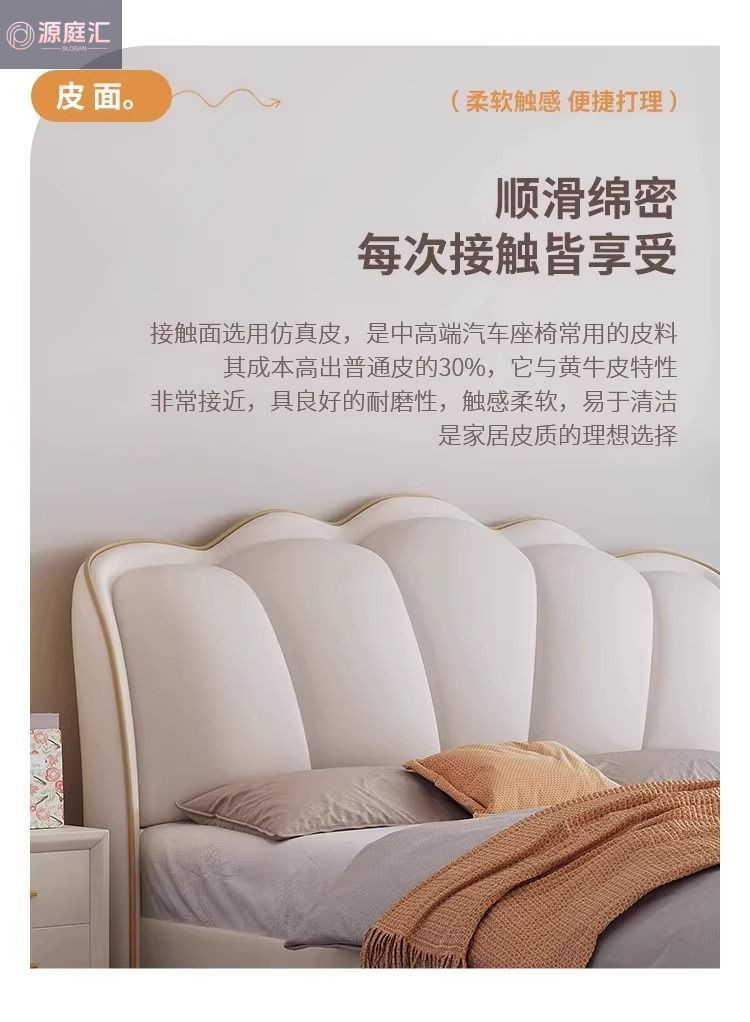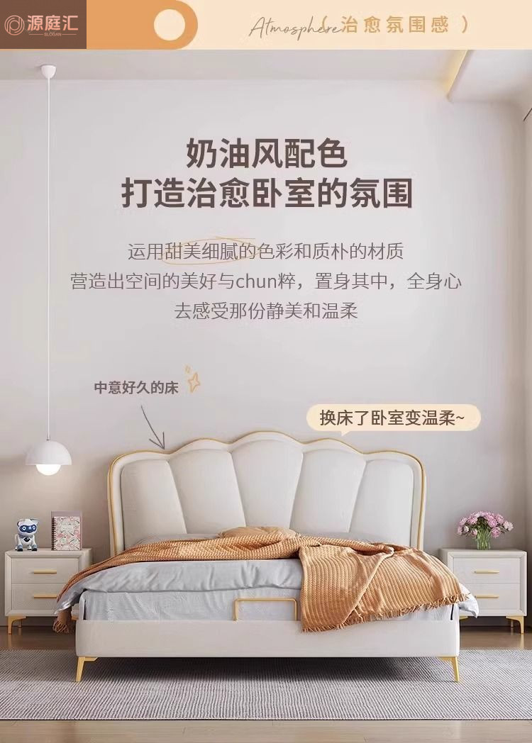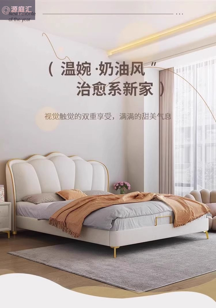 床家用卧室浪漫轻奢皮艺床奶油风高级感花瓣小红书爆款公主床家具