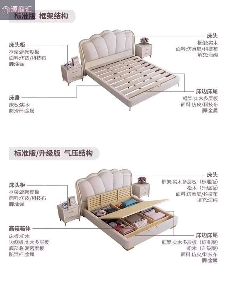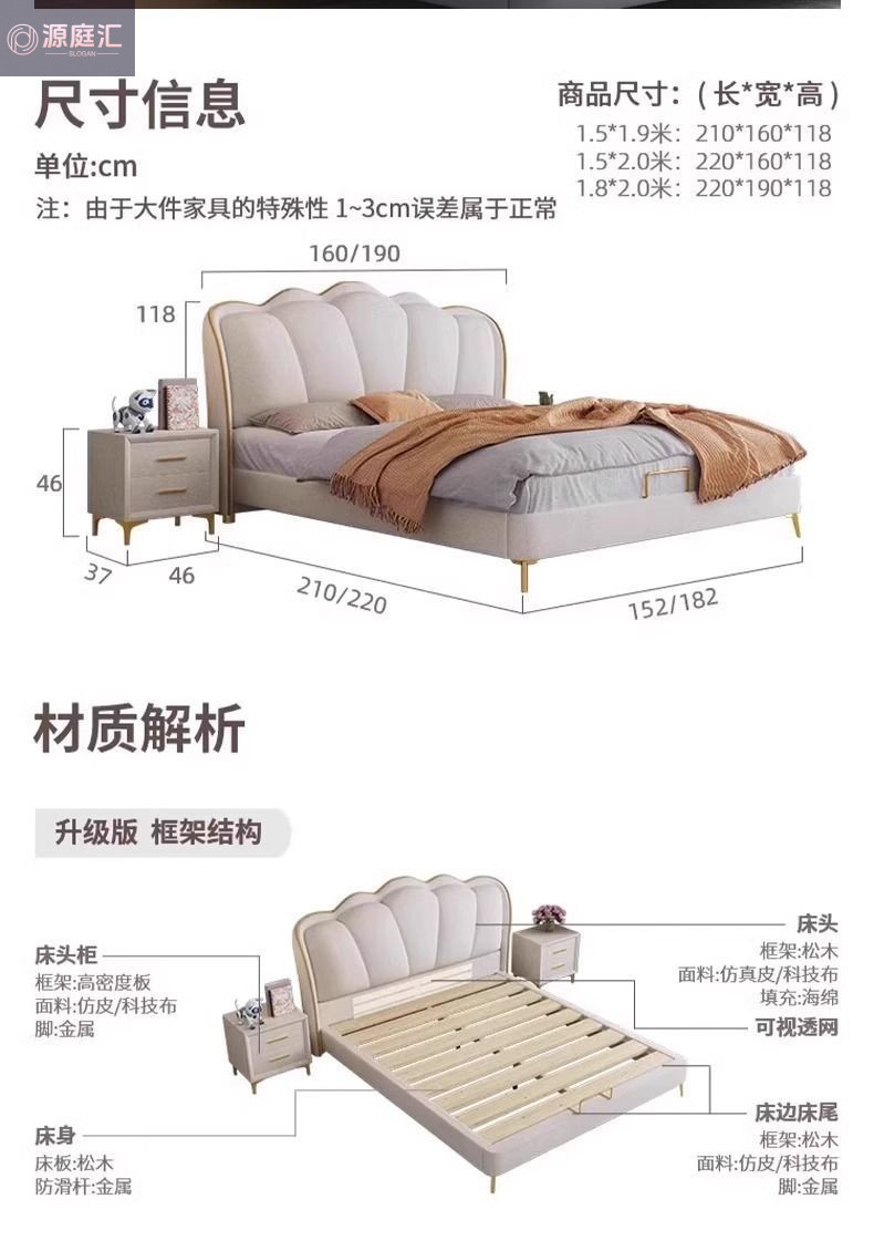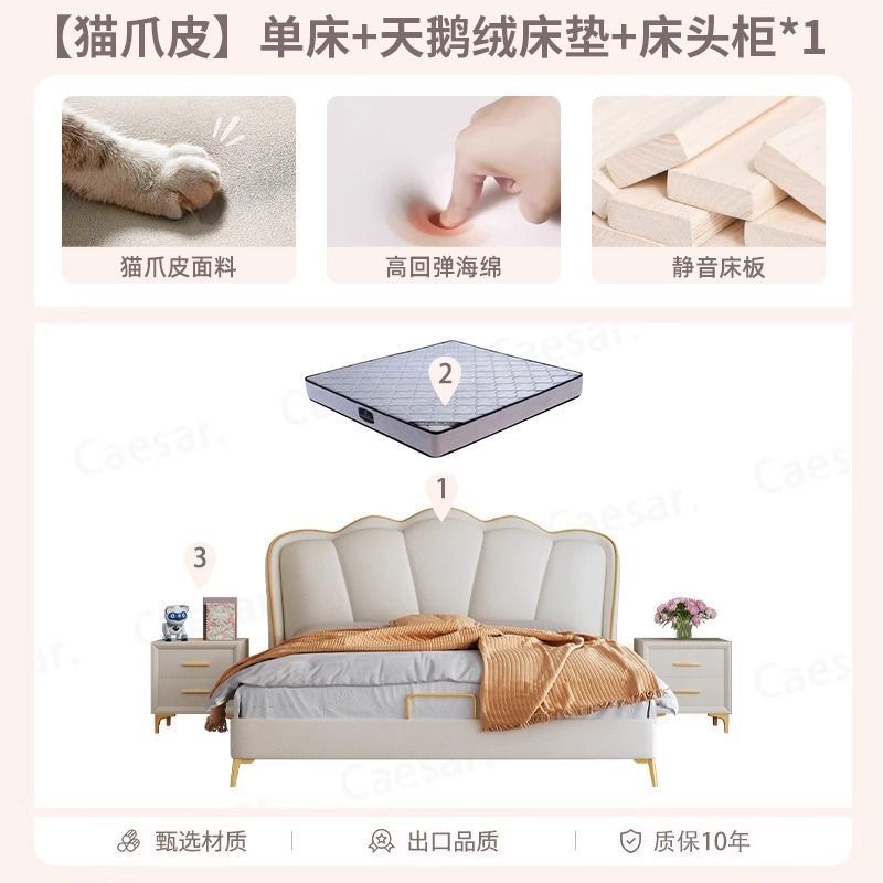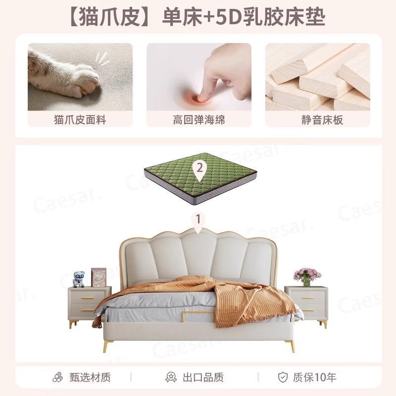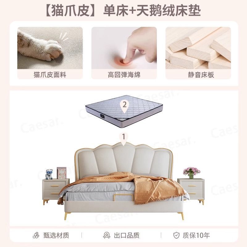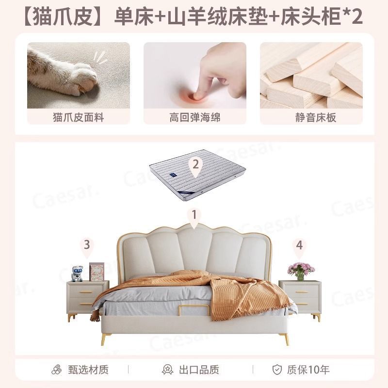 床家用卧室浪漫轻奢皮艺床奶油风高级感花瓣小红书爆款公主床家具