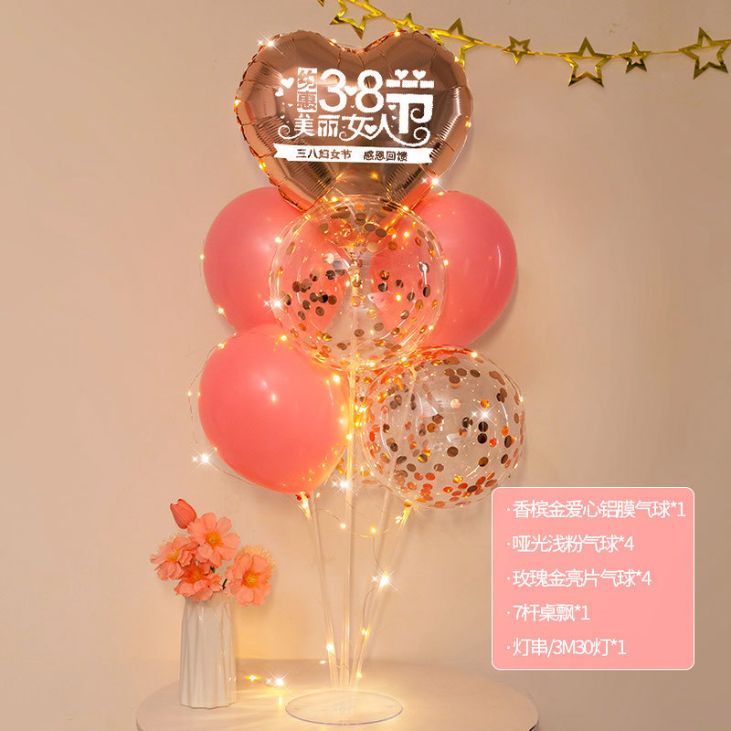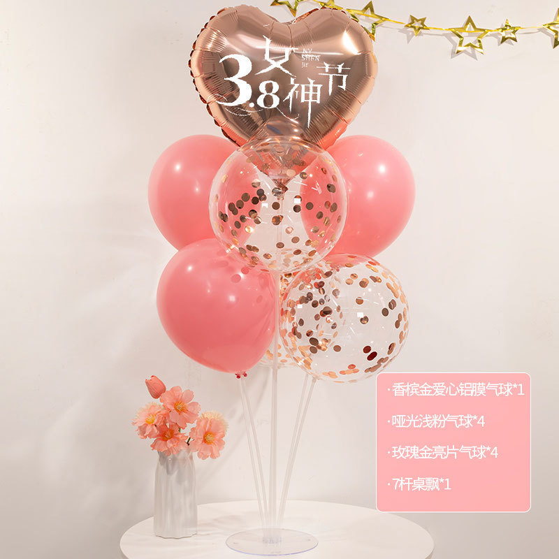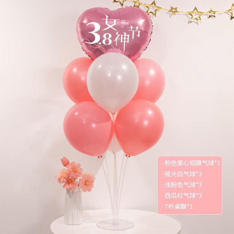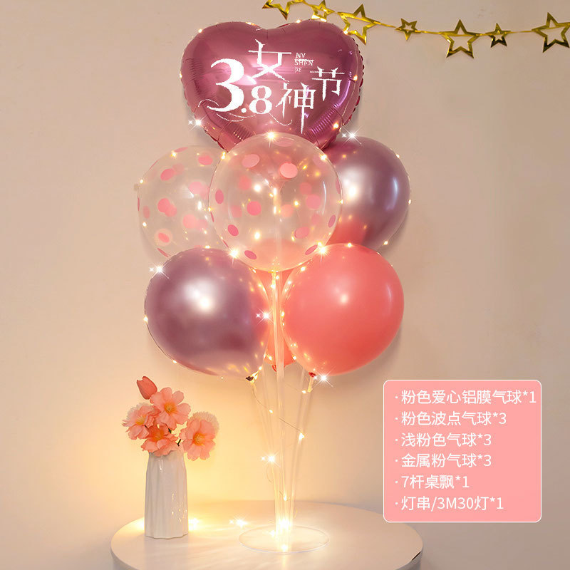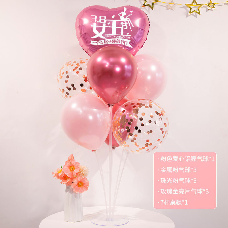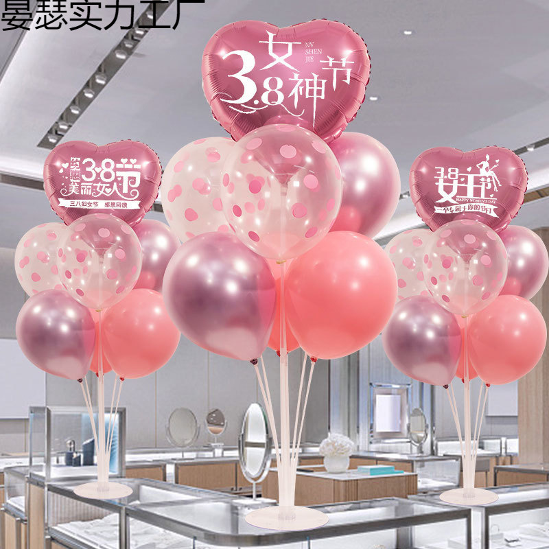 3 월 38 일 여신 축제 장식 풍선 테이블 주얼리 숍 쇼핑몰 사랑 핑크 여성 활동 장면 레이아웃