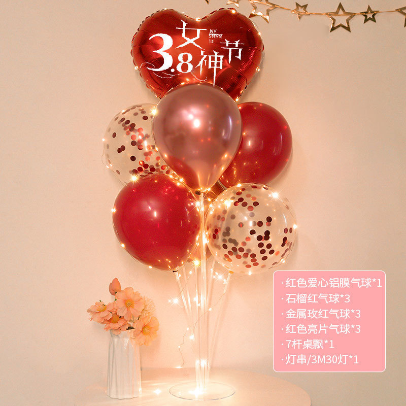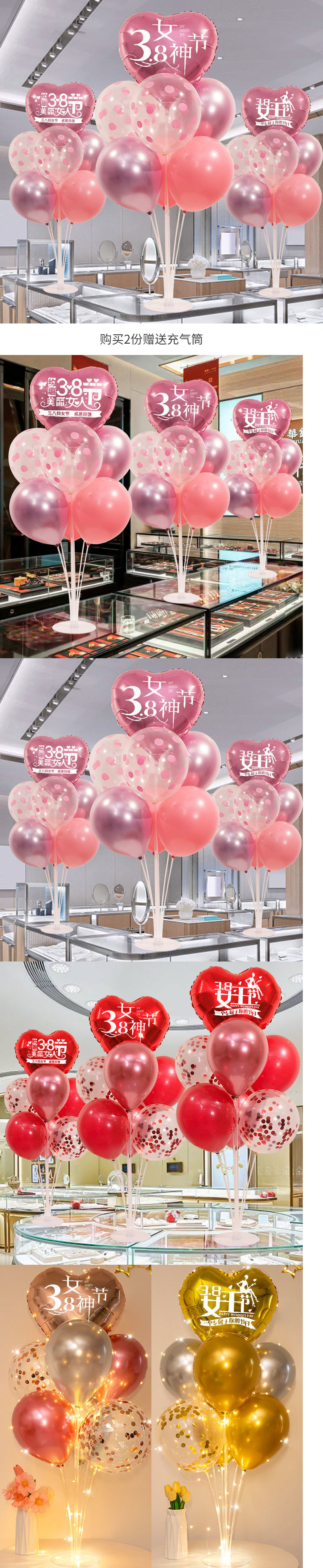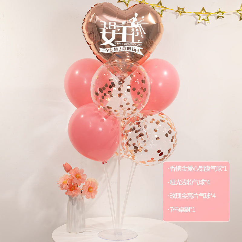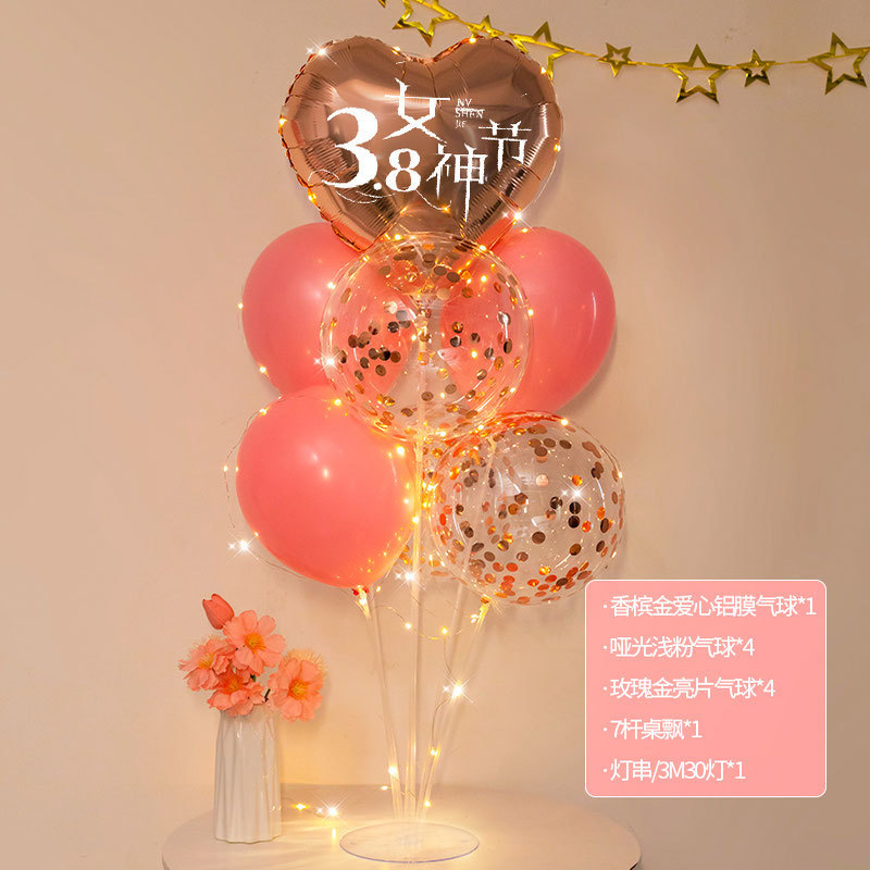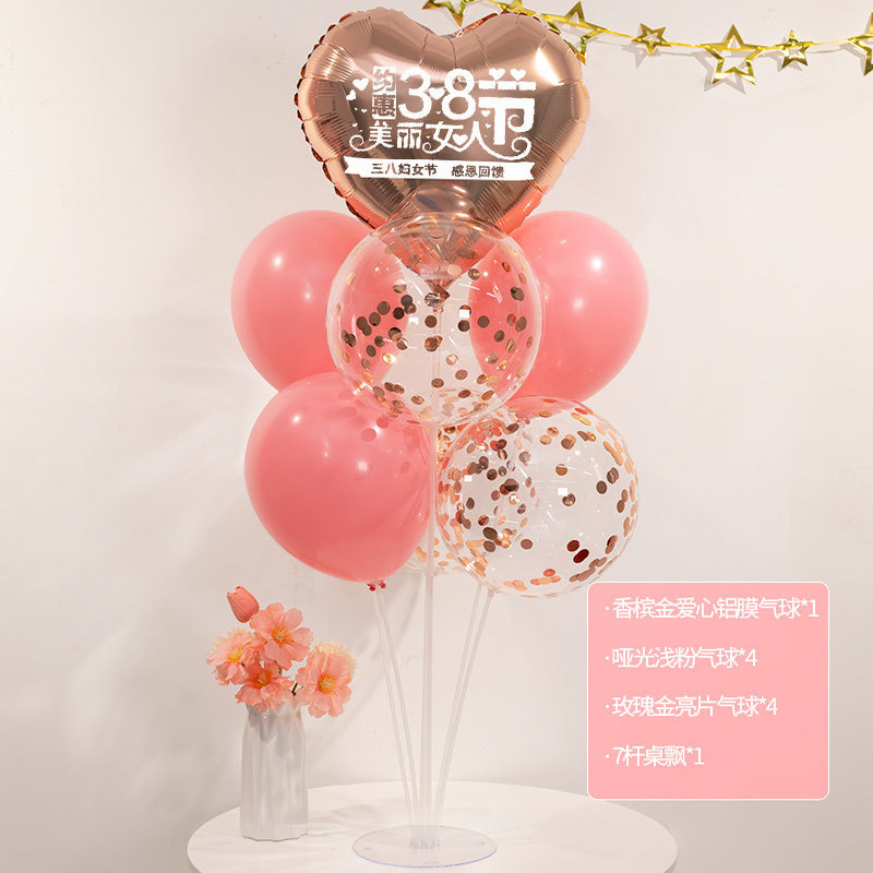 3 월 38 일 여신 축제 장식 풍선 테이블 주얼리 숍 쇼핑몰 사랑 핑크 여성 활동 장면 레이아웃