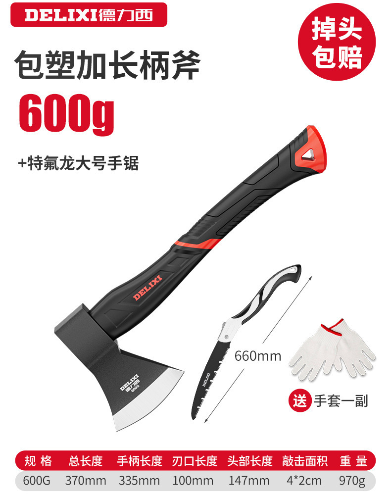 • [산업용 확장 핸들] 플라스틱 코팅 도끼 600G + 테프론 대형 톱(장갑 + 가장자리 보호 커버 포함)