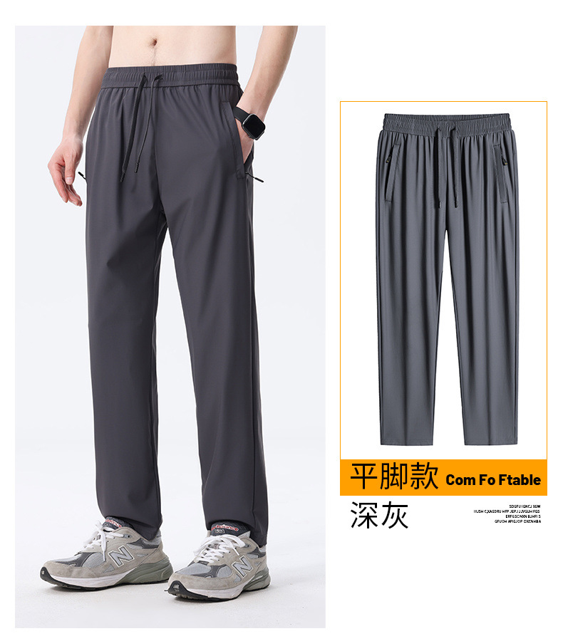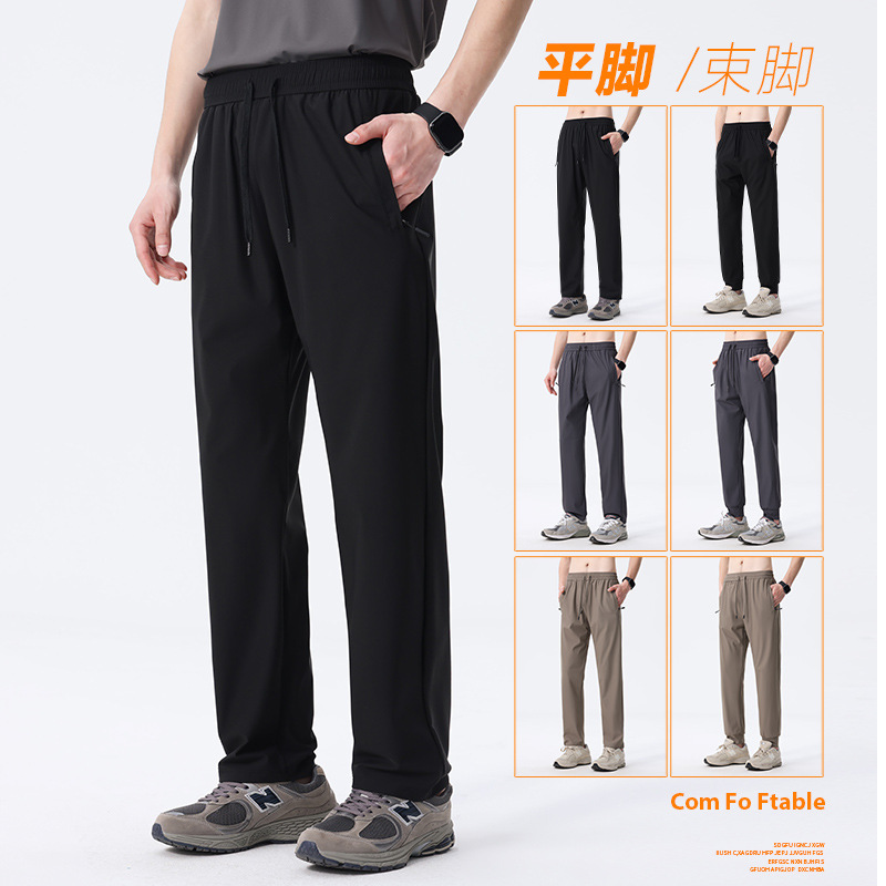 아이스 실크 바지 남자 2025 여름 새로운 남자 패션 스트레이트 남자 바지 플러스 사이즈 빠른 건조 스포츠 캐주얼 바지
