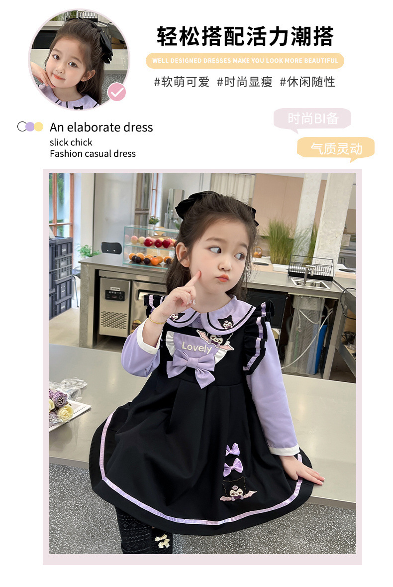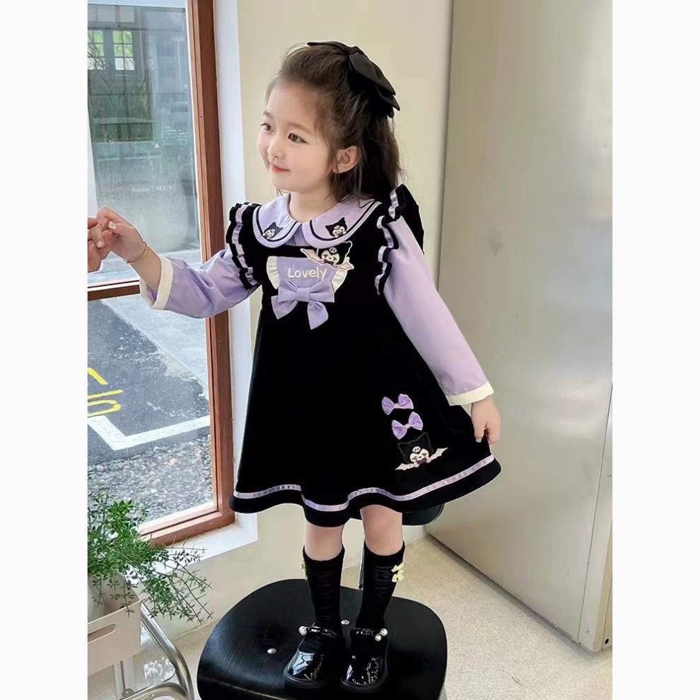[2461 컬렉션] 여자 봄과 가을 가닥 치마 세트 긴 소매 원피스 새로운 아기 소녀 귀여운 달콤한스토어 가기