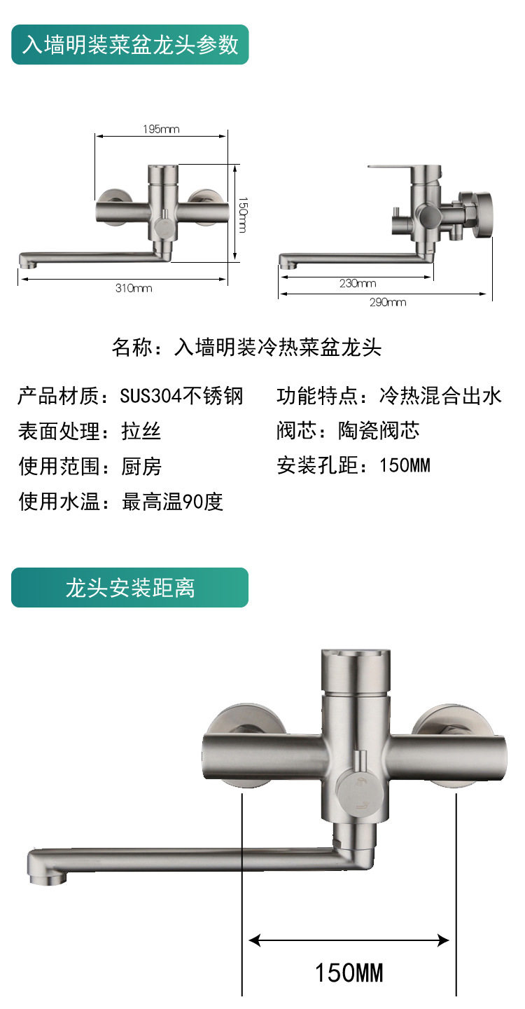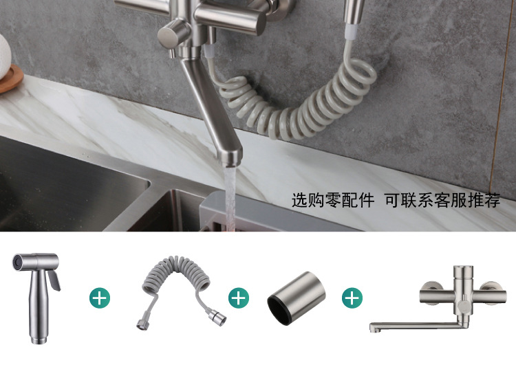 ✅주방 수도꼭지 304 스테인레스 스틸 망원경 수도꼭지 차갑고 뜨거운 야채 세척 분지 이중 구멍 벽 스플래쉬 방지 용스토어 가기