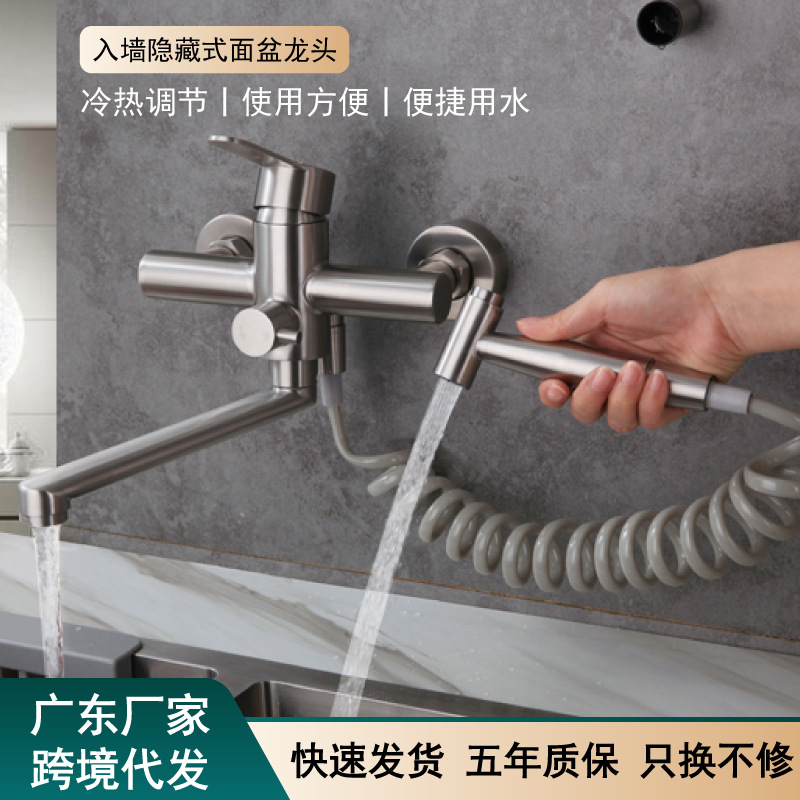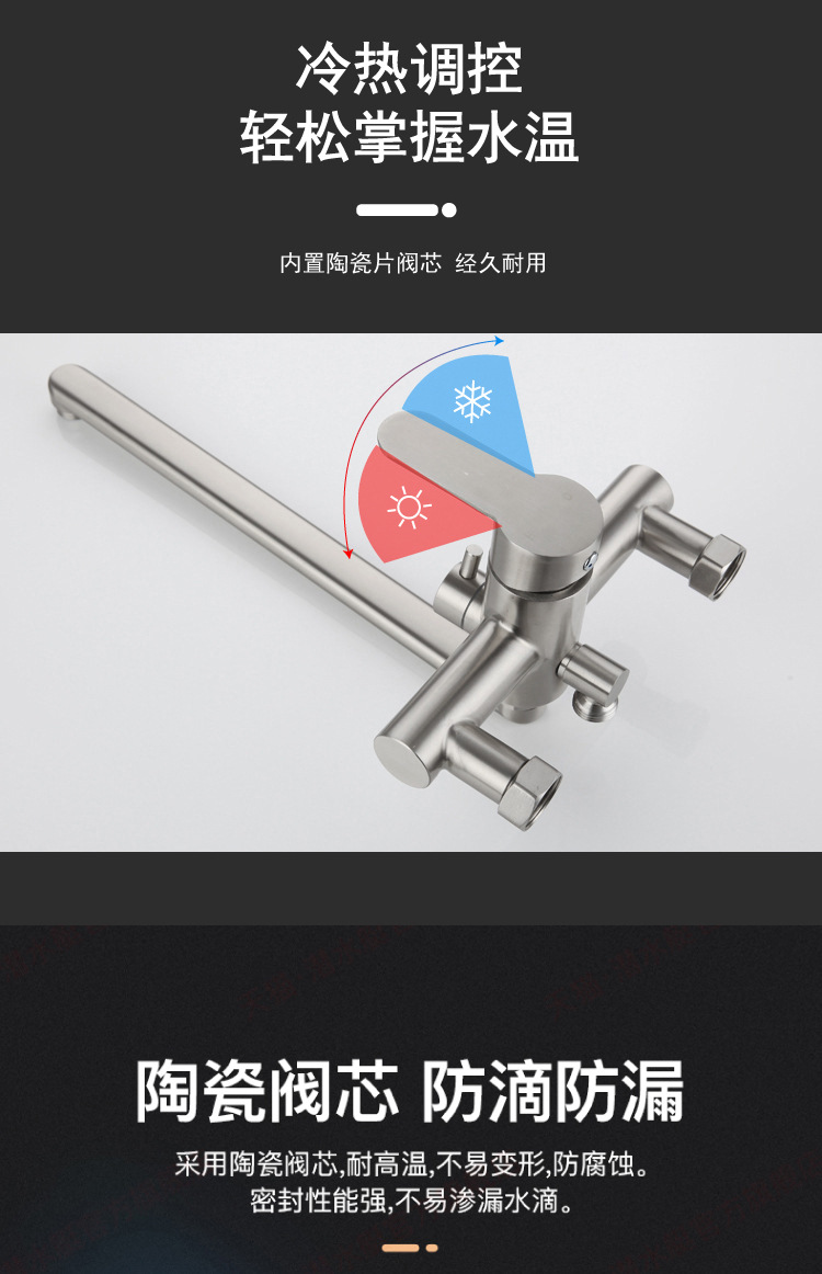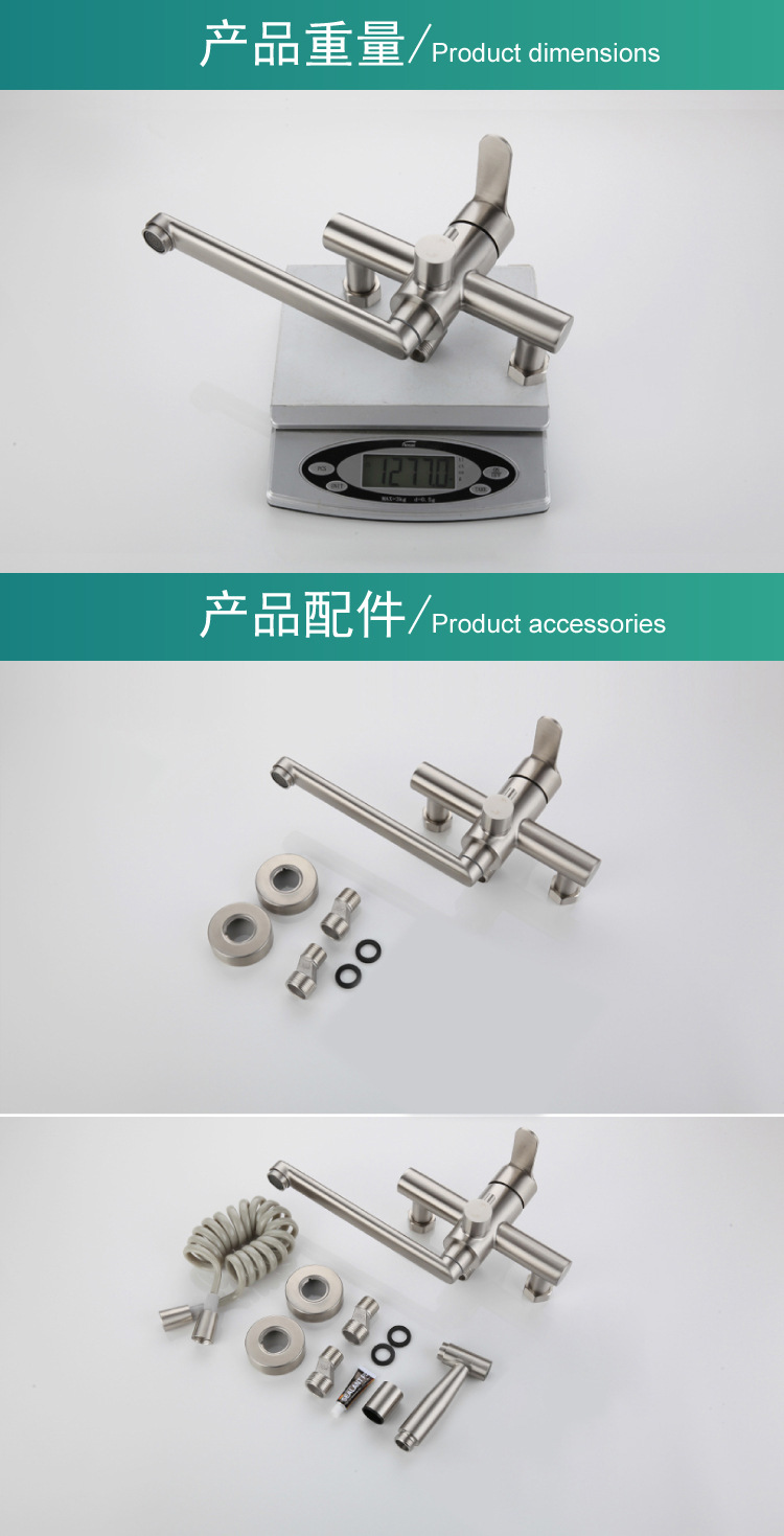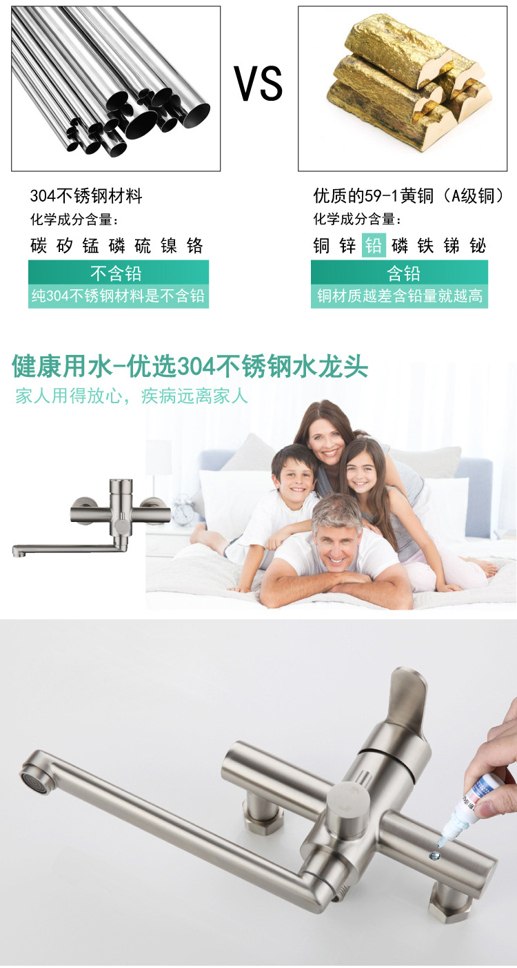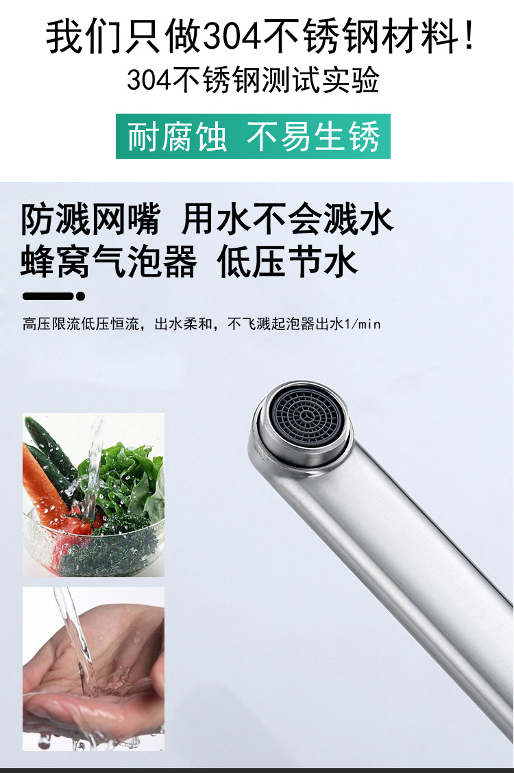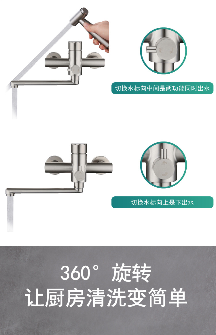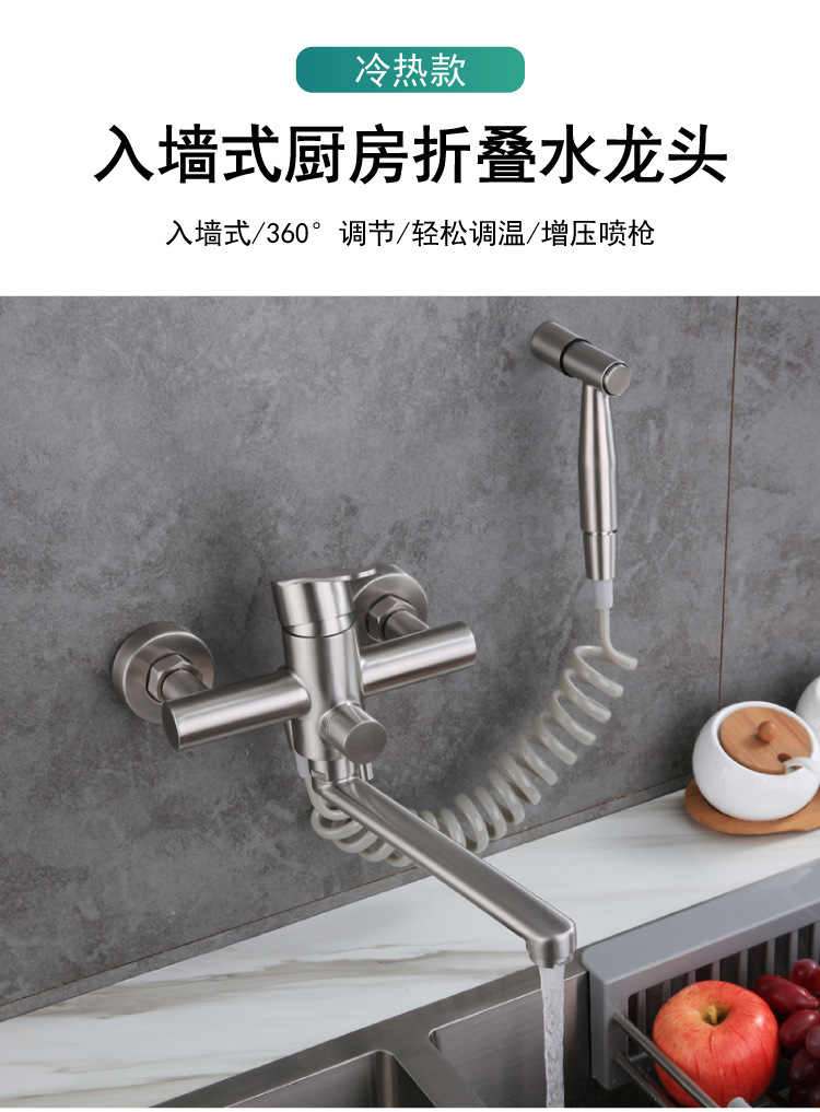 ✅주방 수도꼭지 304 스테인레스 스틸 망원경 수도꼭지 차갑고 뜨거운 야채 세척 분지 이중 구멍 벽 스플래쉬 방지 용
