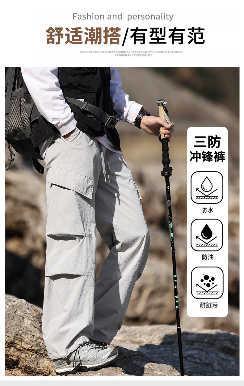 美式伞兵休闲裤子男款2025新款户外防水工装百搭宽松阔腿直筒长裤스토어 가기