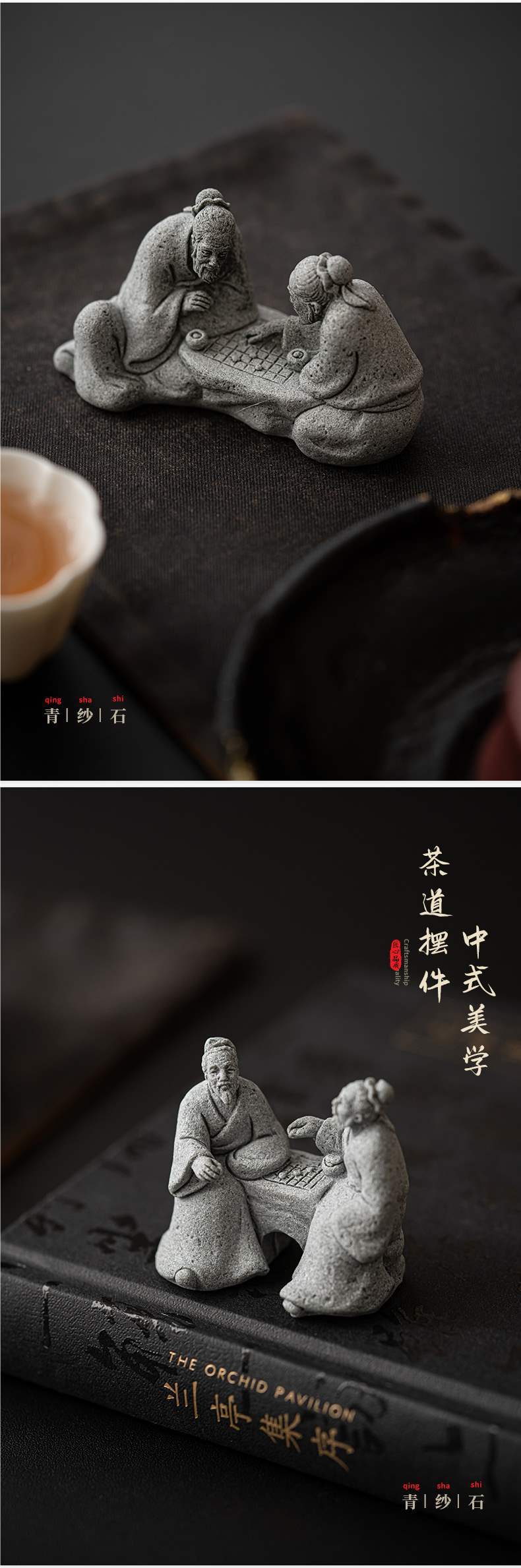 더블 체스 노인 작은 장식품 분재 캐릭터 체스 세이지 물고기 탱크 풍경 낚시 Weng 가짜 산 수경 어부 장식품