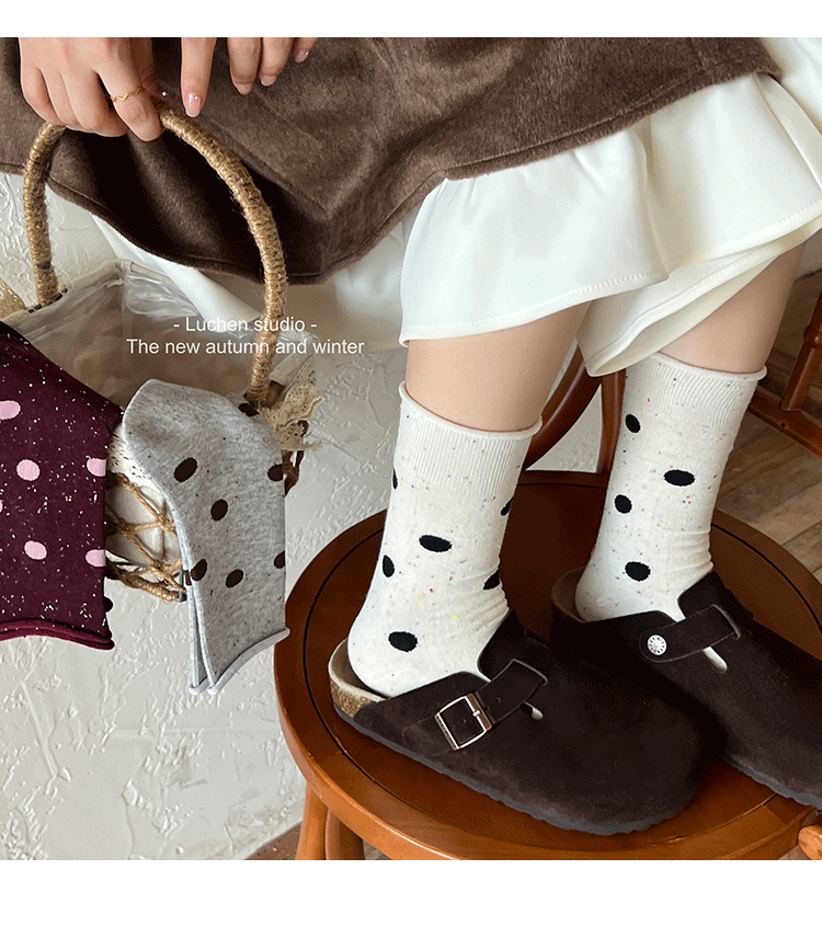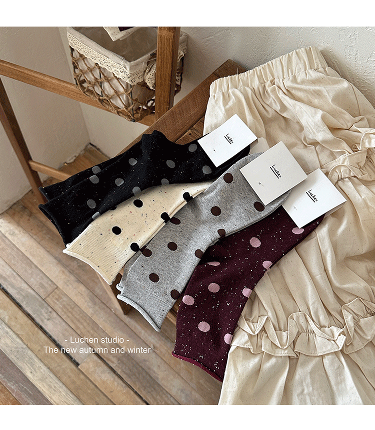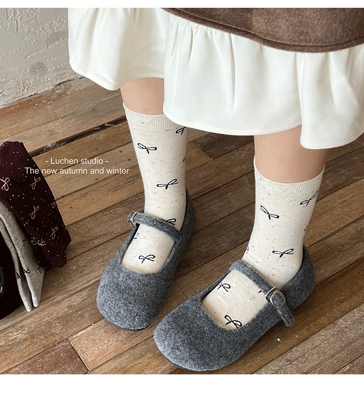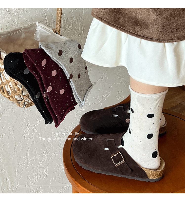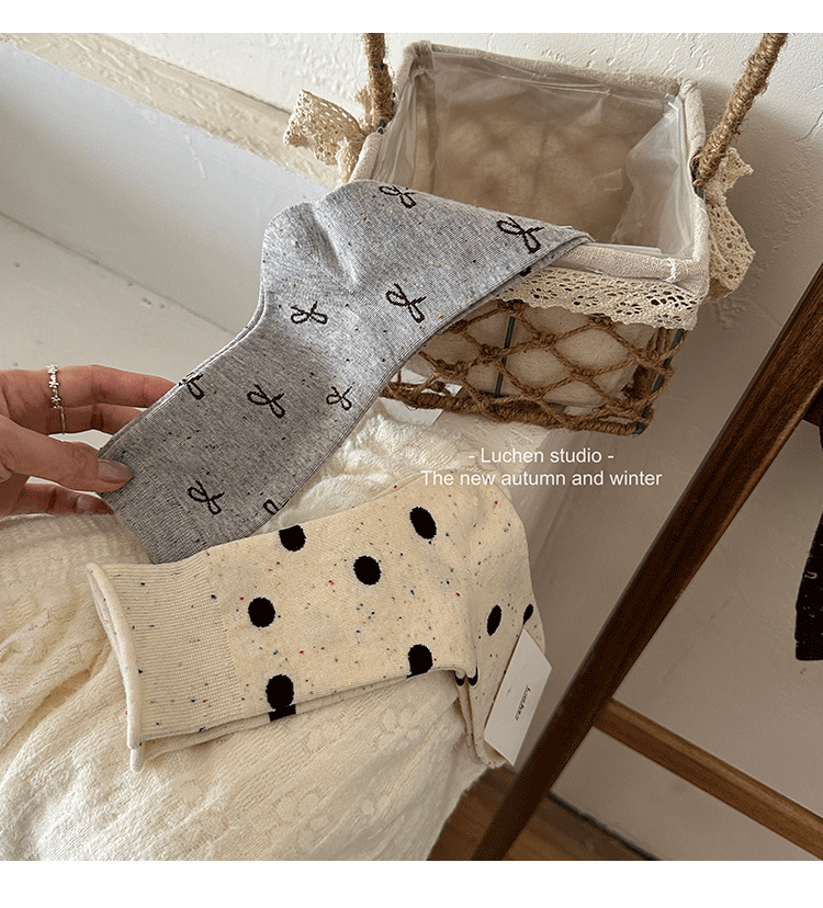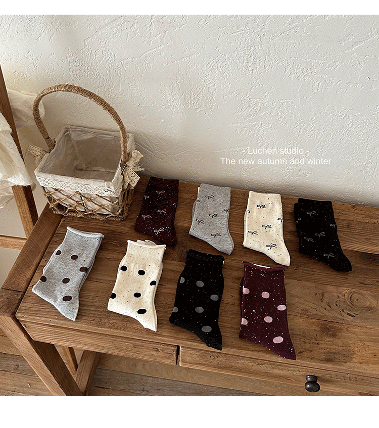 가을 분위기 "bowknot 포인트 원사 뼈없는 양말 어린이 양말 가을과 겨울 폴카 도트 한국인엔 더미 양말