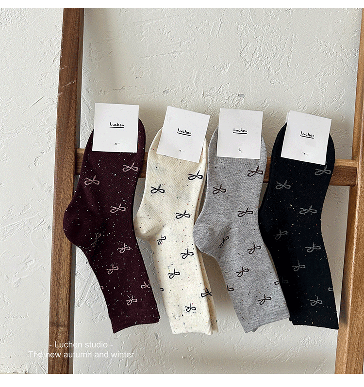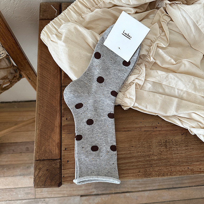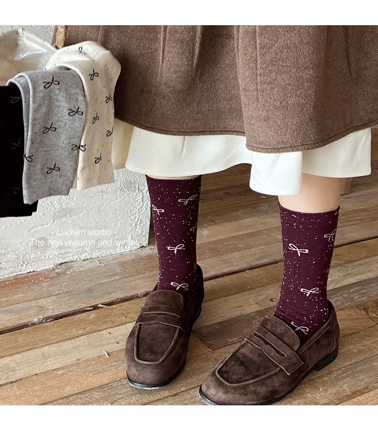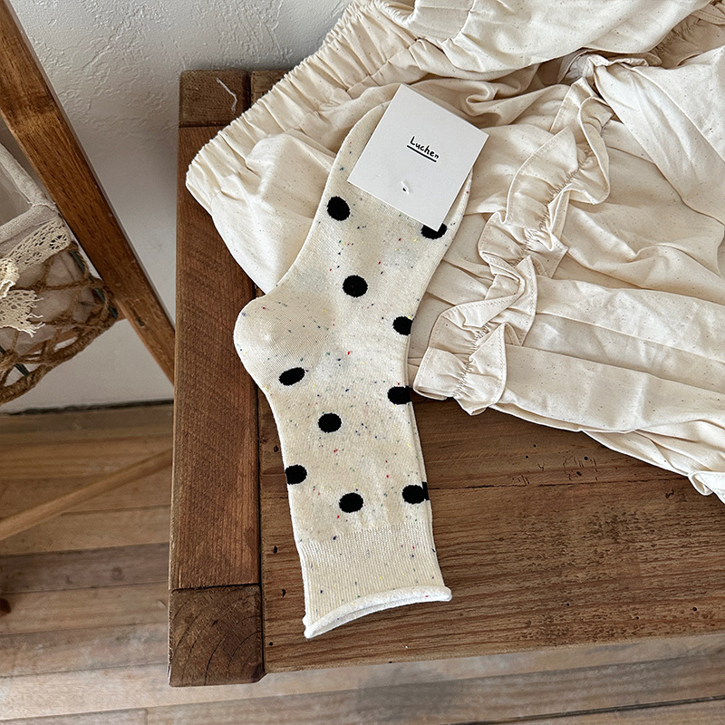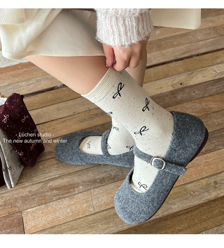 가을 분위기 "bowknot 포인트 원사 뼈없는 양말 어린이 양말 가을과 겨울 폴카 도트 한국인엔 더미 양말