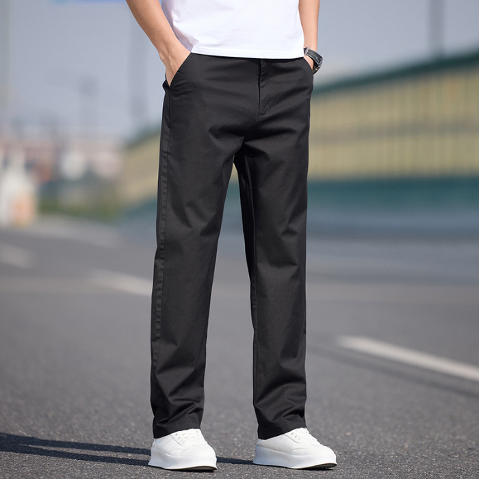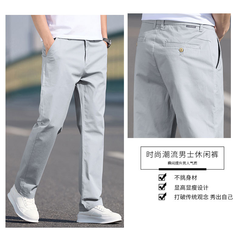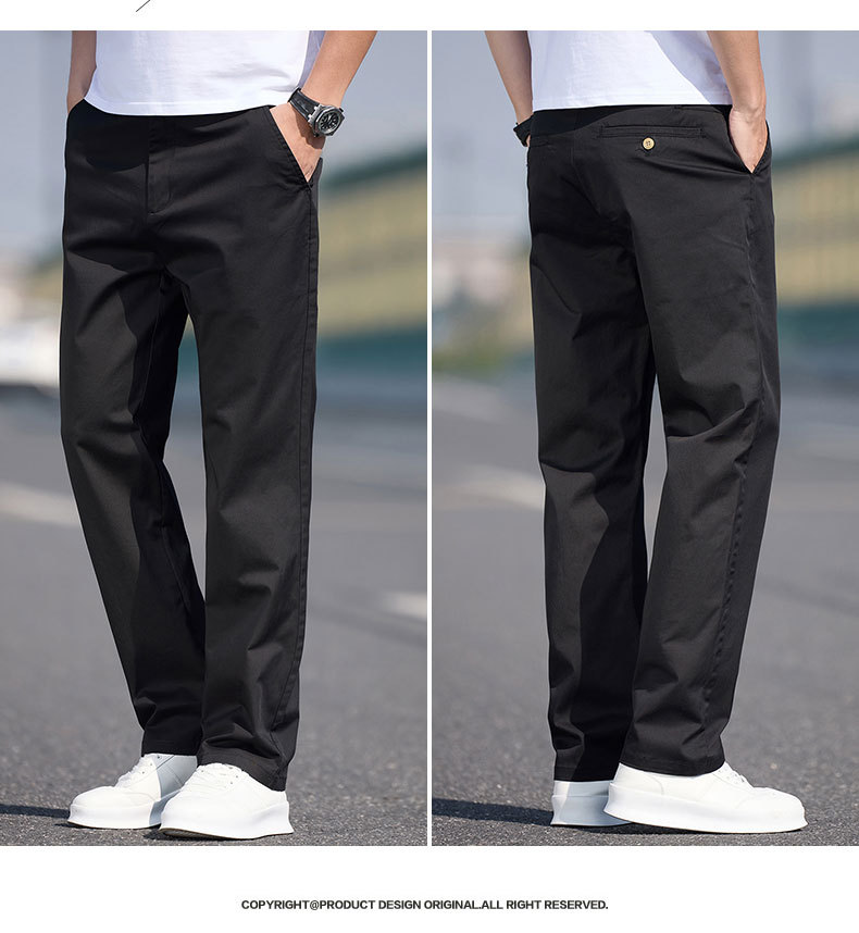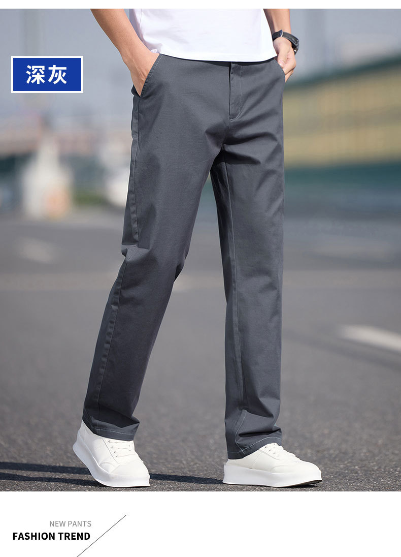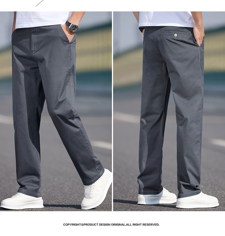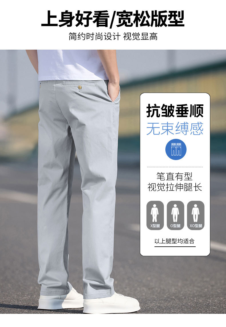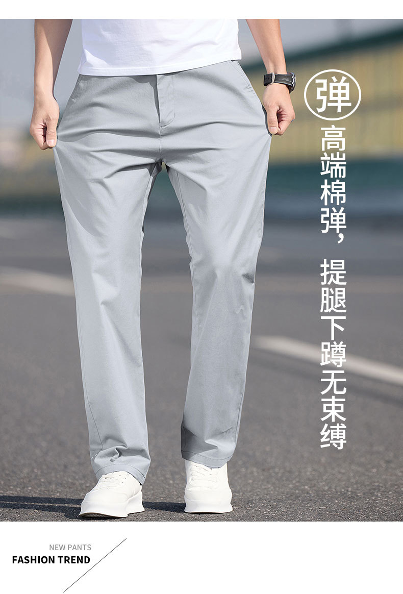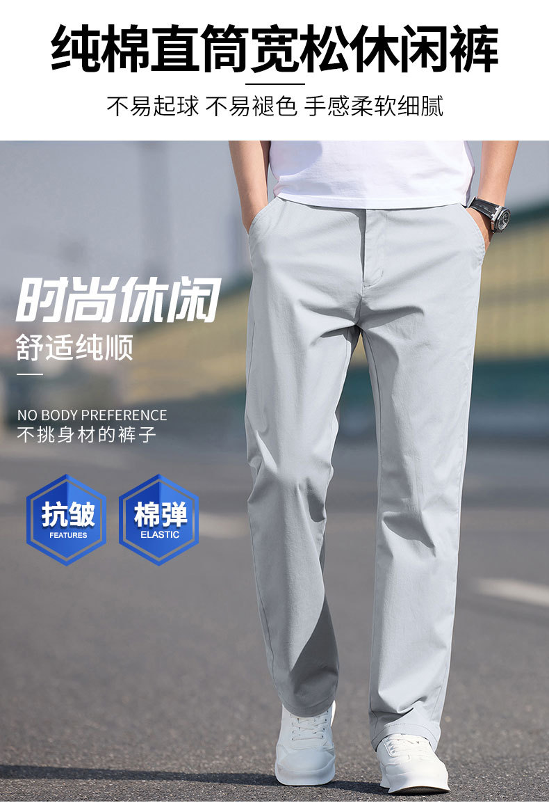느슨한 스트레이트 캐주얼 바지 남자 얇은 올매치 2025 새로운 하이 엔드 코튼 탄성 간단한 패션 긴 바지 남자스토어 가기