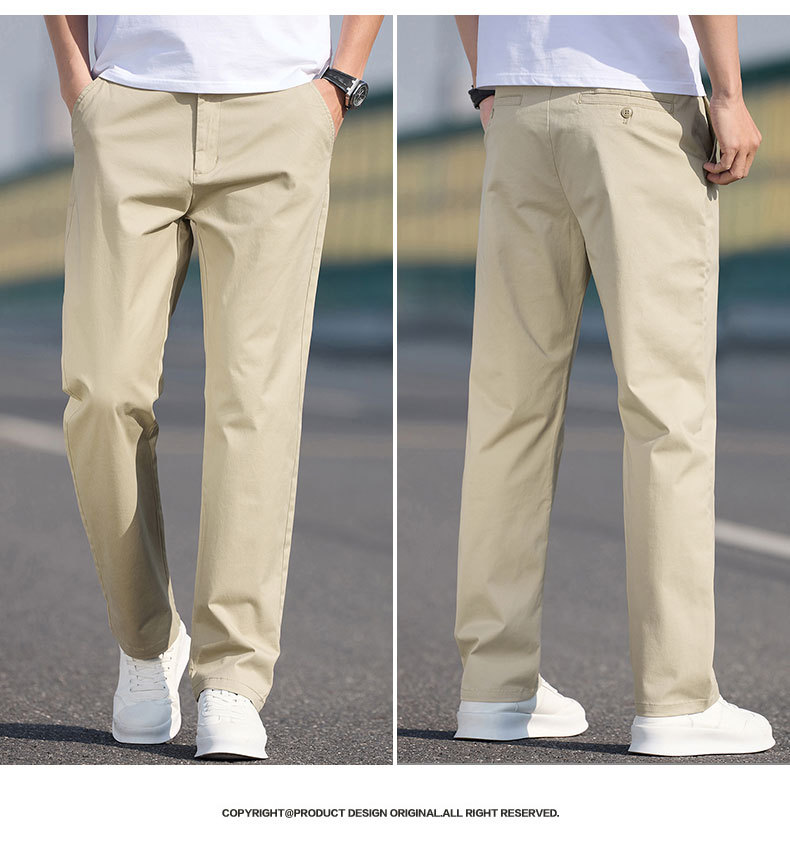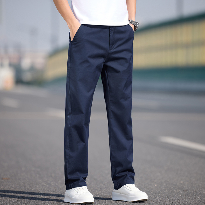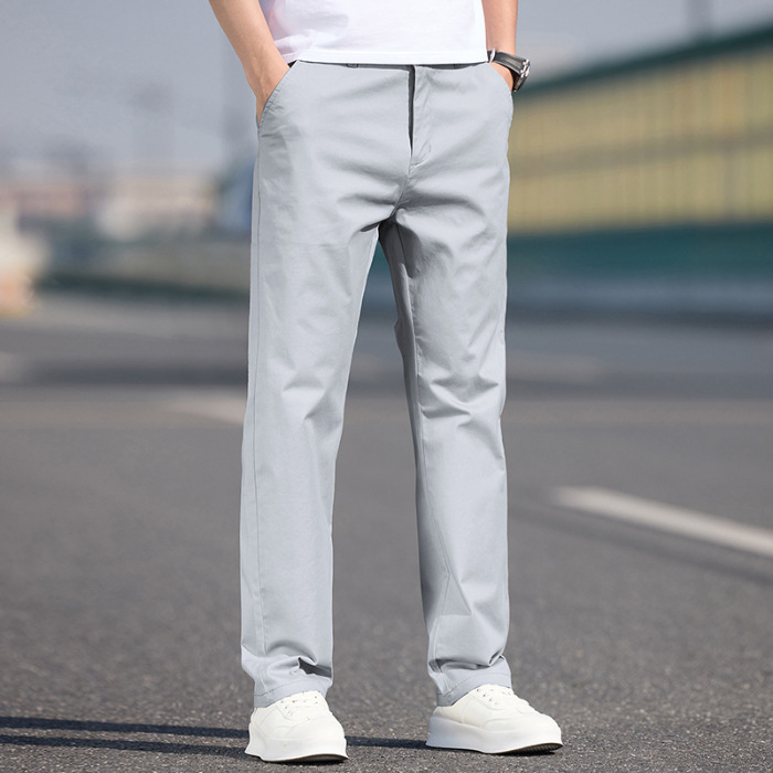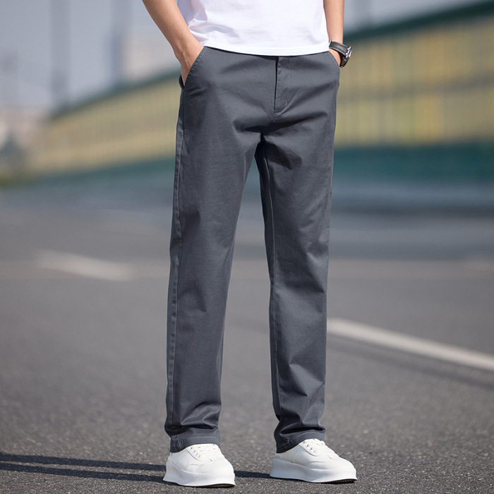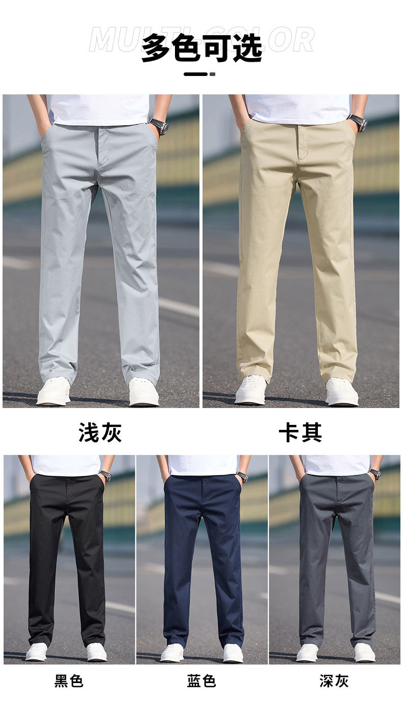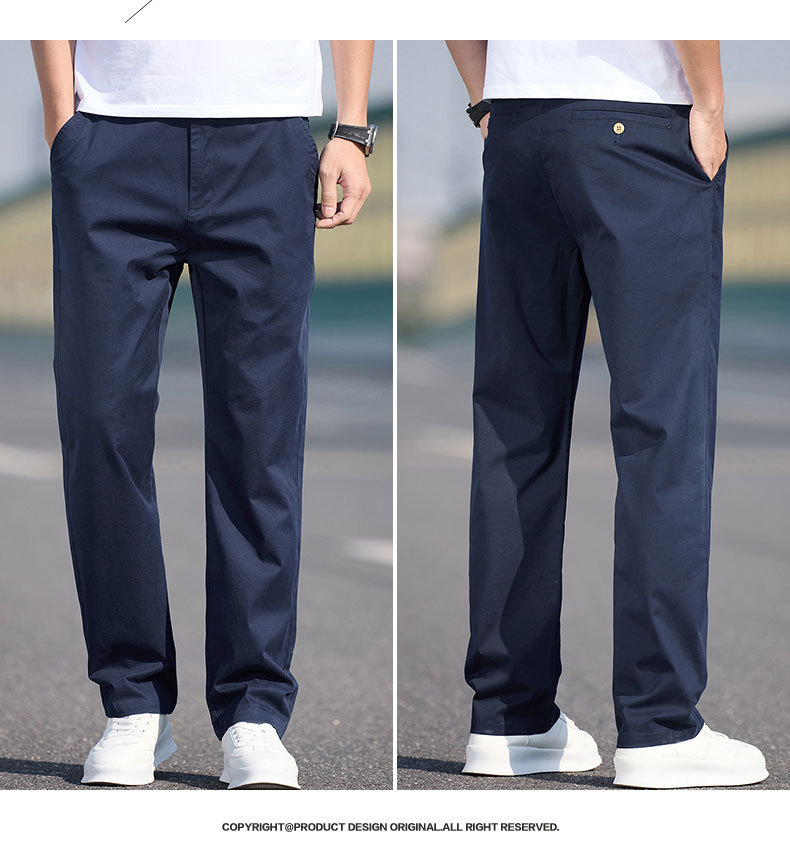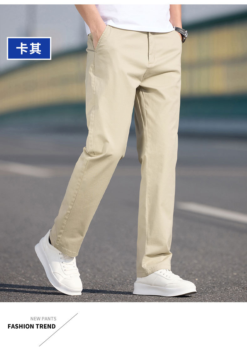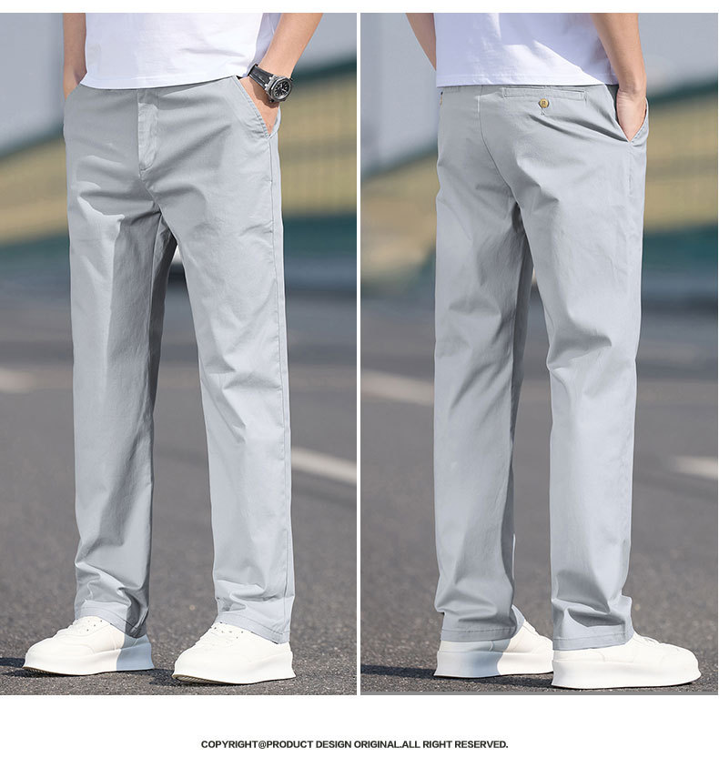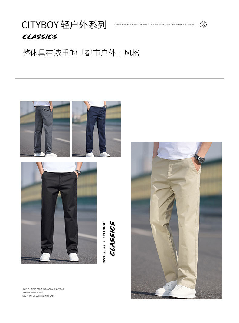 느슨한 스트레이트 캐주얼 바지 남자 얇은 올매치 2025 새로운 하이 엔드 코튼 탄성 간단한 패션 긴 바지 남자스토어 가기