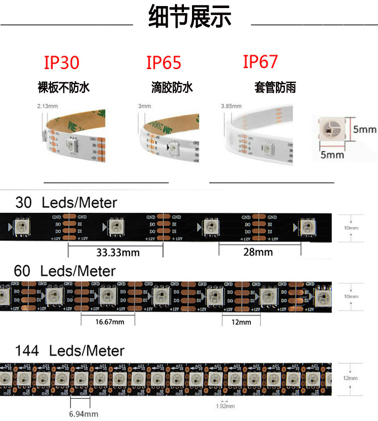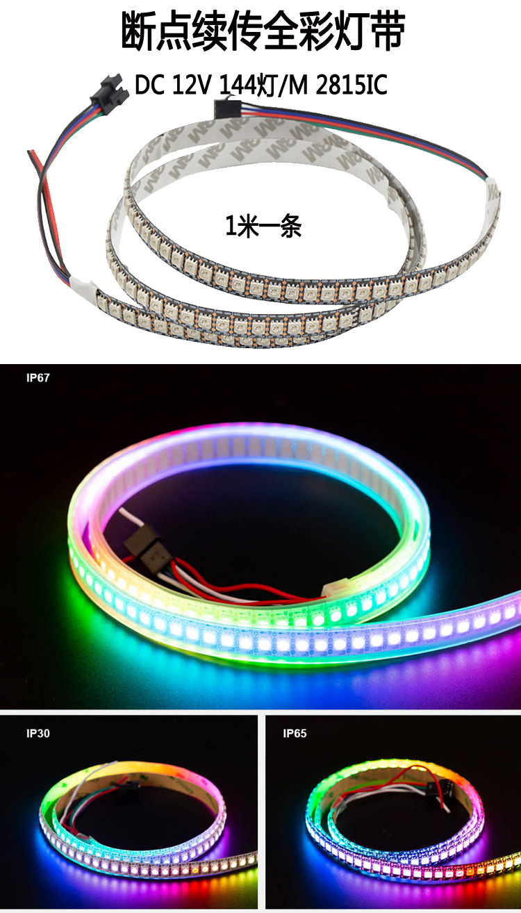 풀 컬러 144 램프 WS2815 매직 컬러 LED 스트립 12V 내장 IC 브레이크 포인트 5050RGB 단일 포인트 단일 제어스토어 가기