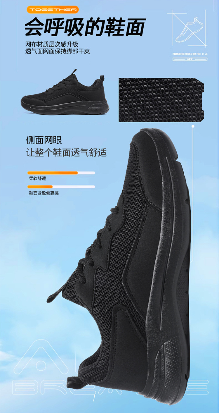 올 블랙 운동화 남성 2025 메쉬 통기성 순수 블랙 런닝 슈즈 캐주얼 소프트 단독 작업 슈즈 플러스 사이즈 대외 무역 48스토어 가기