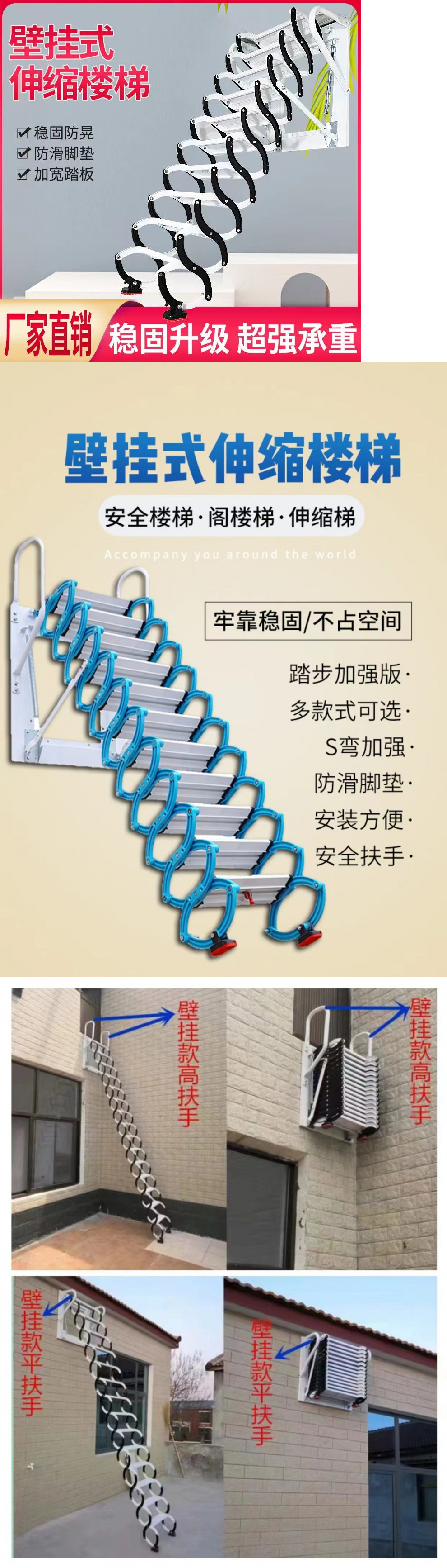접이식 스트레치 접이식 사다리 텔레스코픽 계단 로프트 벽 매달려 간단한 계단 높이 야외스토어 가기