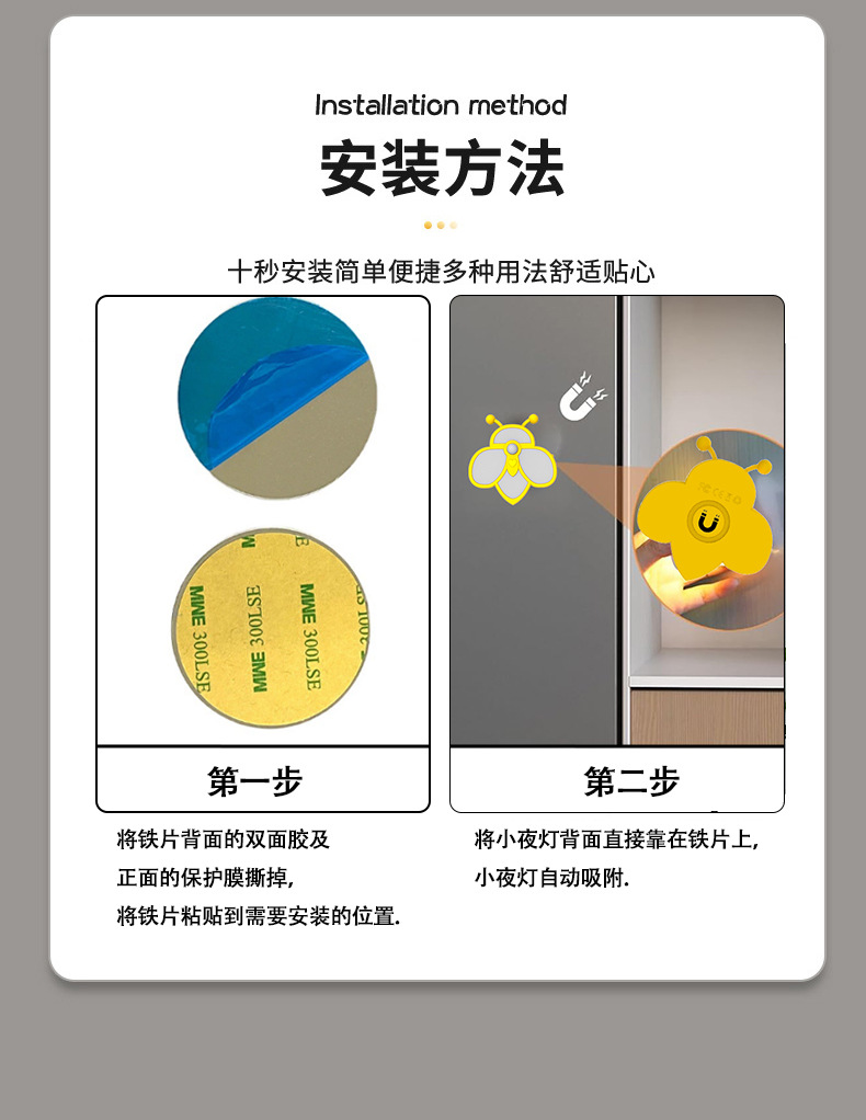 신제품 밤 인체 자동 유도 꿀벌 밤 빛 자기 흡수 가구 멀리 침실 침실 아기 수유 램프