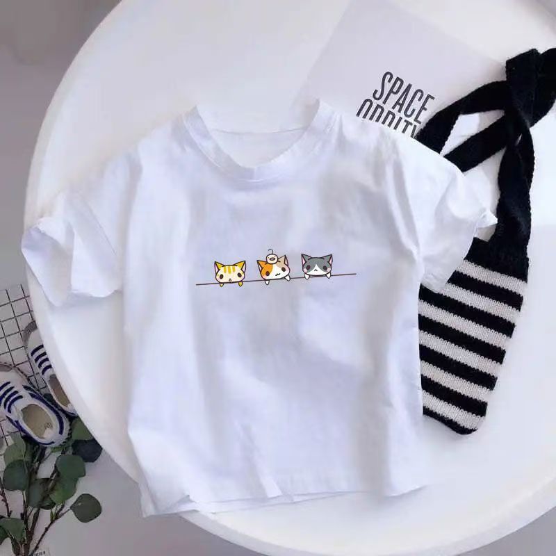 2025 여름 슈퍼 소프트 코튼 인 반팔 티셔츠 소년 소녀 아동복 탑 여름 새로운 어린이 만화 인쇄스토어 가기