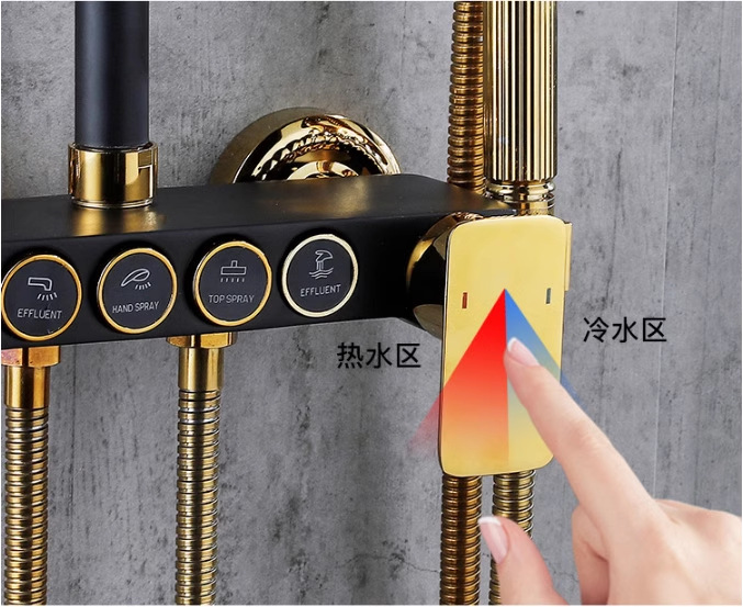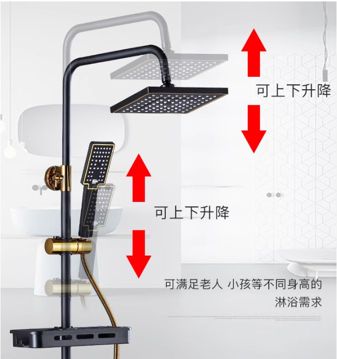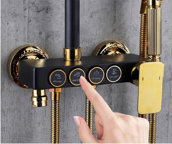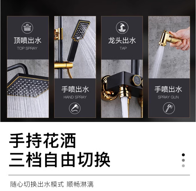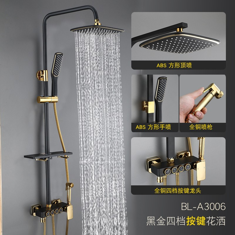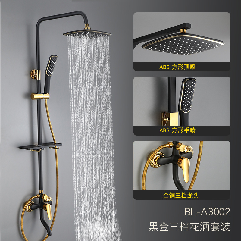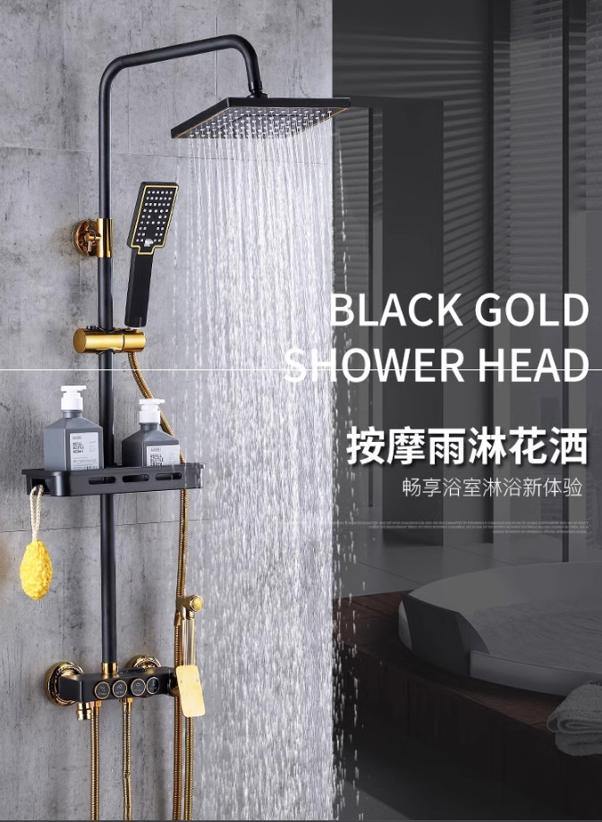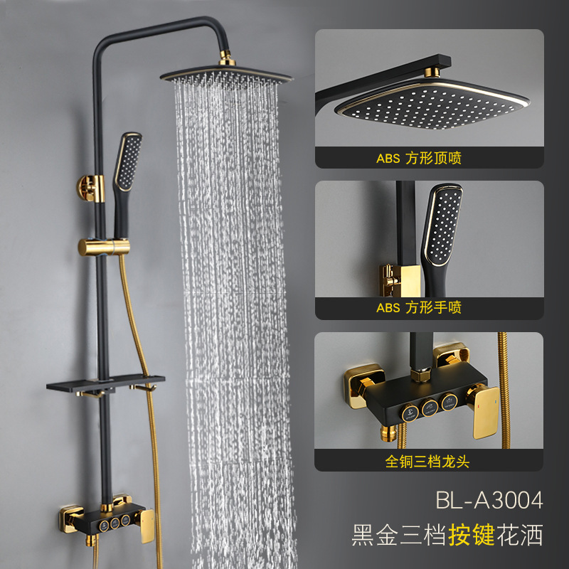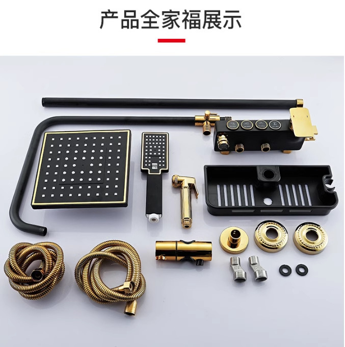 대외 무역 블랙 골드 샤워 샤워 세트 욕실 압력 샤워 일정 온도 좋은 구리 샤워 노즐 도매스토어 가기