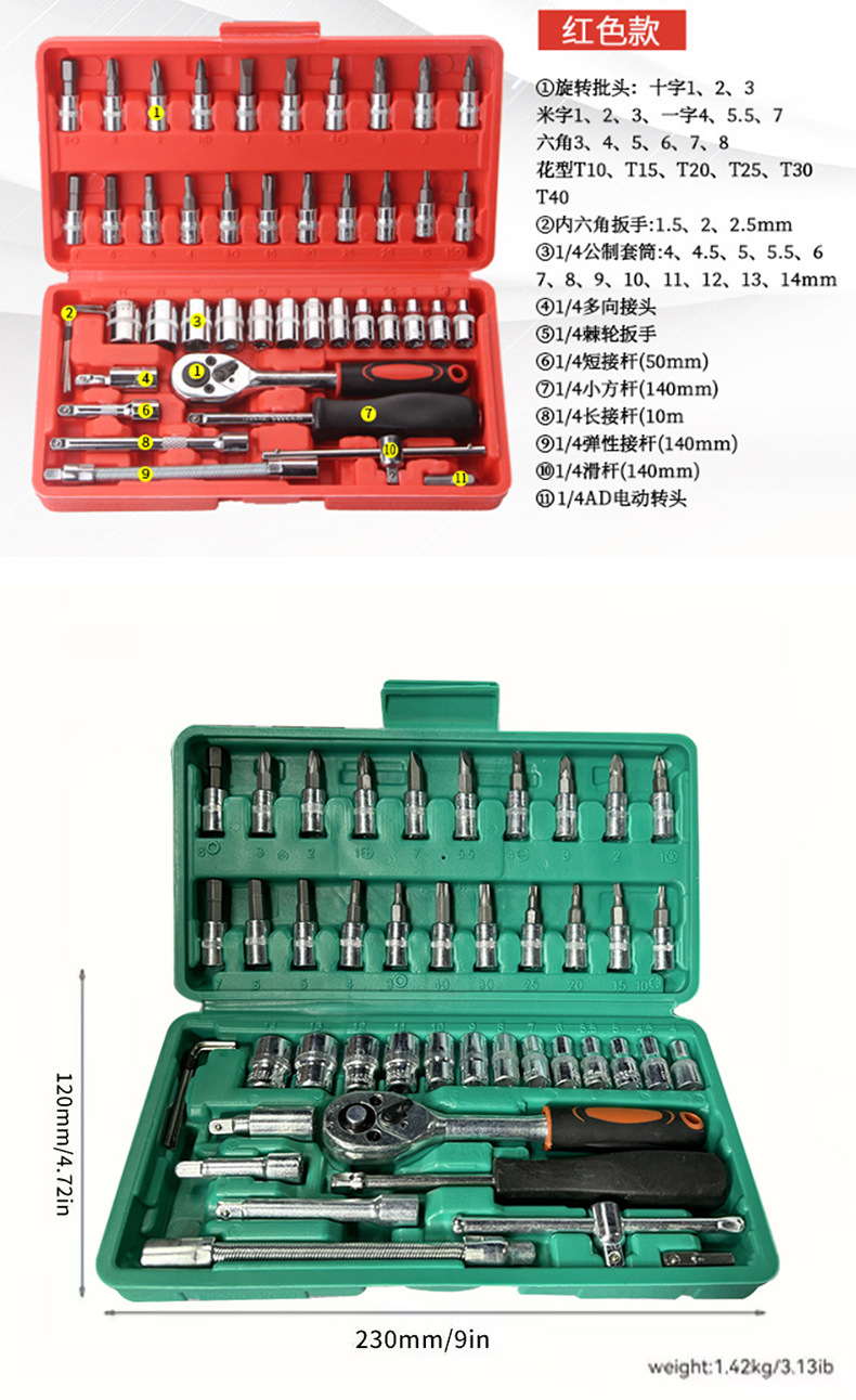 자동차 및 오토바이 헤드 조합 가정용 수리 도구를 세트 46 피스 래칫 슬리브 하드웨어 도구스토어 가기