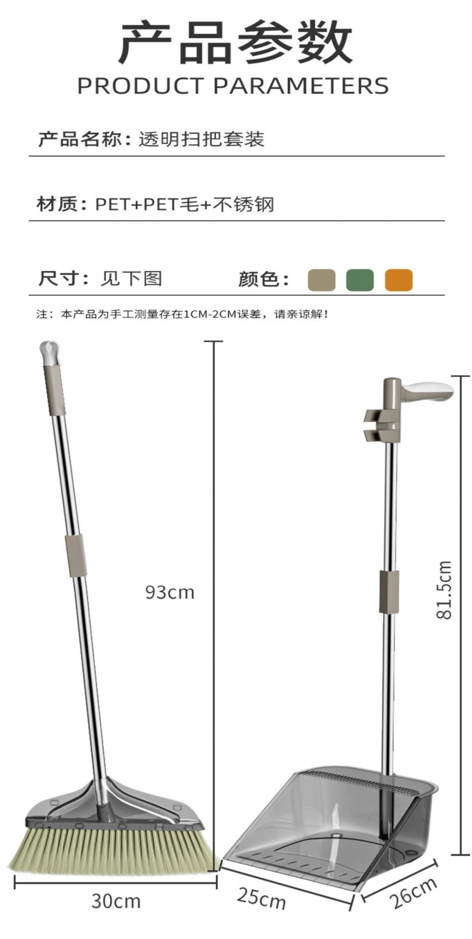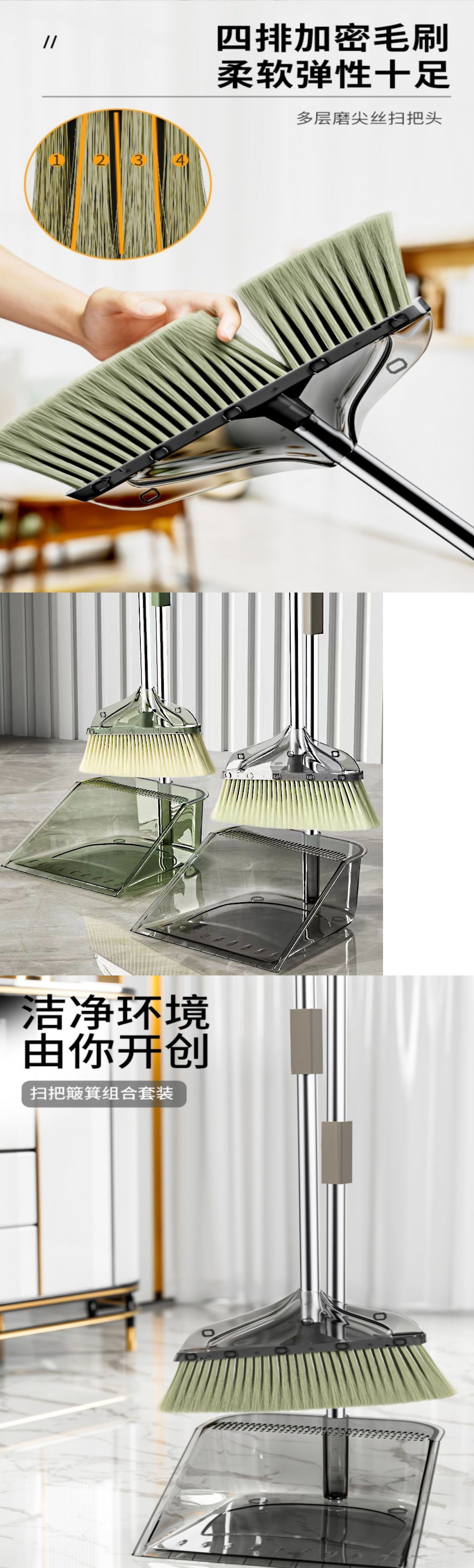 투명한 빗자루 더스트 팬 세트 투피스 소프트 헤어 브룸 스위핑 빗자루 가정용 더스트 팬 아티팩트 헤어 콤비네이션스토어 가기