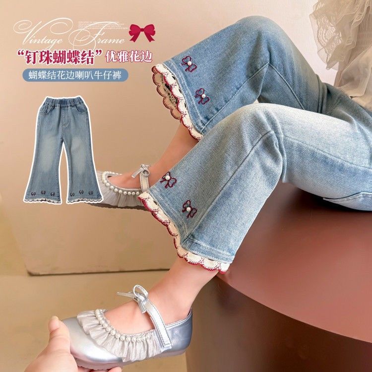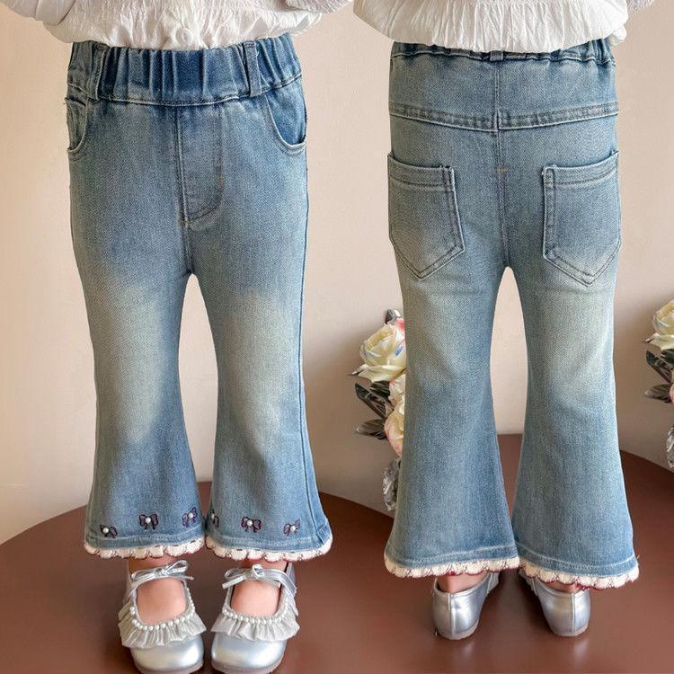 어린이 봄과 가을 새 꽃 바지 아기의 서양식 레이스 청바지 소녀의 봄 새로운 어린이 청바지
