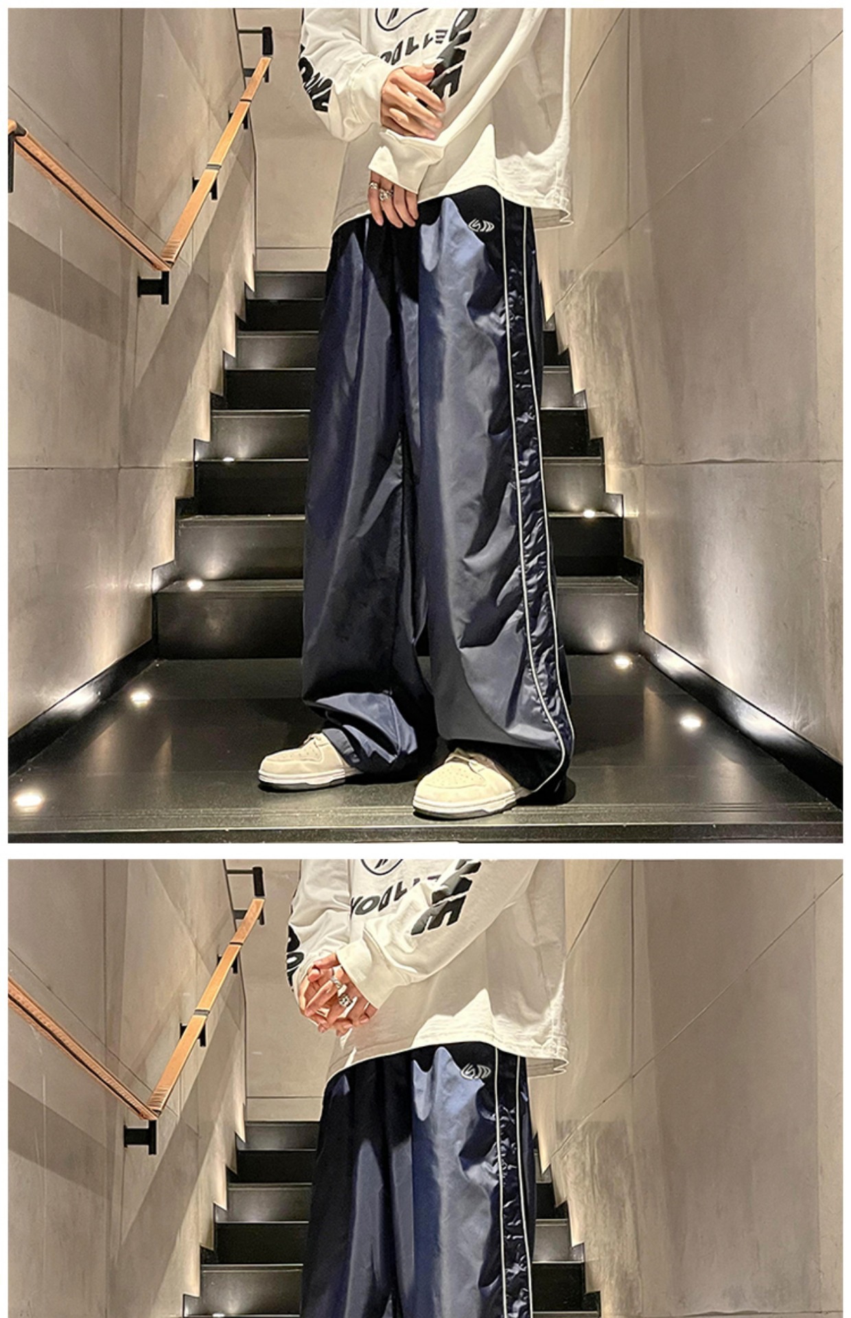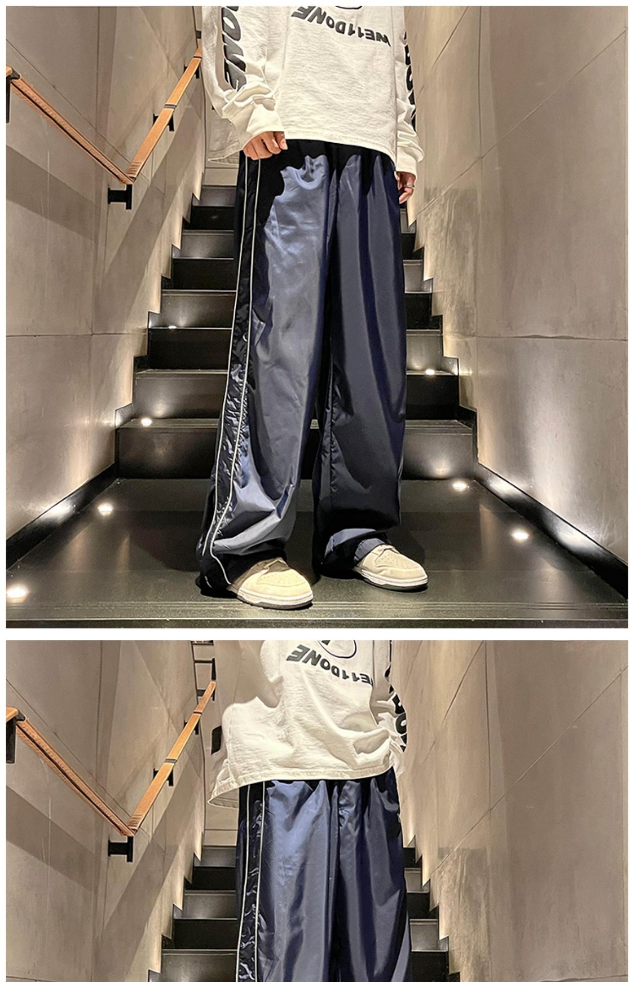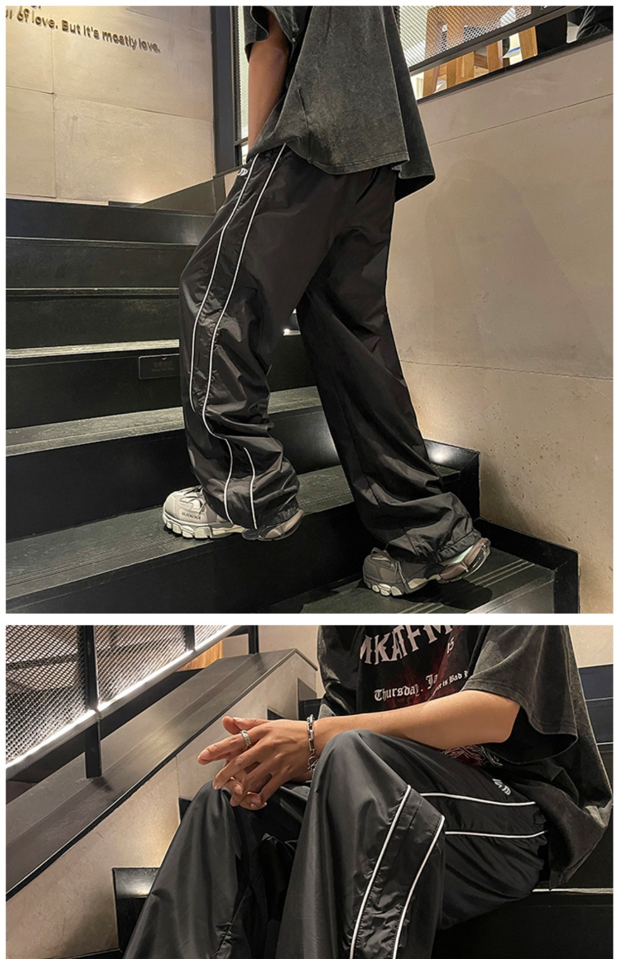 아메리칸 스타일 충전 바지 남성 기능성 트렌디 브랜드 Yipi Shuai 하이 스트리트 올 매치 루즈 바지 스트레이트 레그 와이드 레그 캐주얼 롱 팬츠스토어 가기
